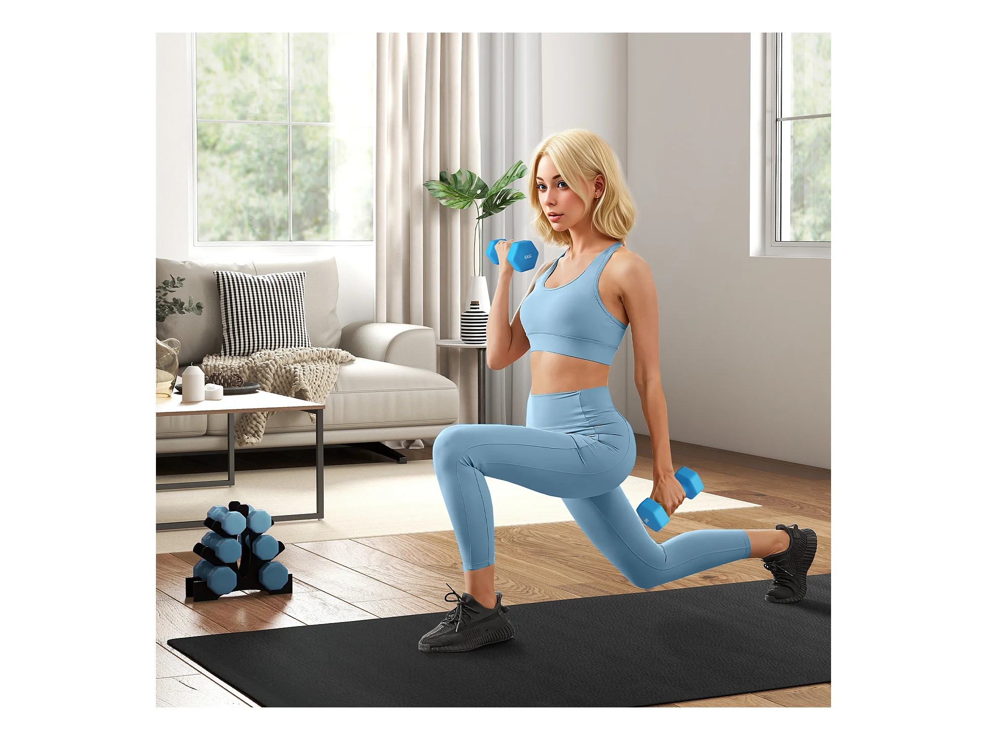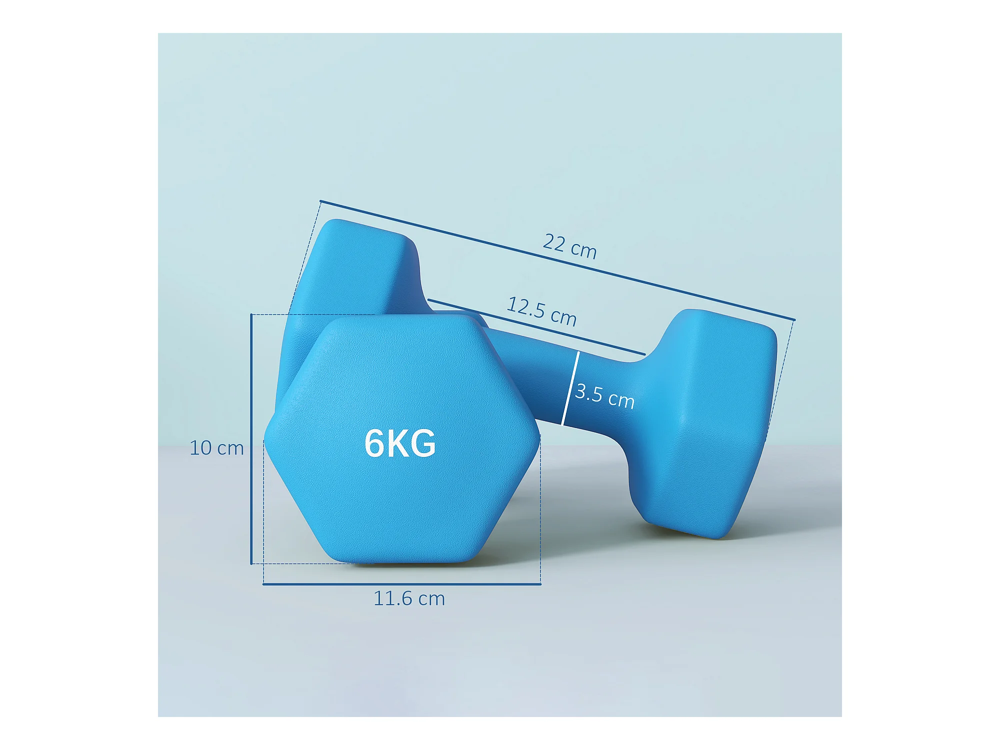 Set 2 manubri esagonali da 6kg in metallo e plastica 22x10x10cm azzurro
