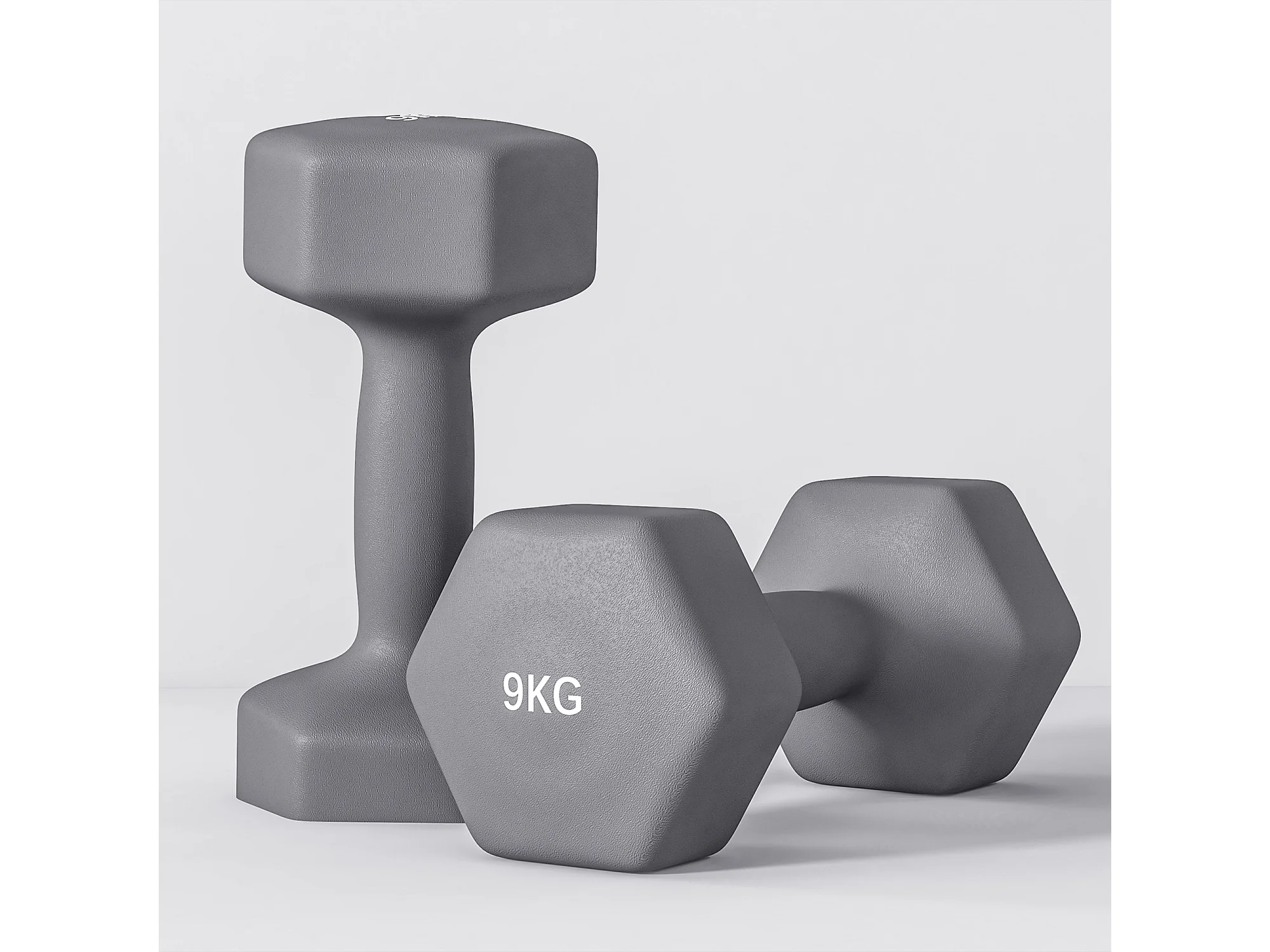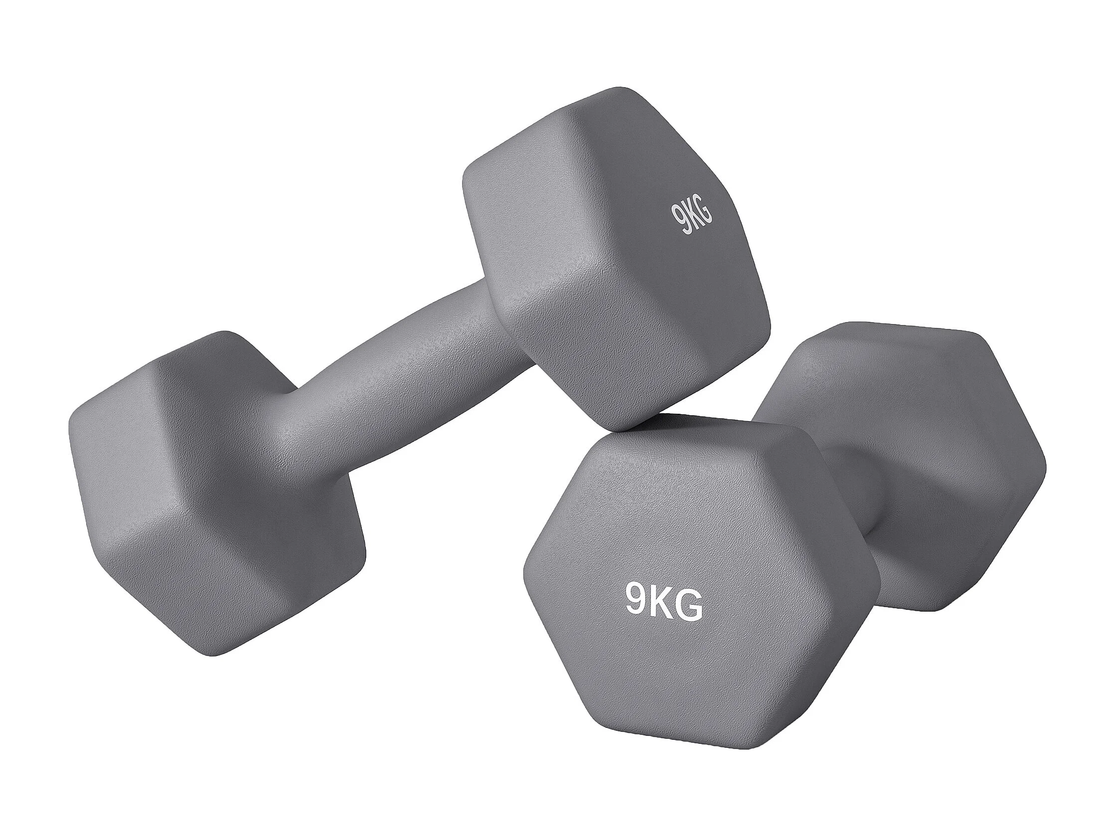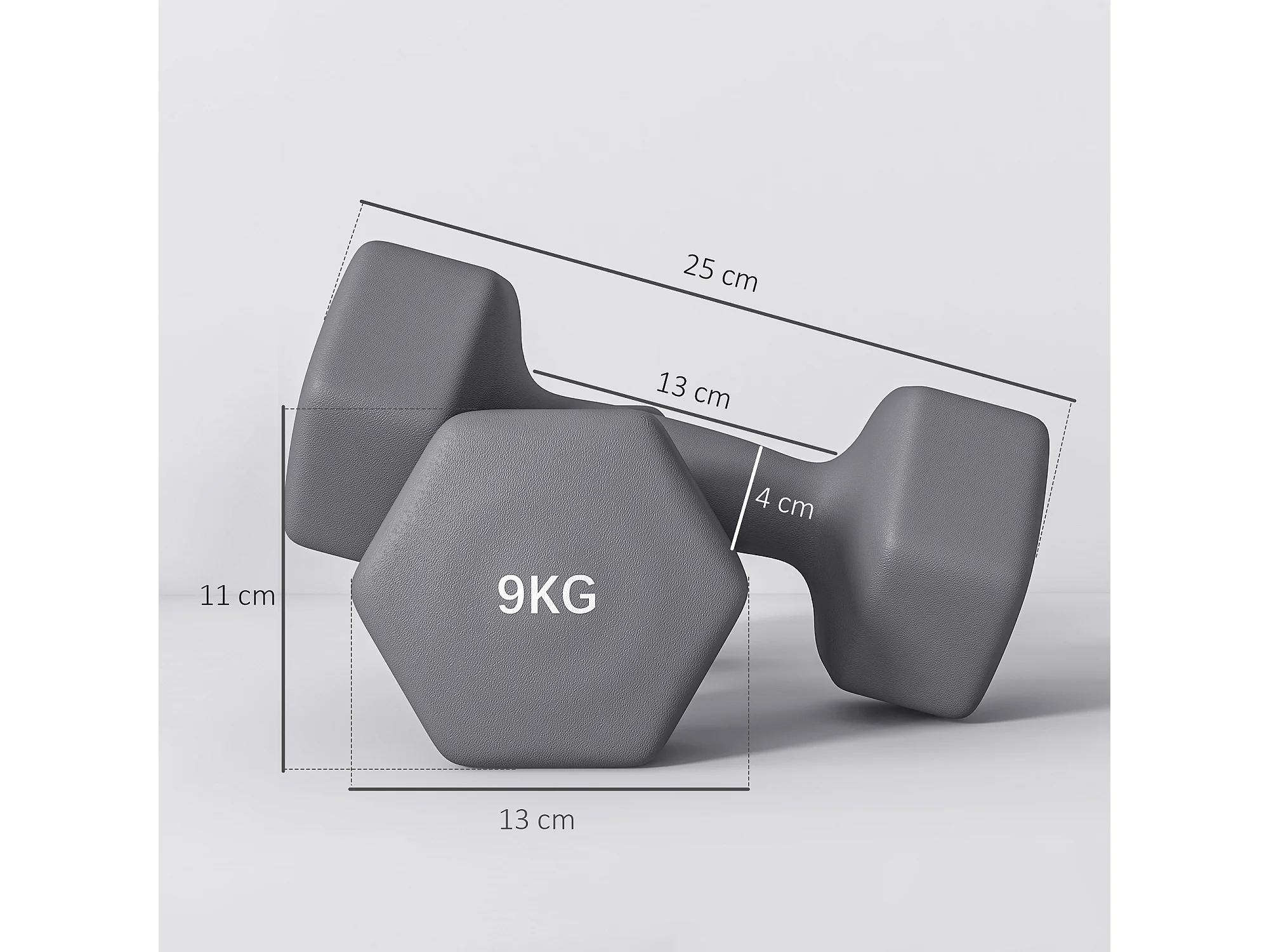 Set 2 manubri esagonali da 9 kg in metallo plastica 25x11x11cm grigio