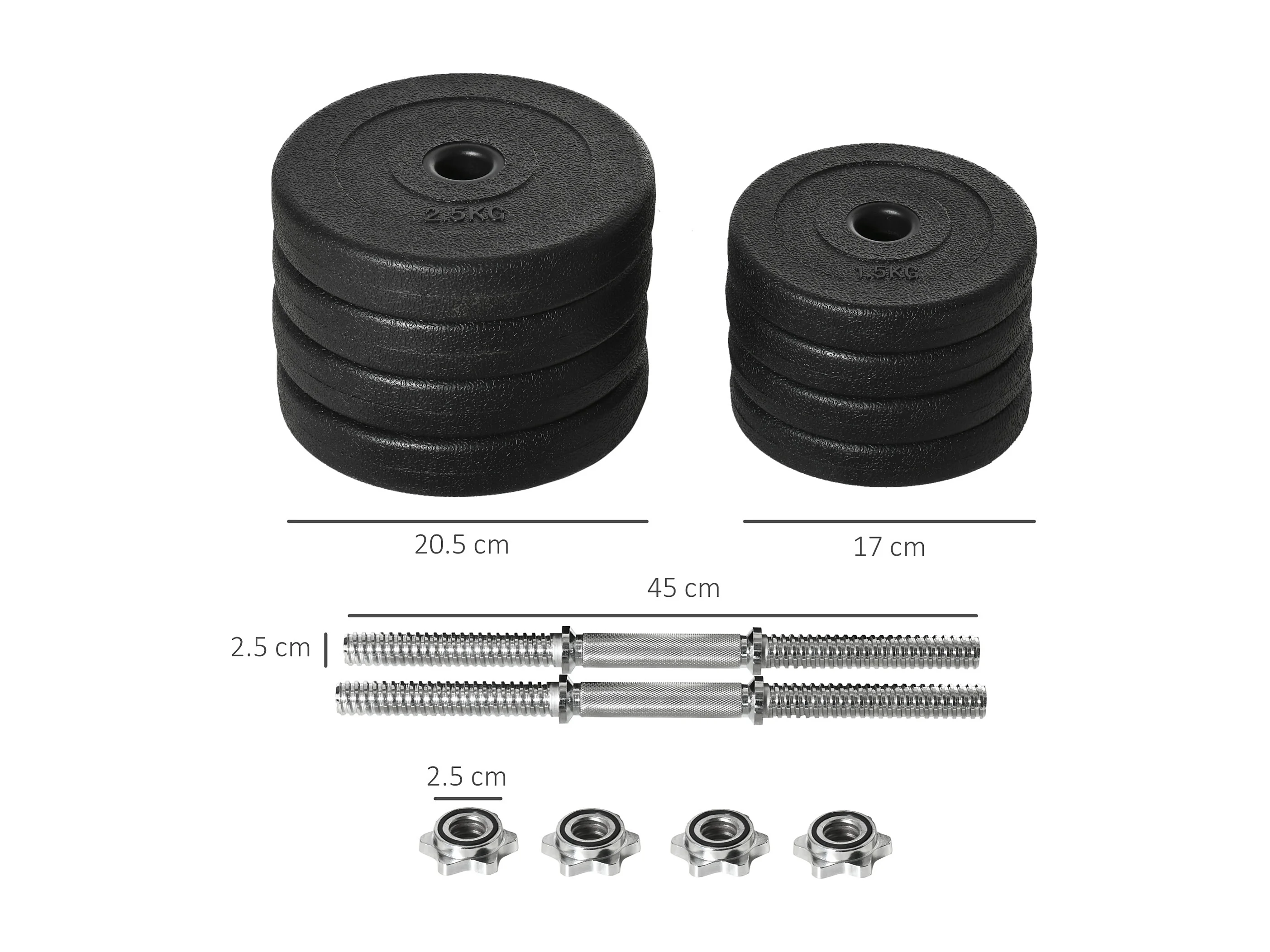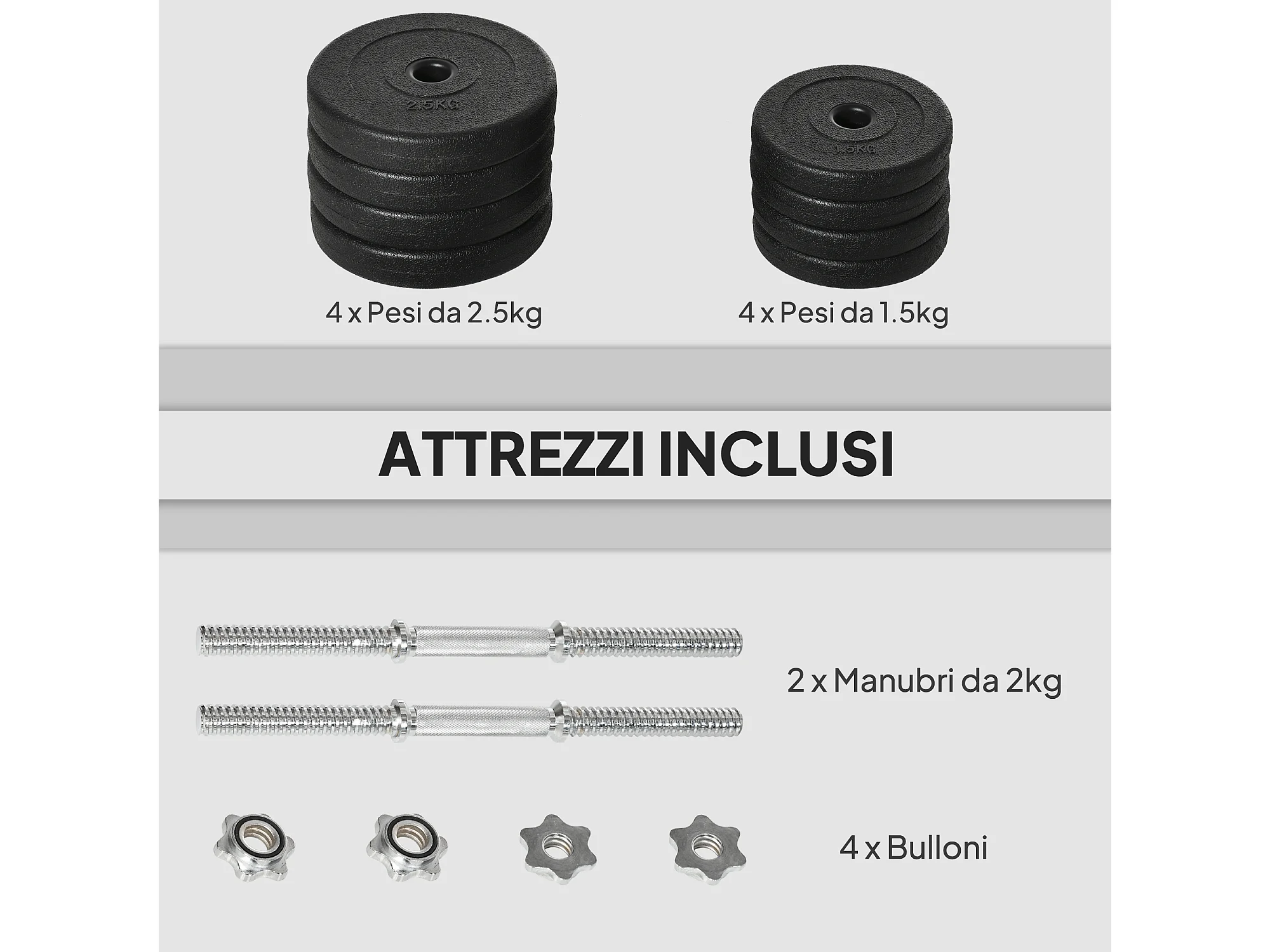 Set 2 manubri pesi da 20kg totali con 8 dischi in acciaio e pp nero
