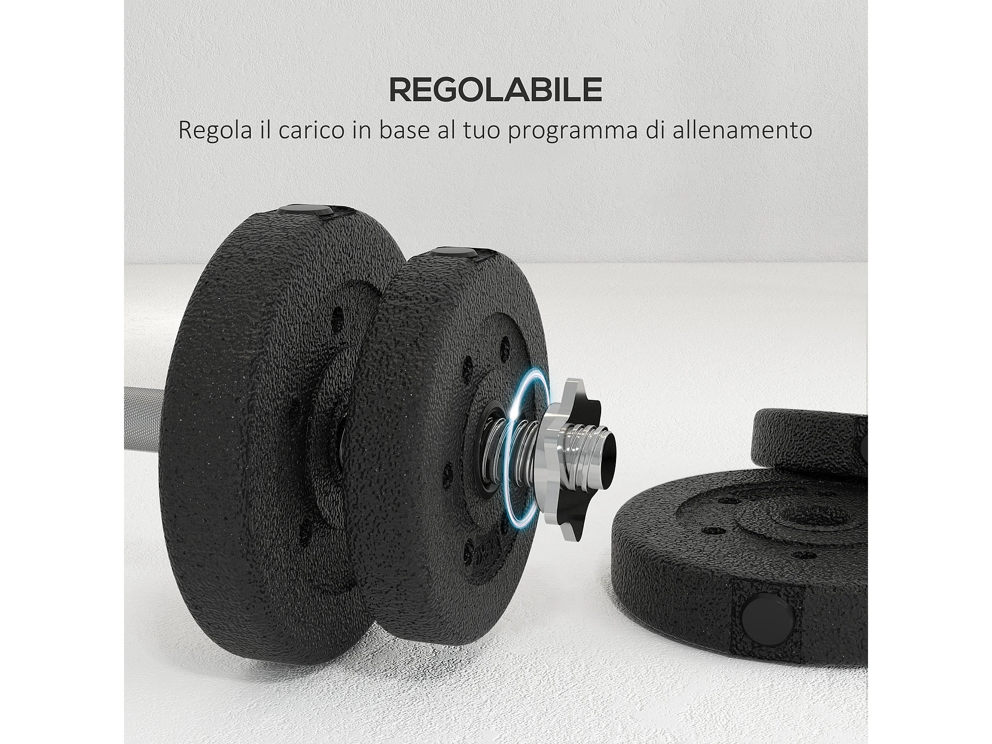 Set 2 manubri convertibili in bilanciere, 25kg totali con 12 dischi pesi