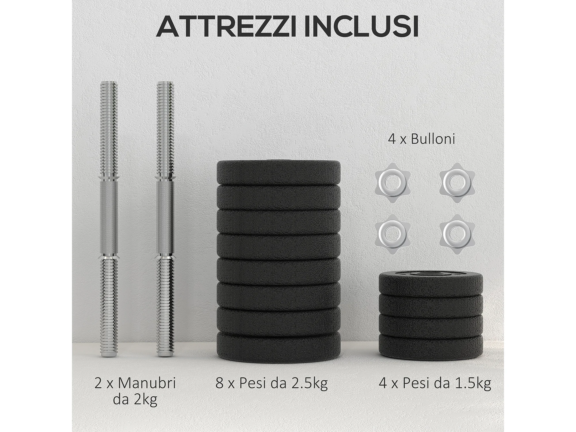Set 2 manubri pesi da 30kg totali con 12 dischi in acciaio e pu nero