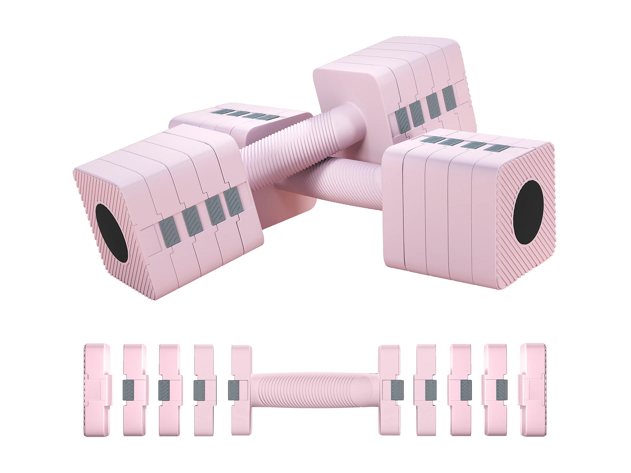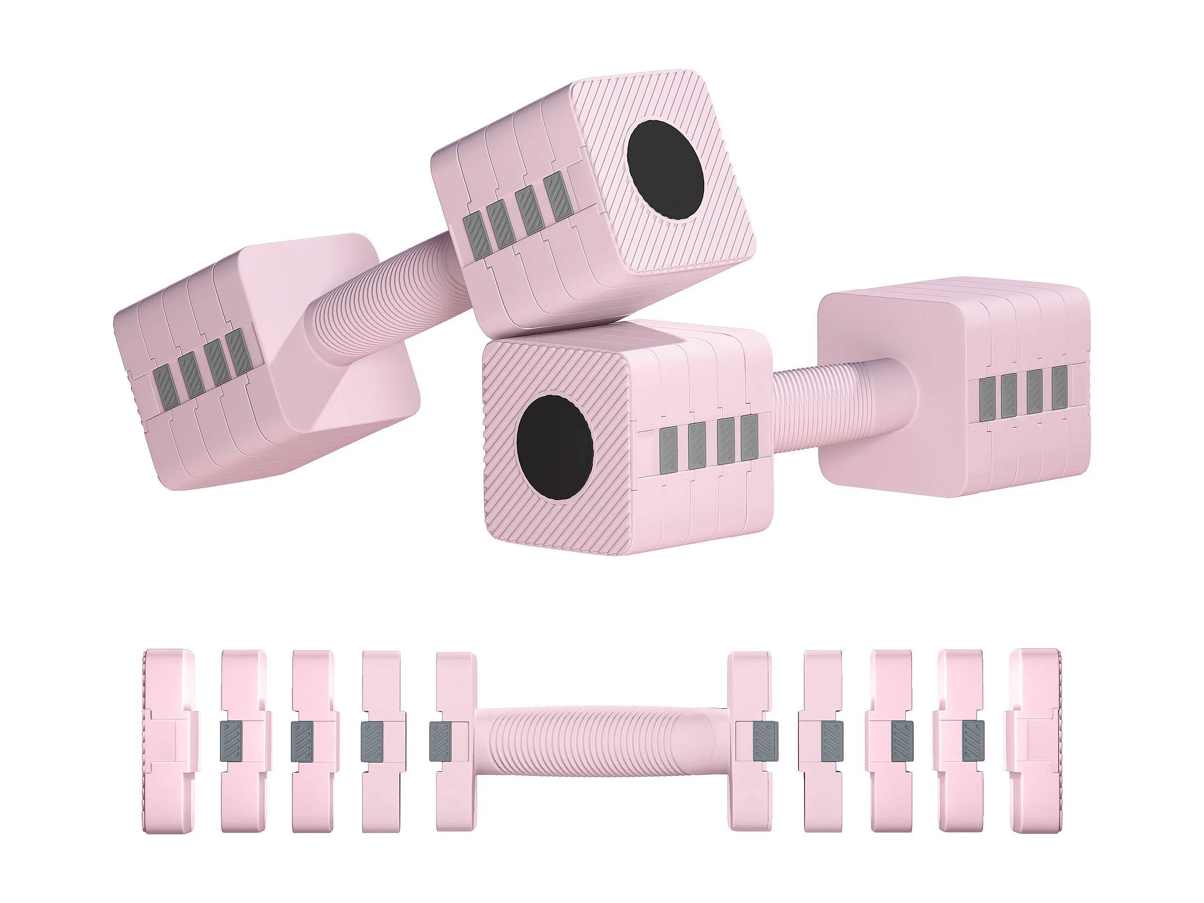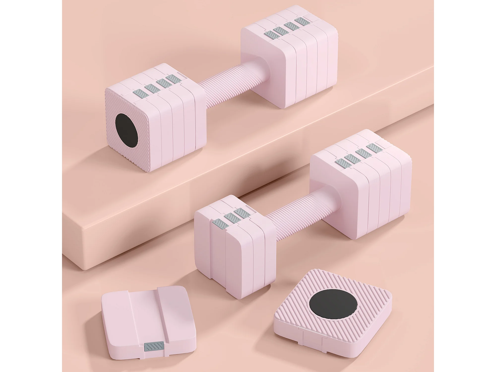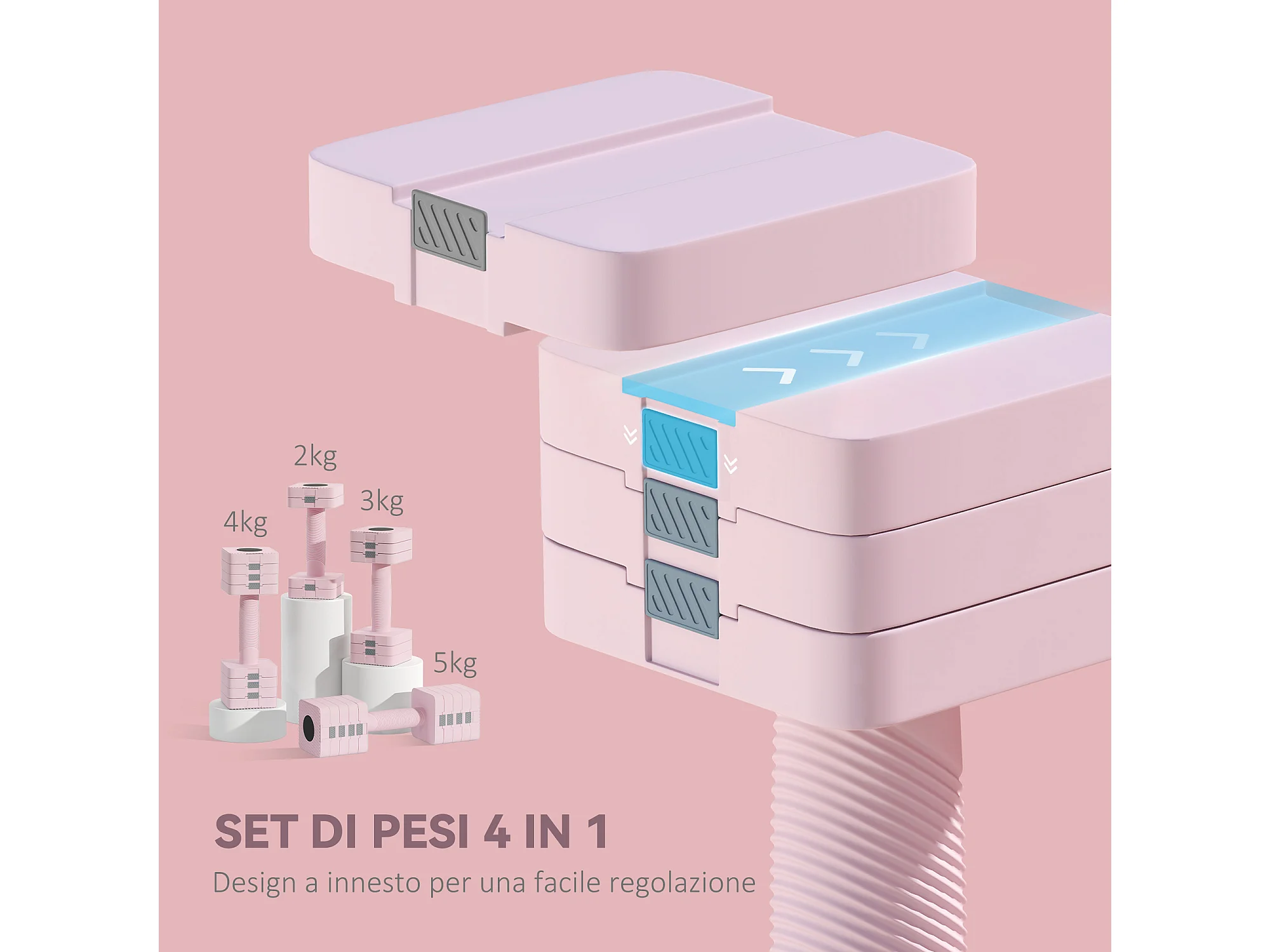 Manubri regolabili 4-in-1 - MERACH, set da 2 pesi 1-4 kg, a casa o palestra, per uomini e donne, rosa