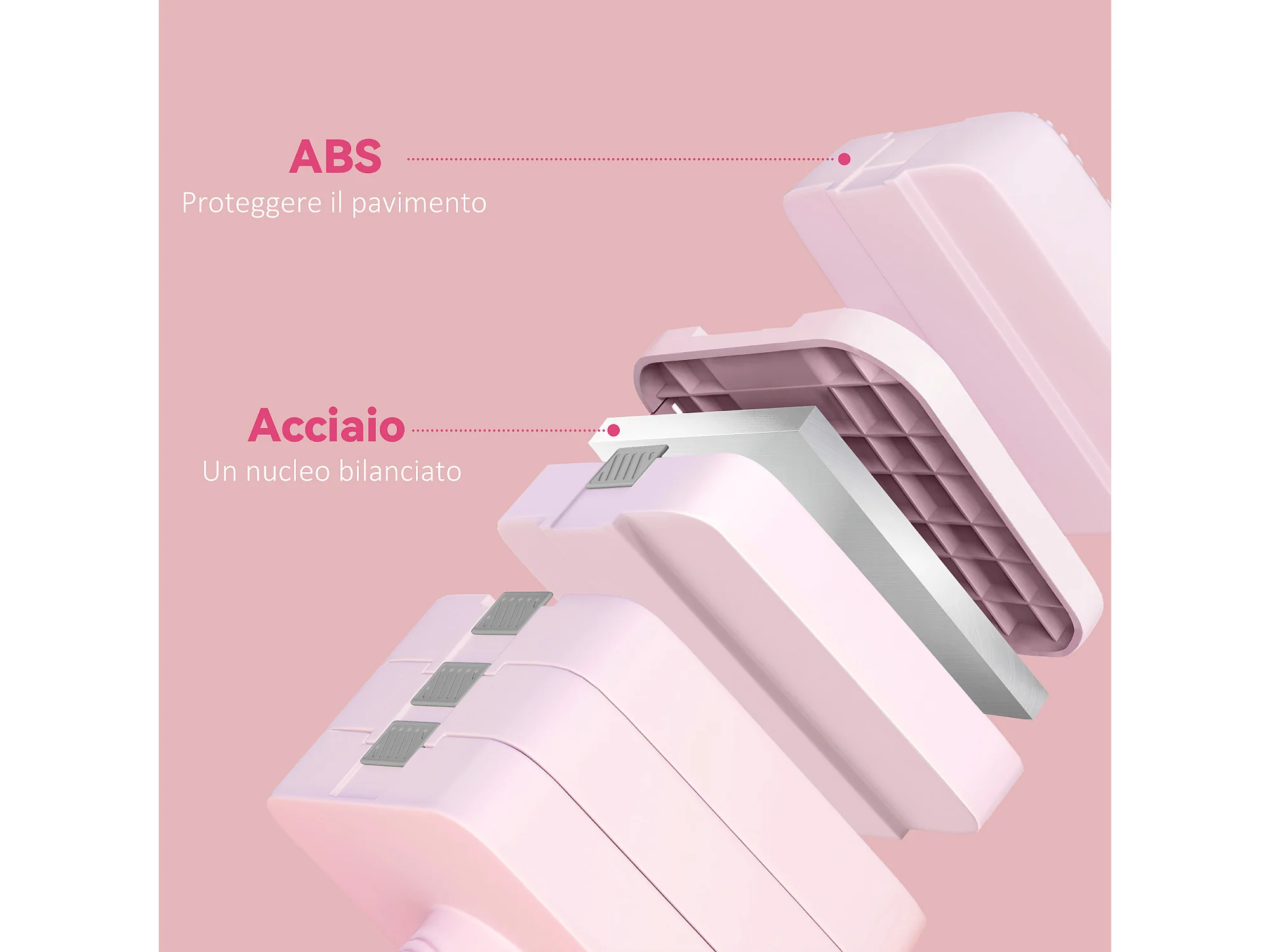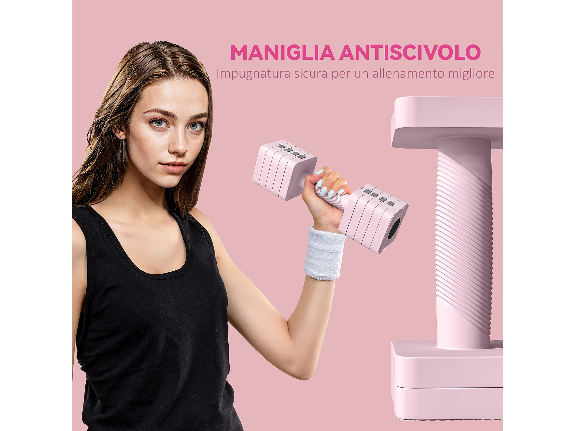 Set 2 manubri pesi quadrati da 5 kg con impugnatura antiscivolo rosa
