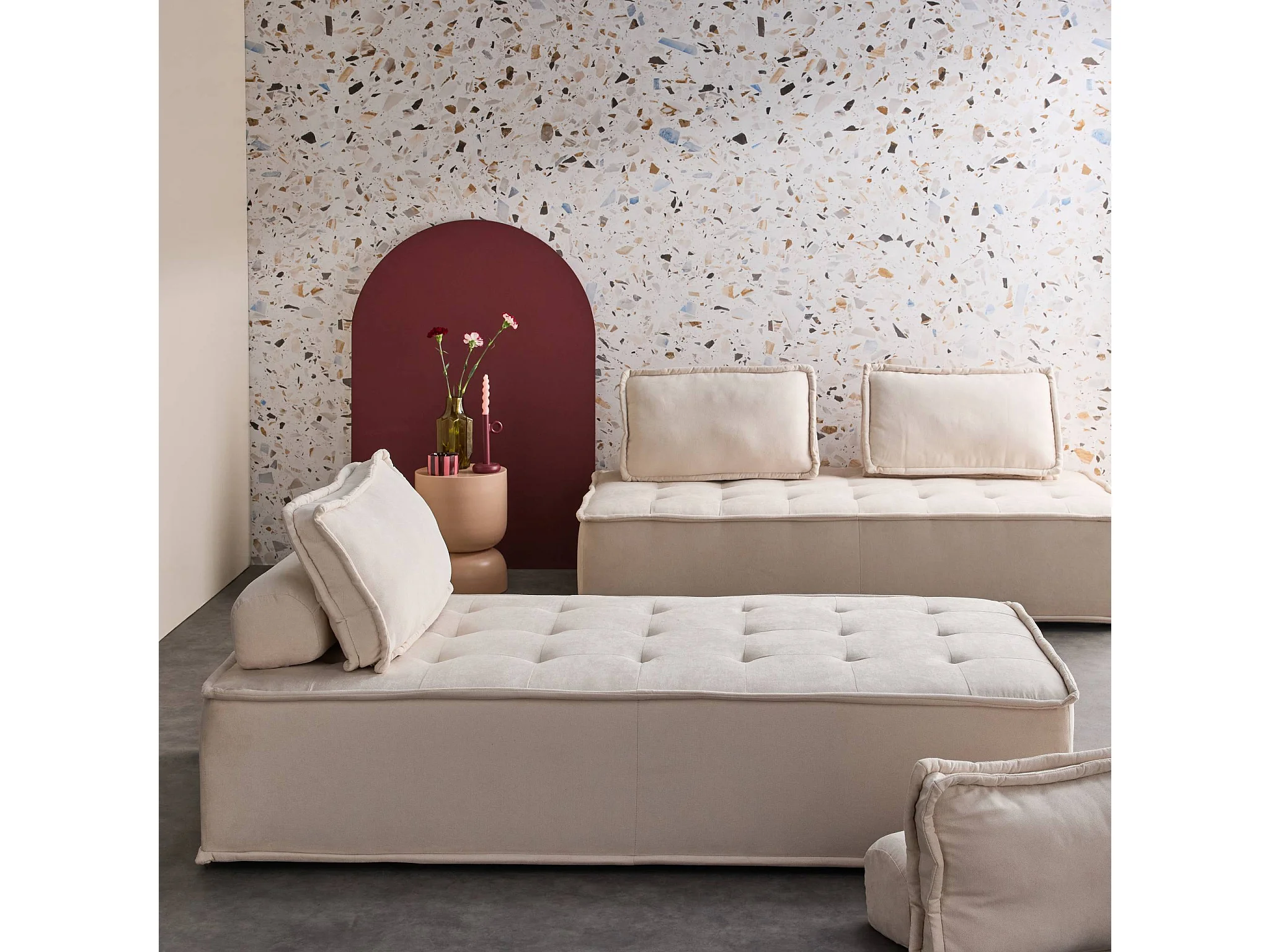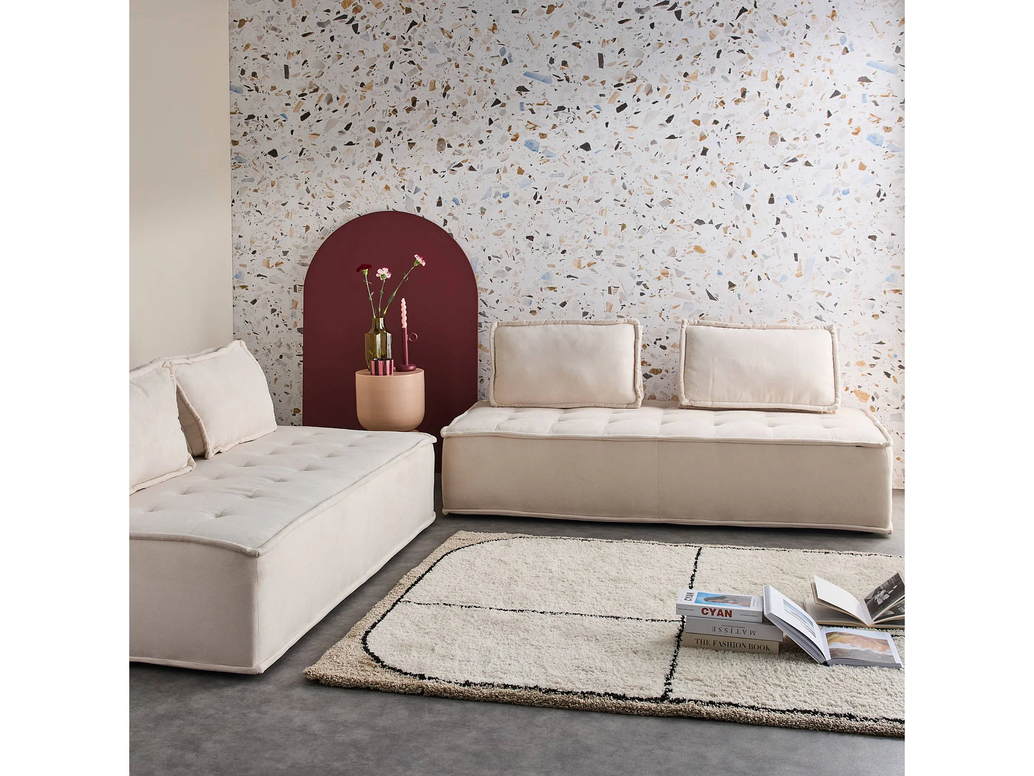 Set 2 moduli per divano modulare in tessuto imbottito, 2 posti, crema