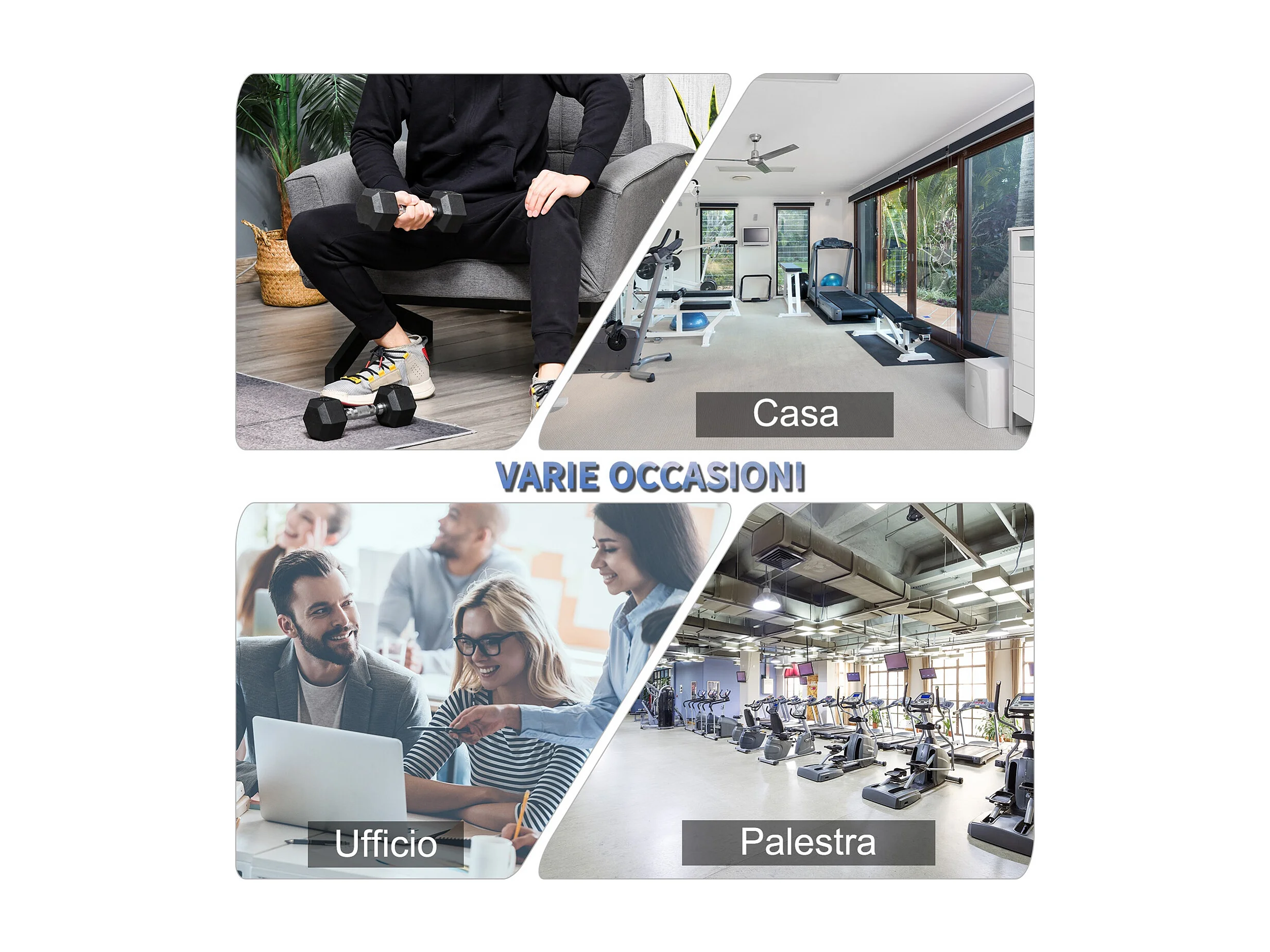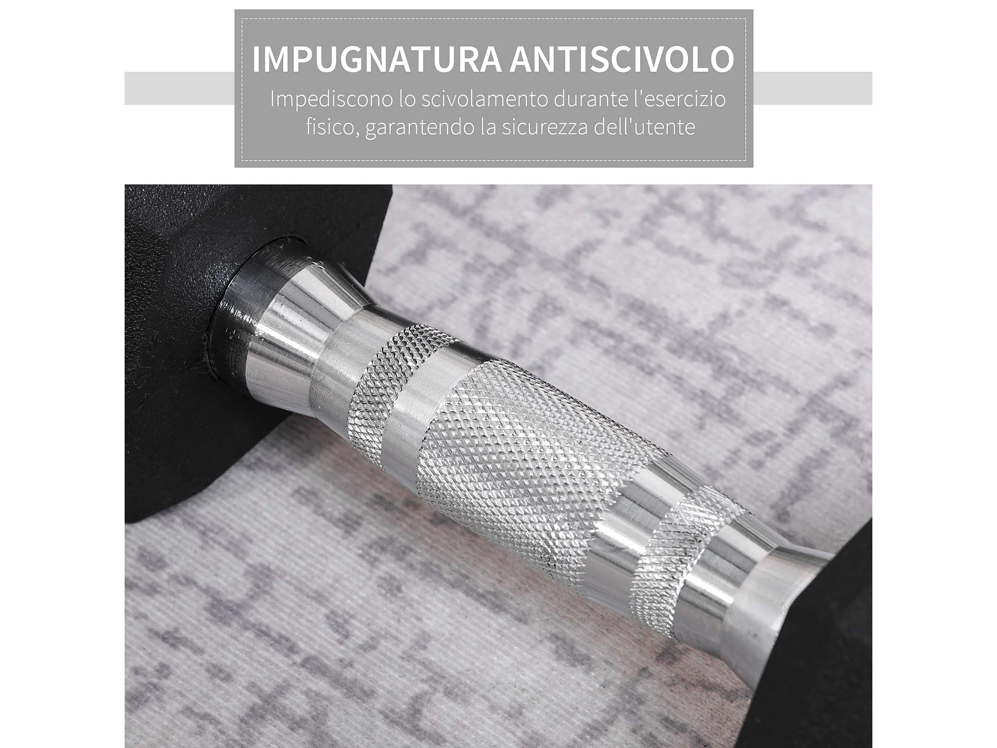 Set 2 manubri esagonali da 5 kg in gomma con impugnatura antiscivolo nero
