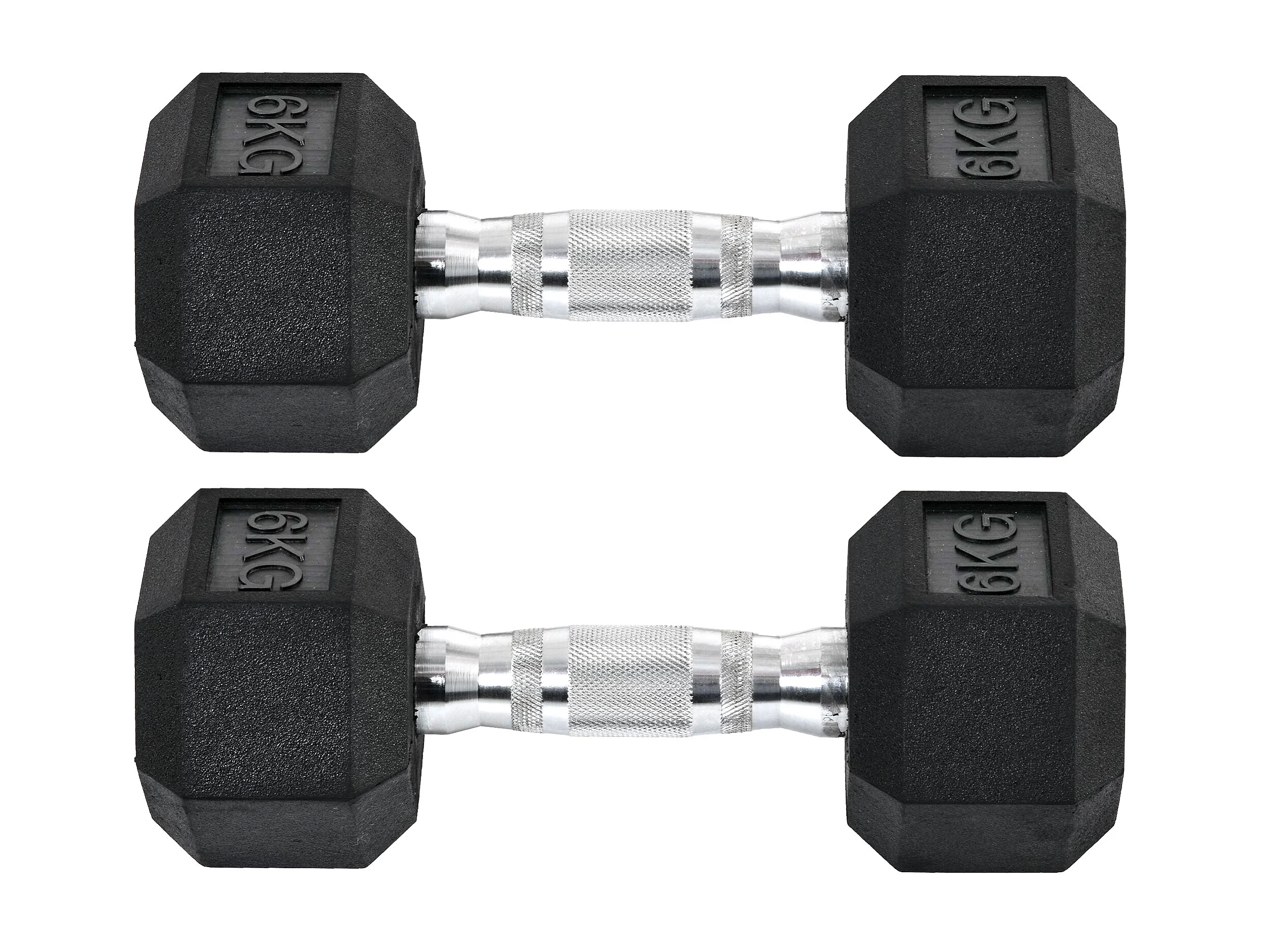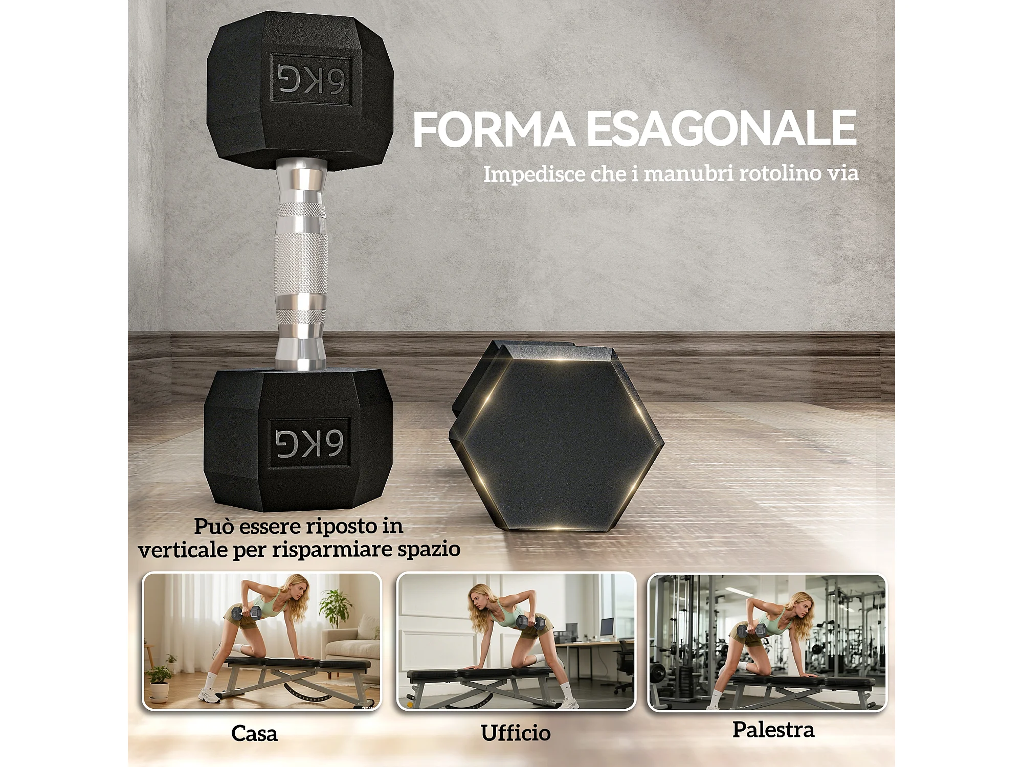 Set 2 pesi da 6kg esagonali con presa antiscivolo nero