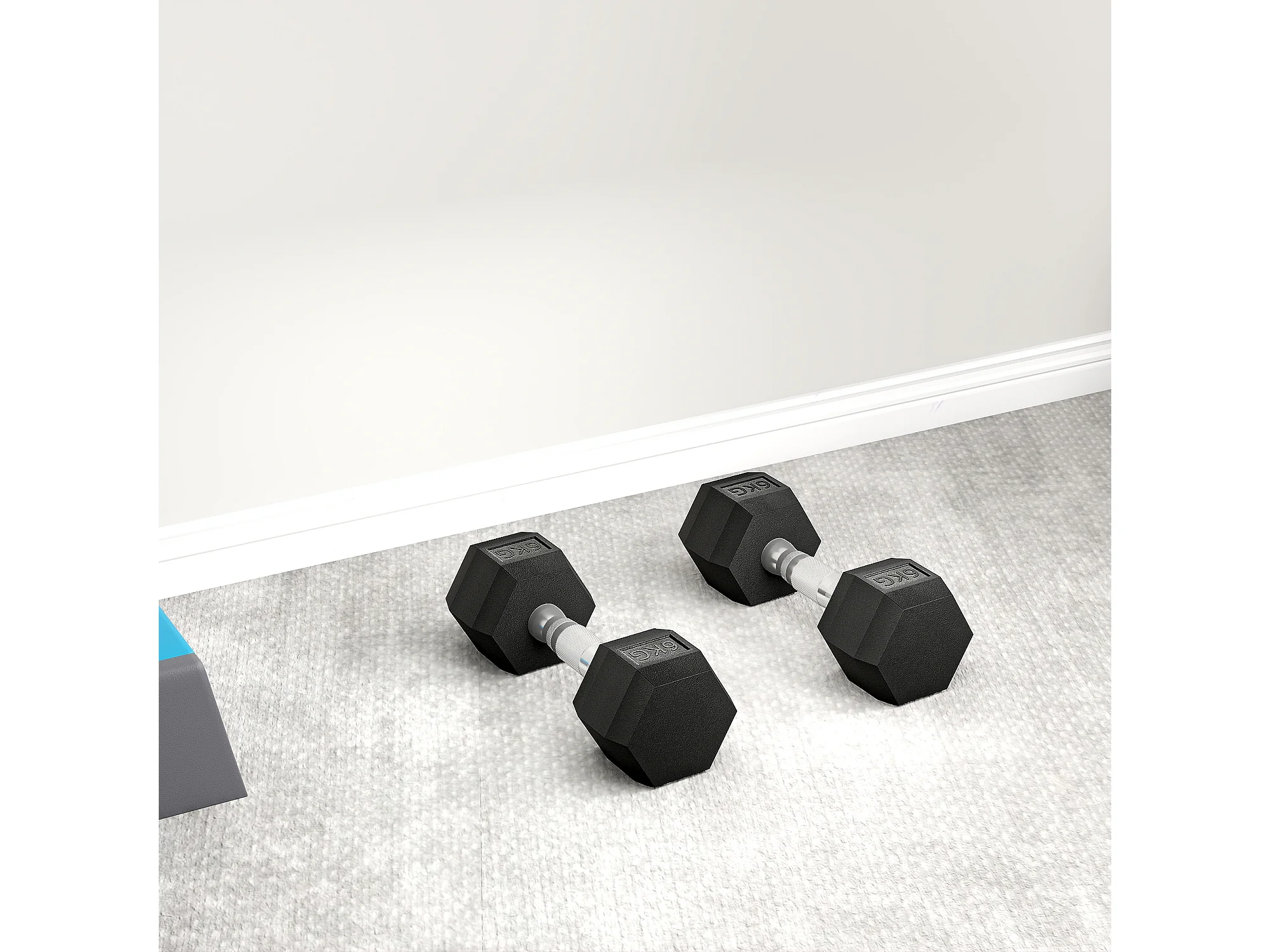 Set 2 manubri esagonali da 5 kg in gomma con impugnatura antiscivolo nero