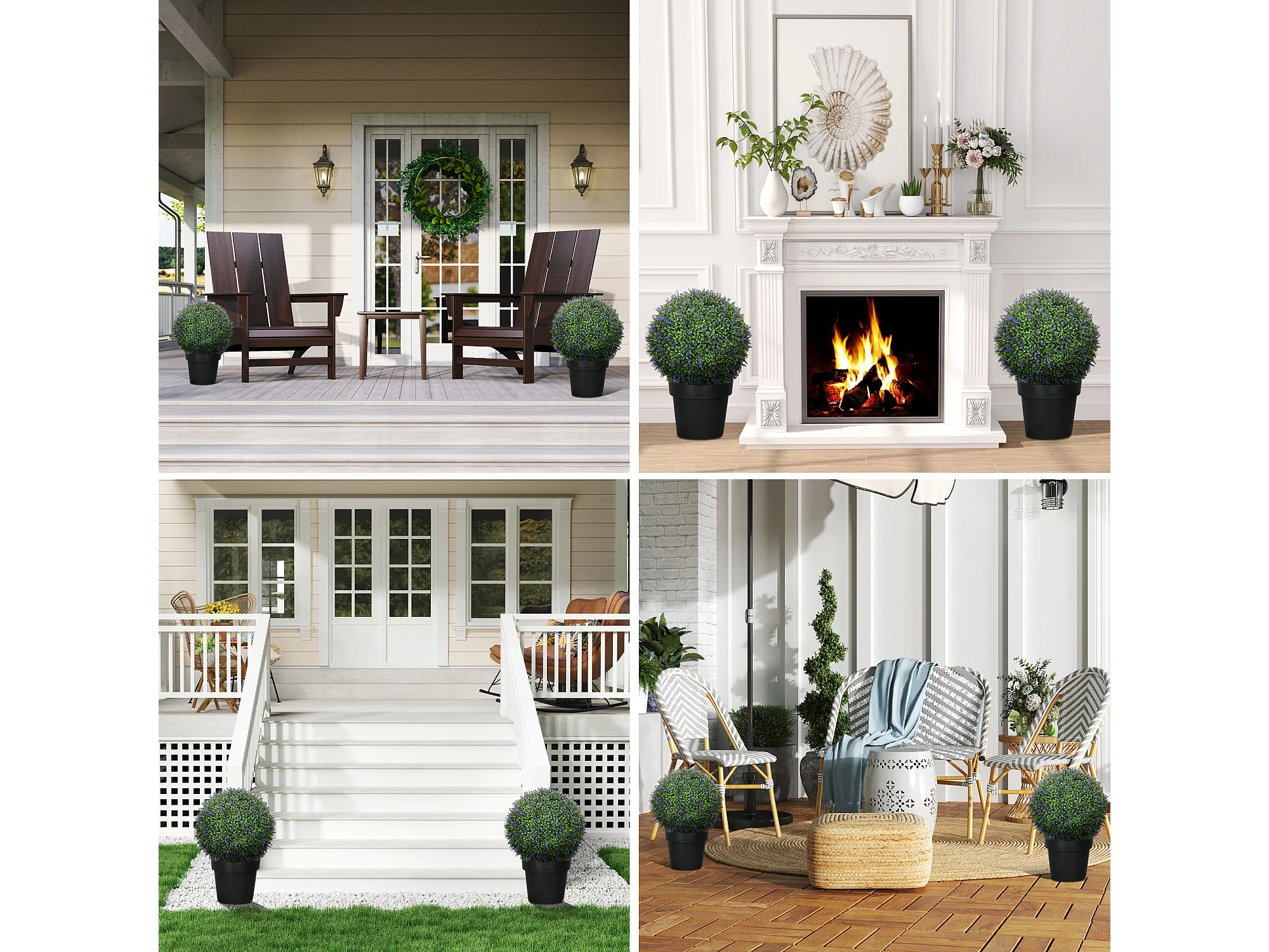 Set 2 piante artificiali a sfera con fiori di lavanda Ø42cm