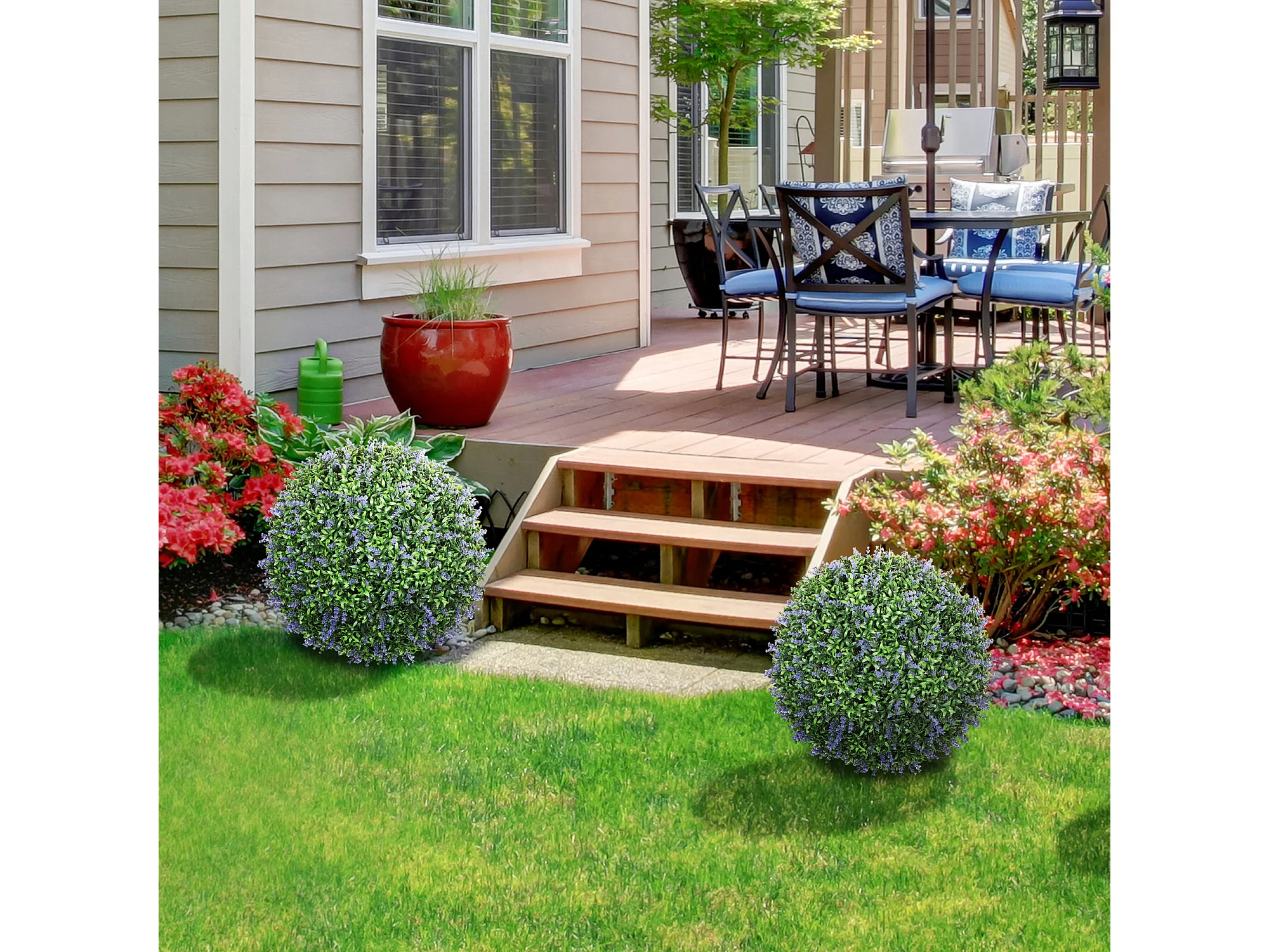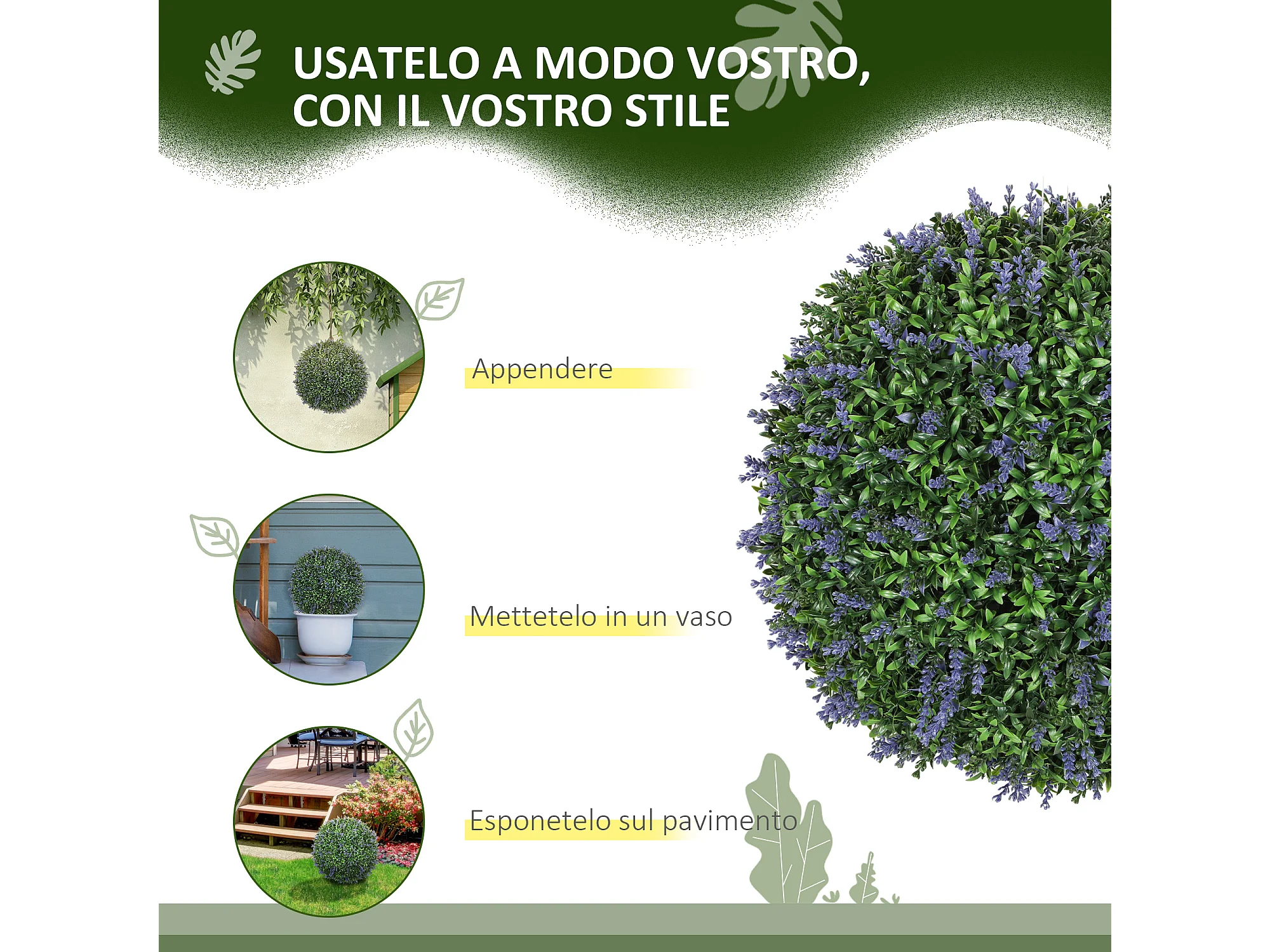 Set 2 piante finte sfere di bosso artificiale Ø50cm verde