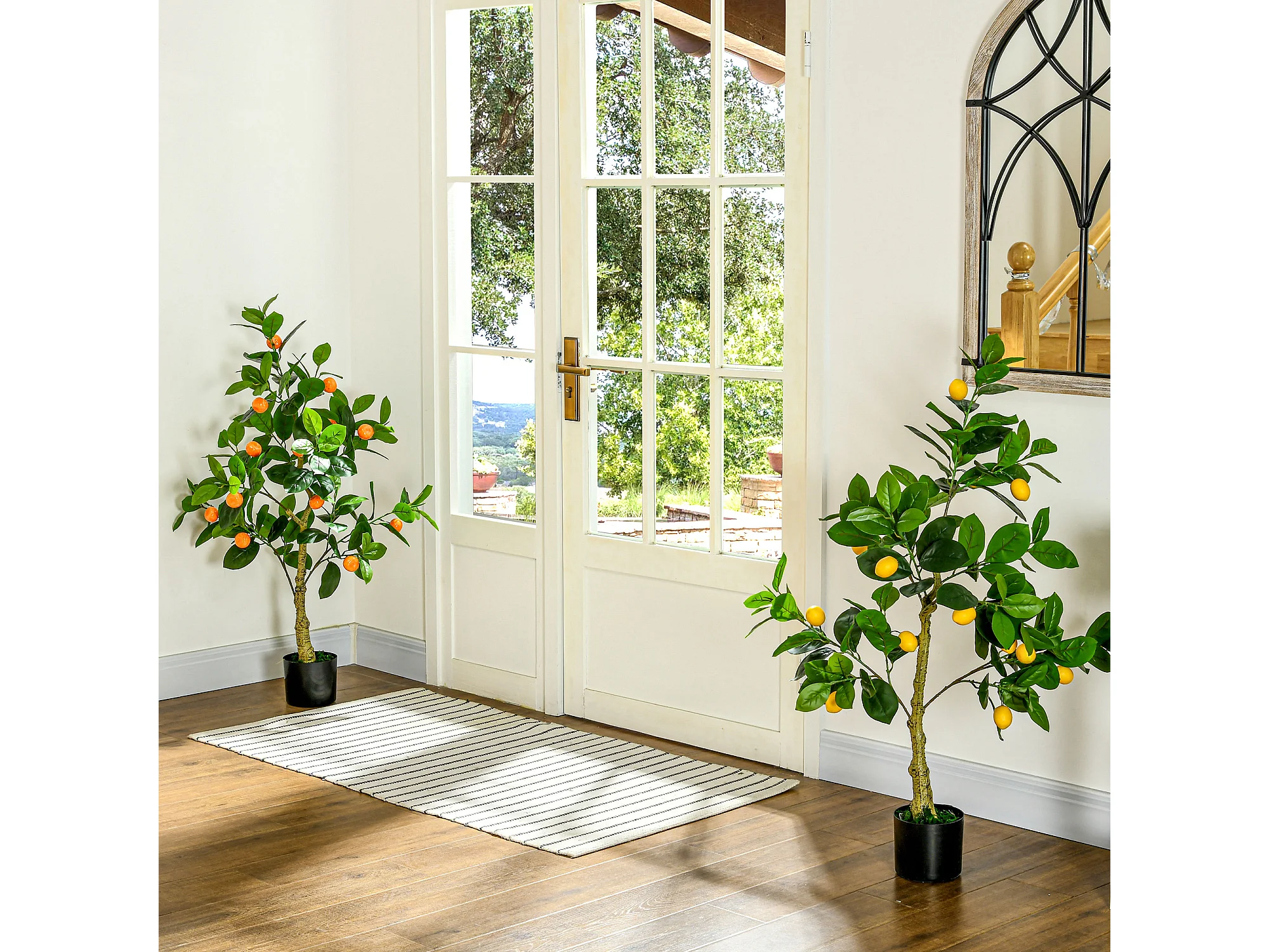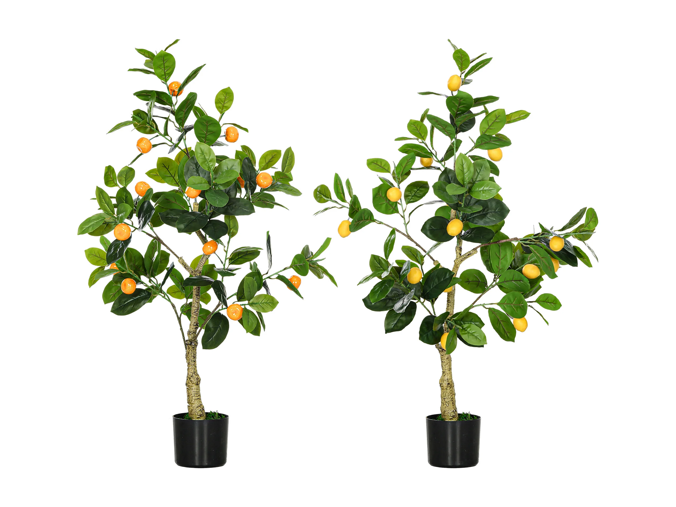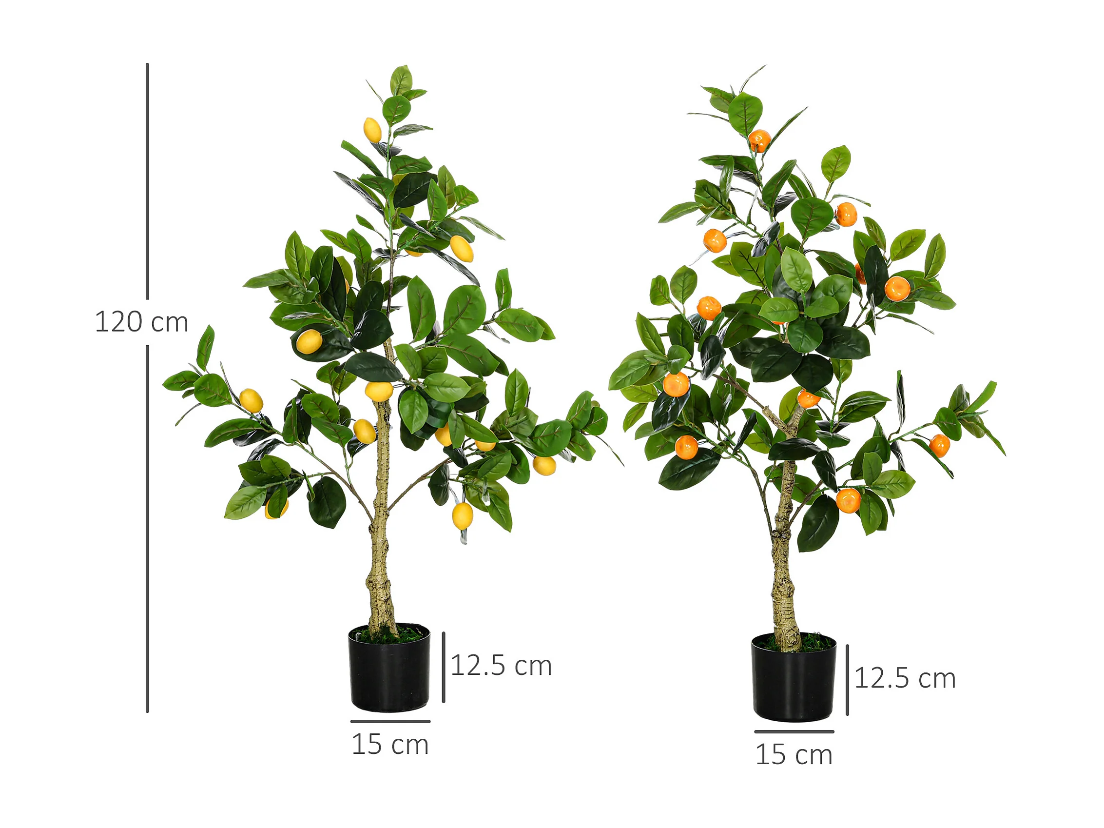 Set 2 piante artificiali arancia e limone con vaso per casa e giardino