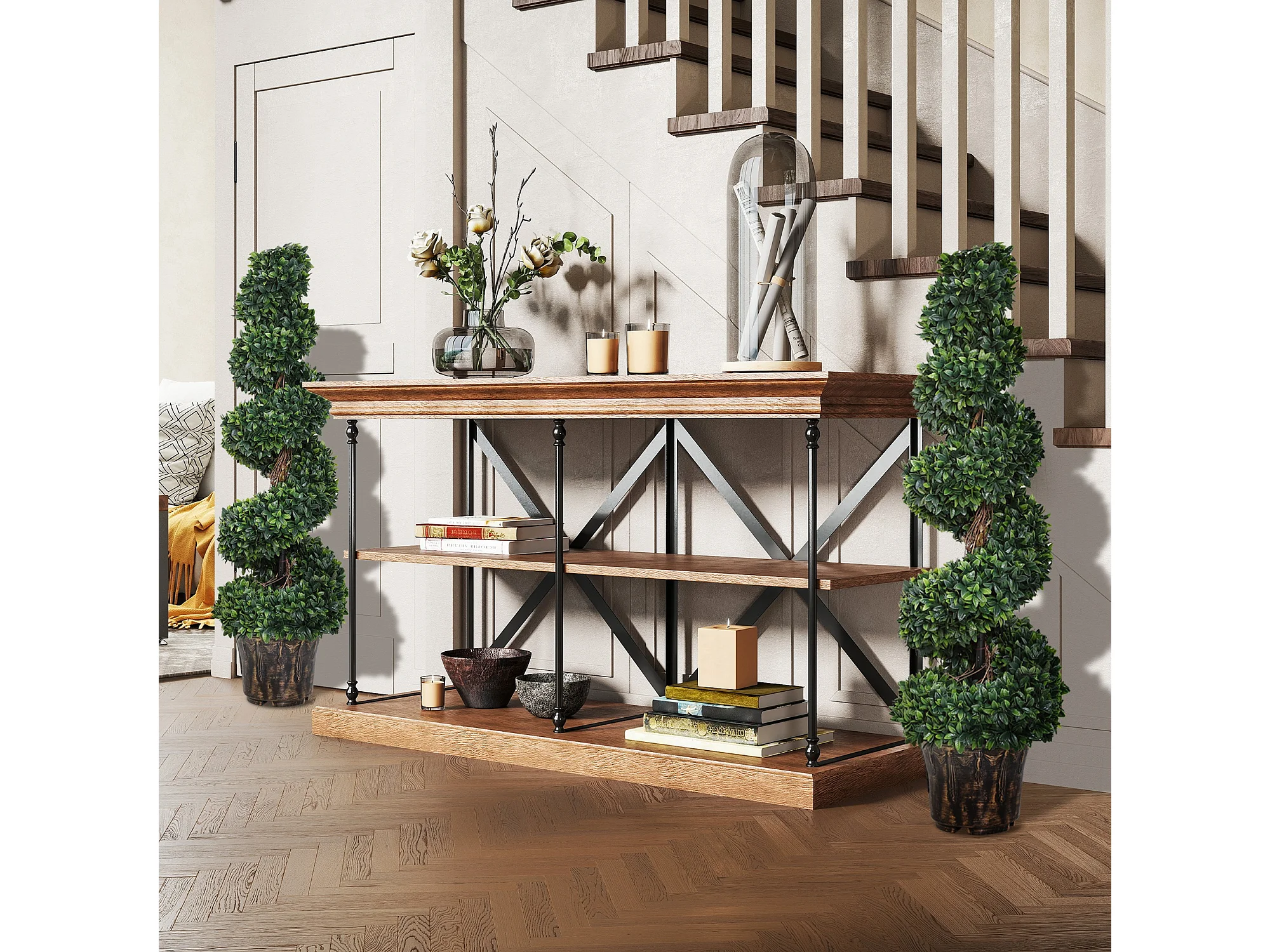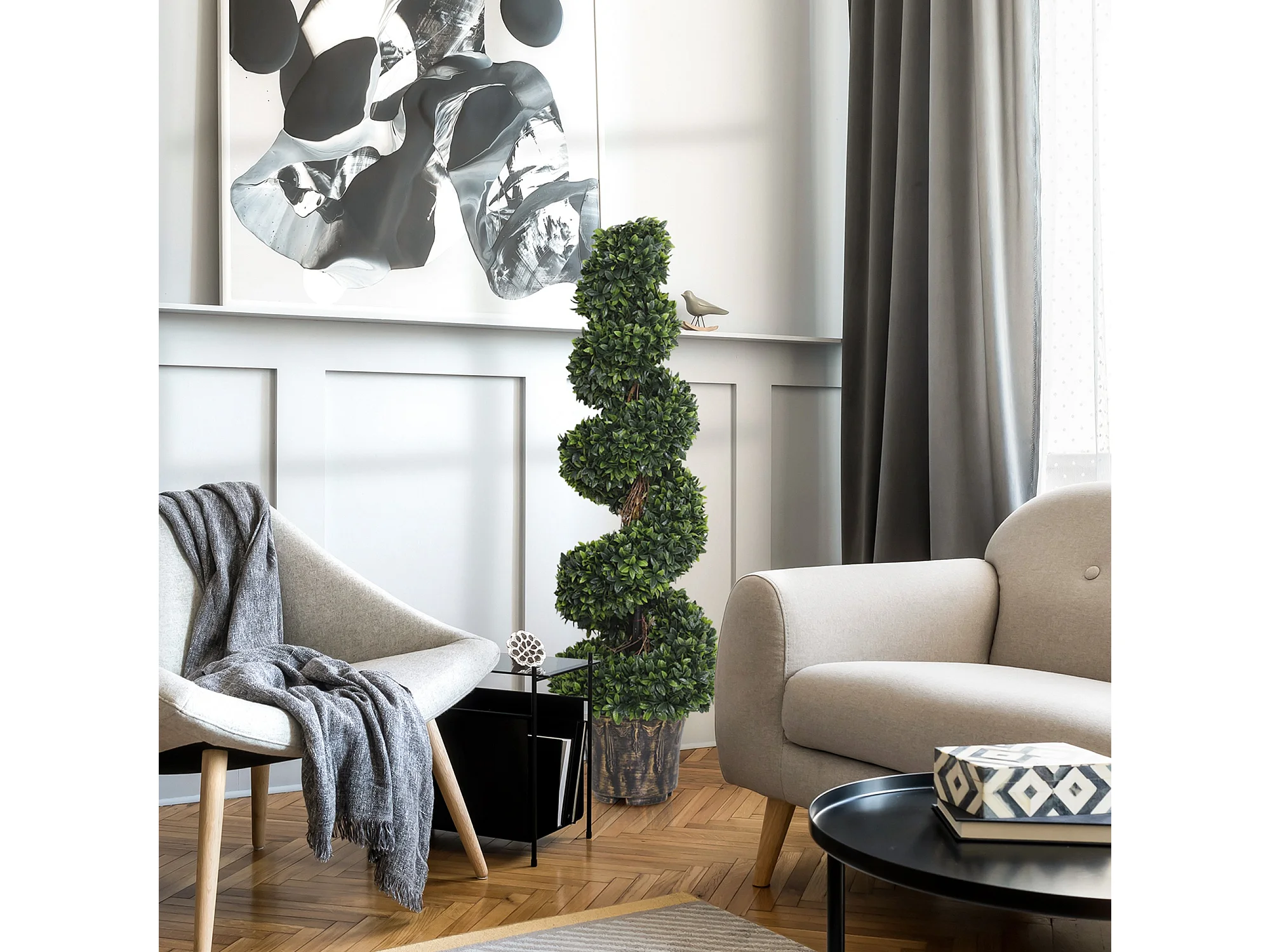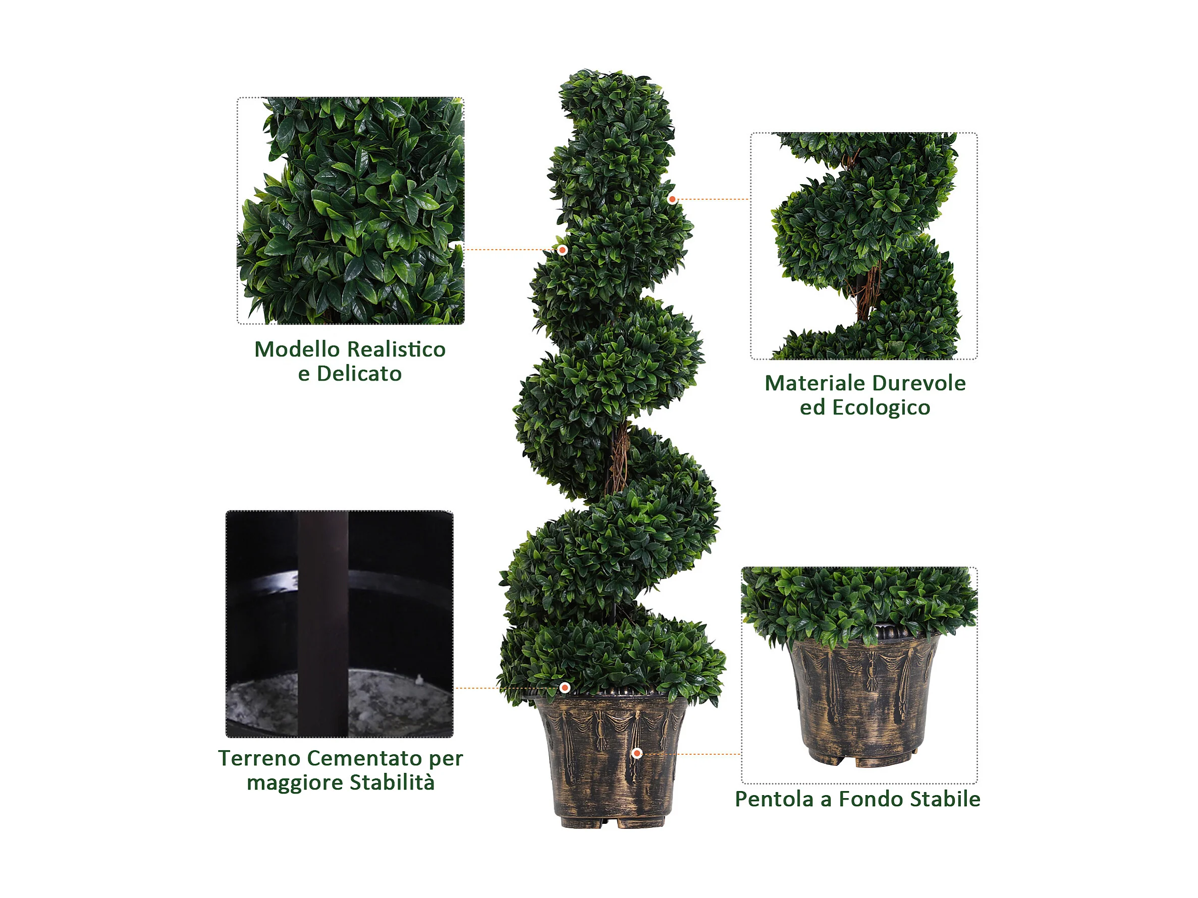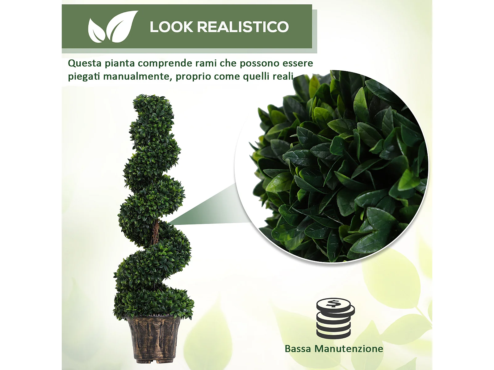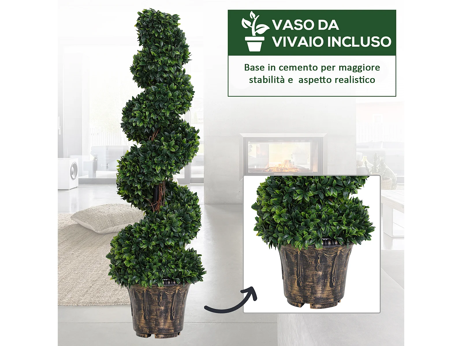 Set 2 piante finte di bosso a spirale da interni ed esterni con vaso