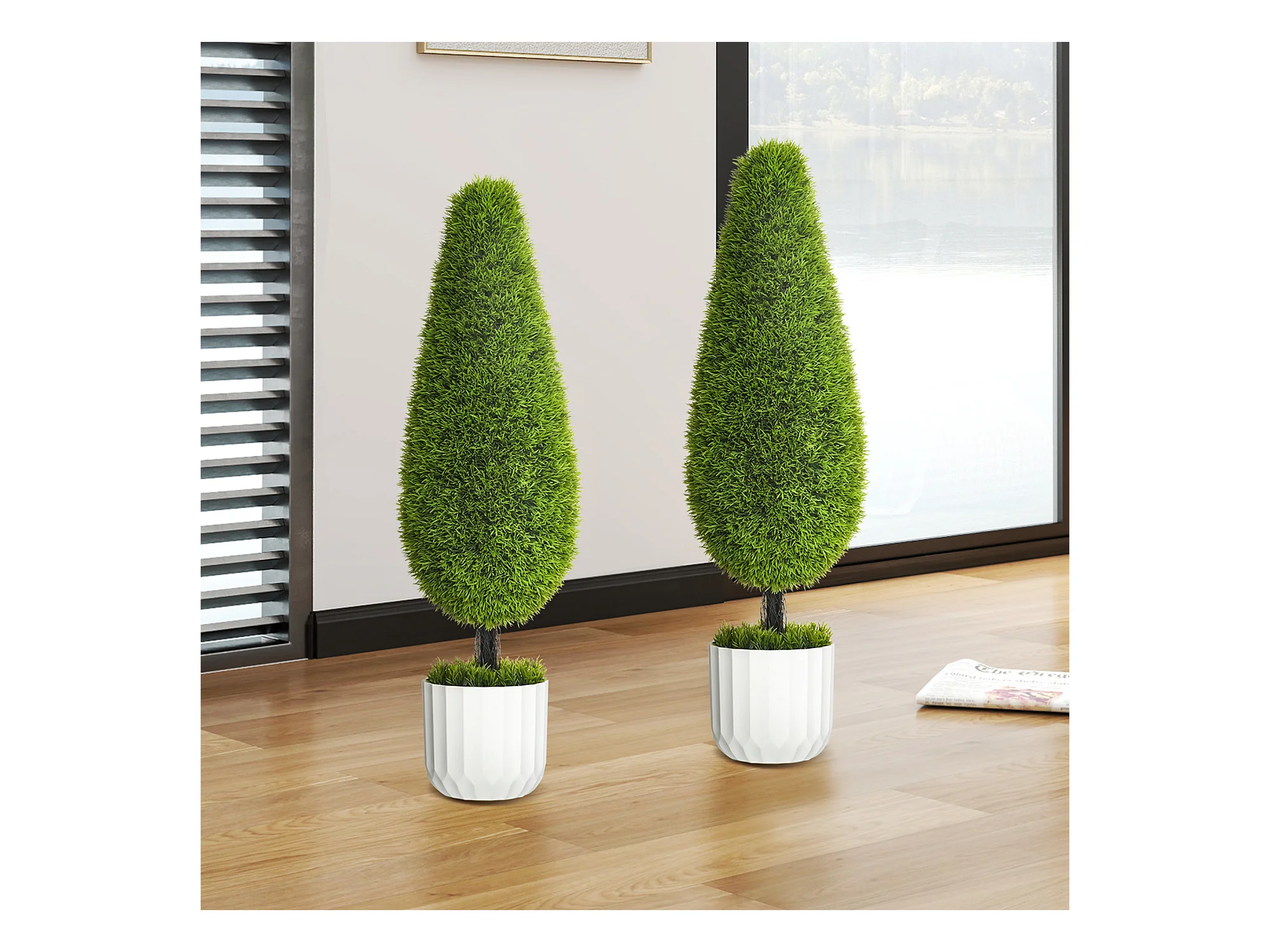 Set 2 piante finte di cipresso con vasi muschio e cemento