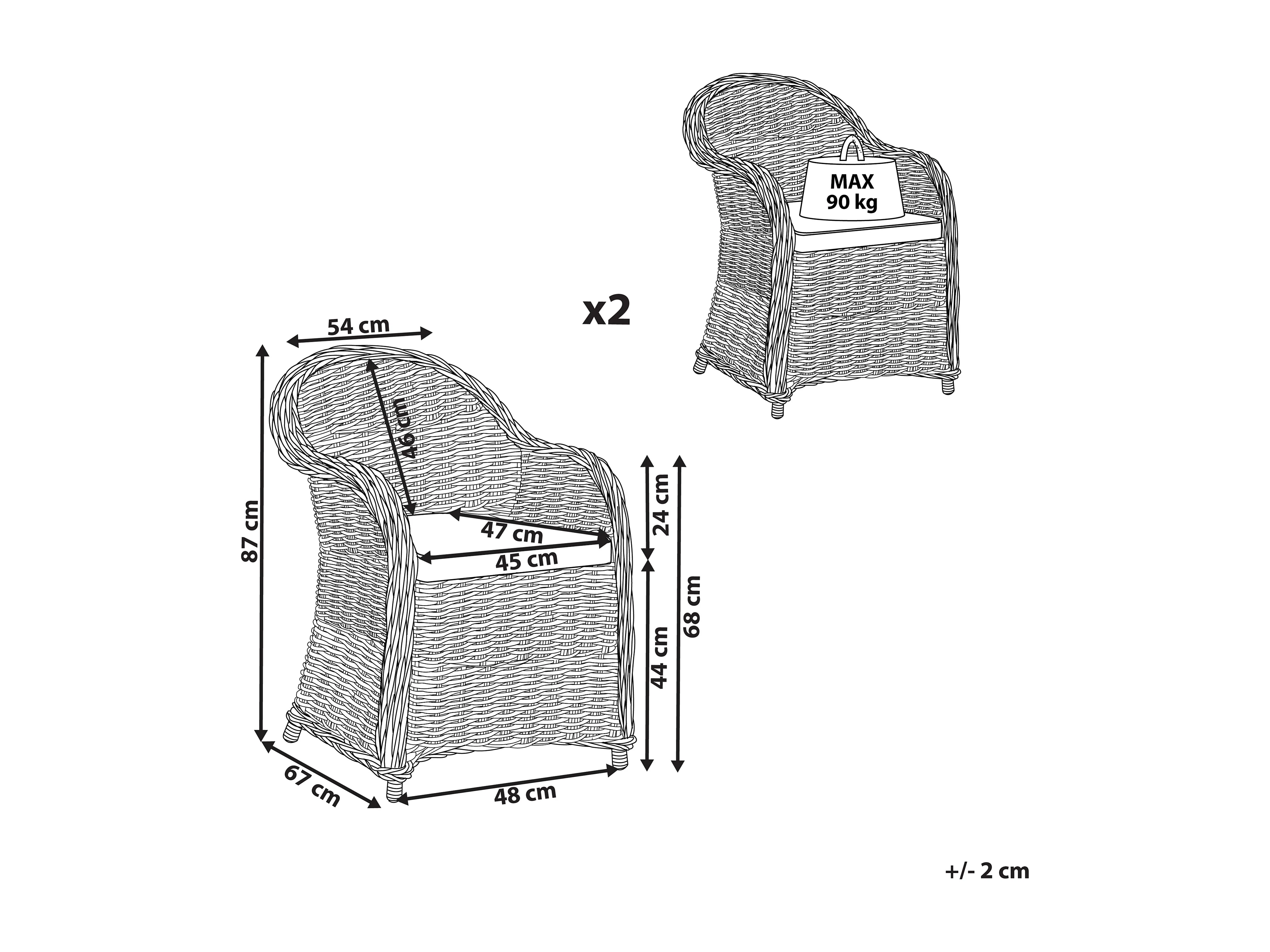 Set di 2 poltrone da giardino con cuscini SUSUA Rattan Naturale