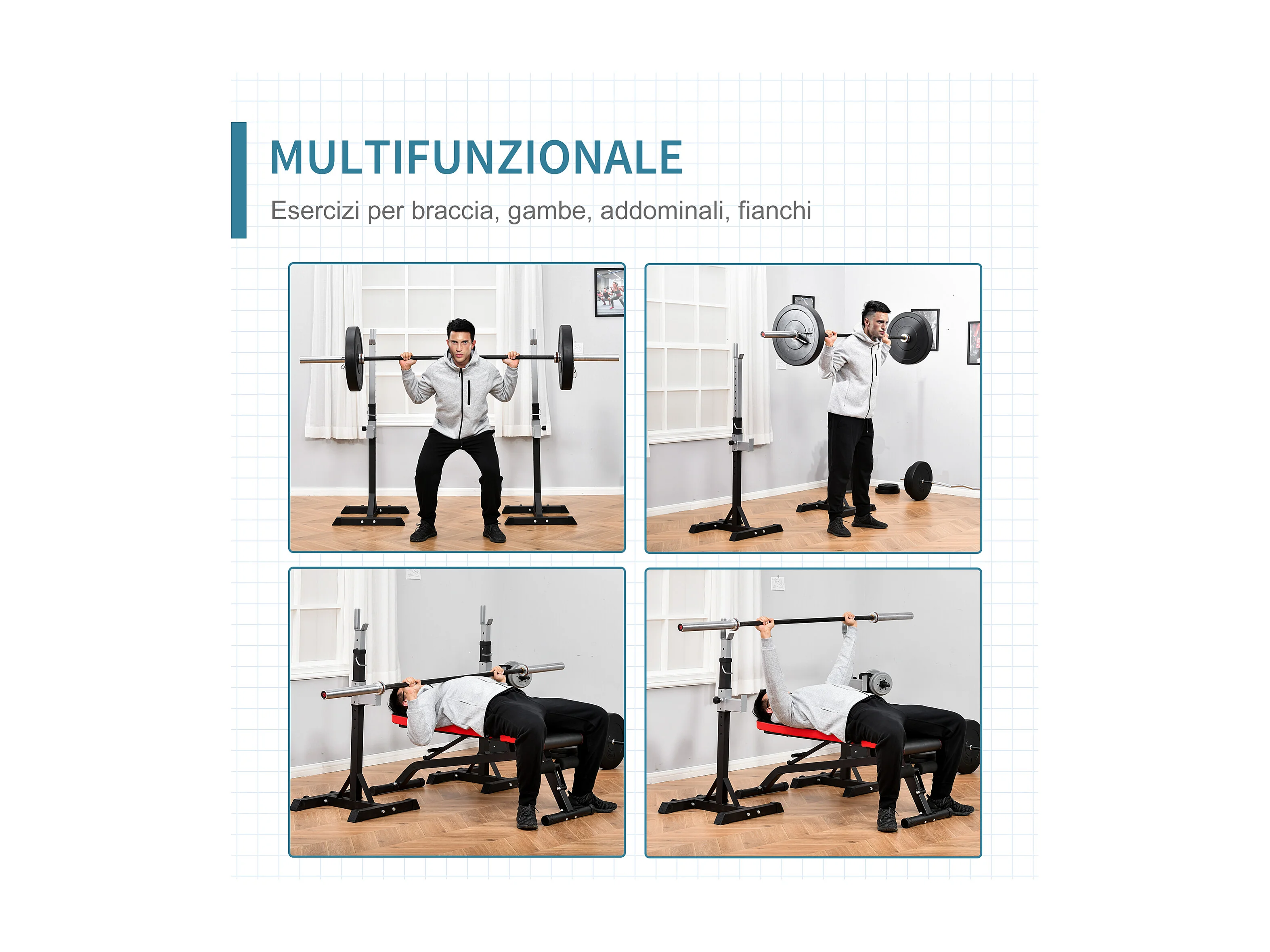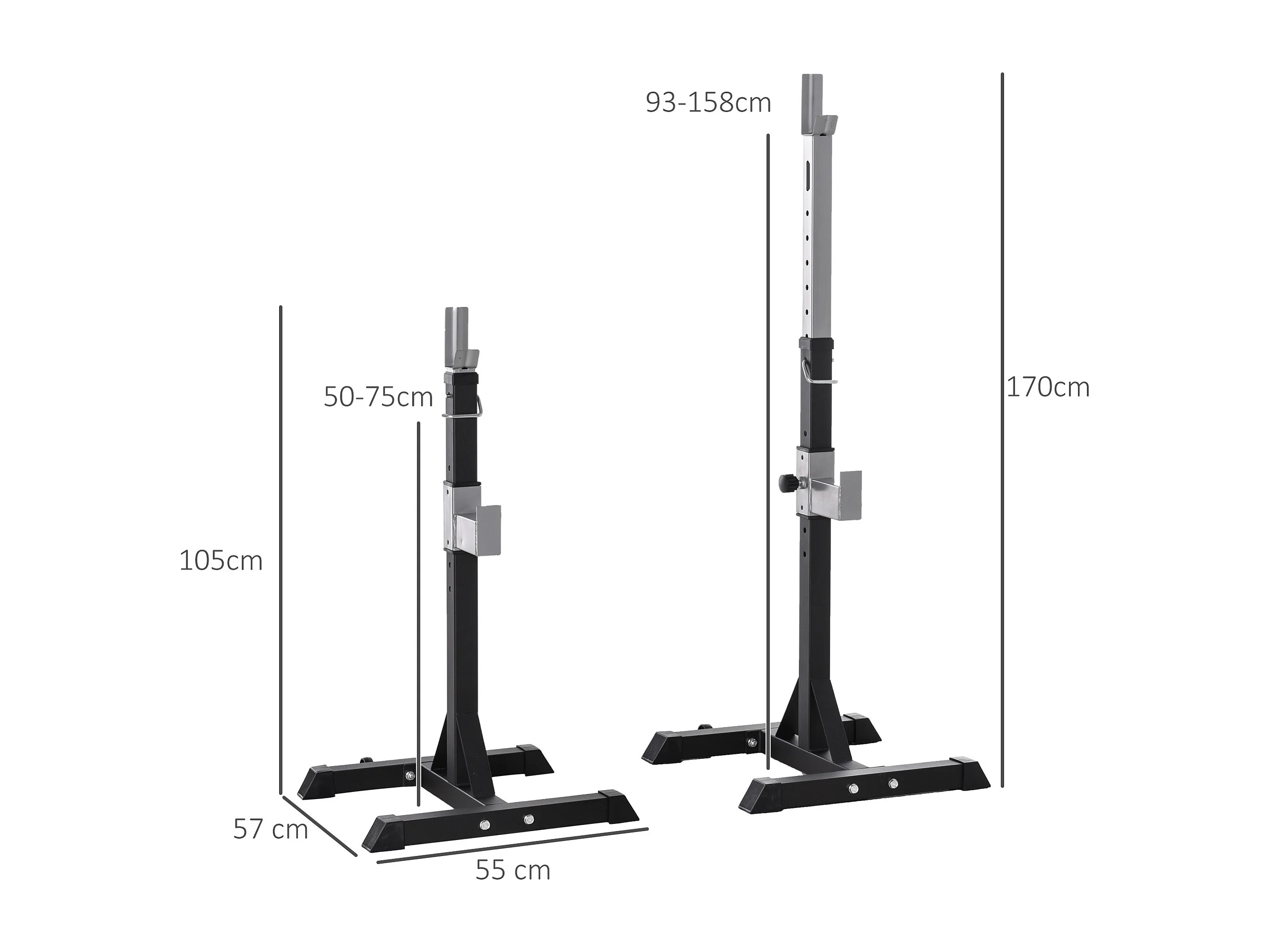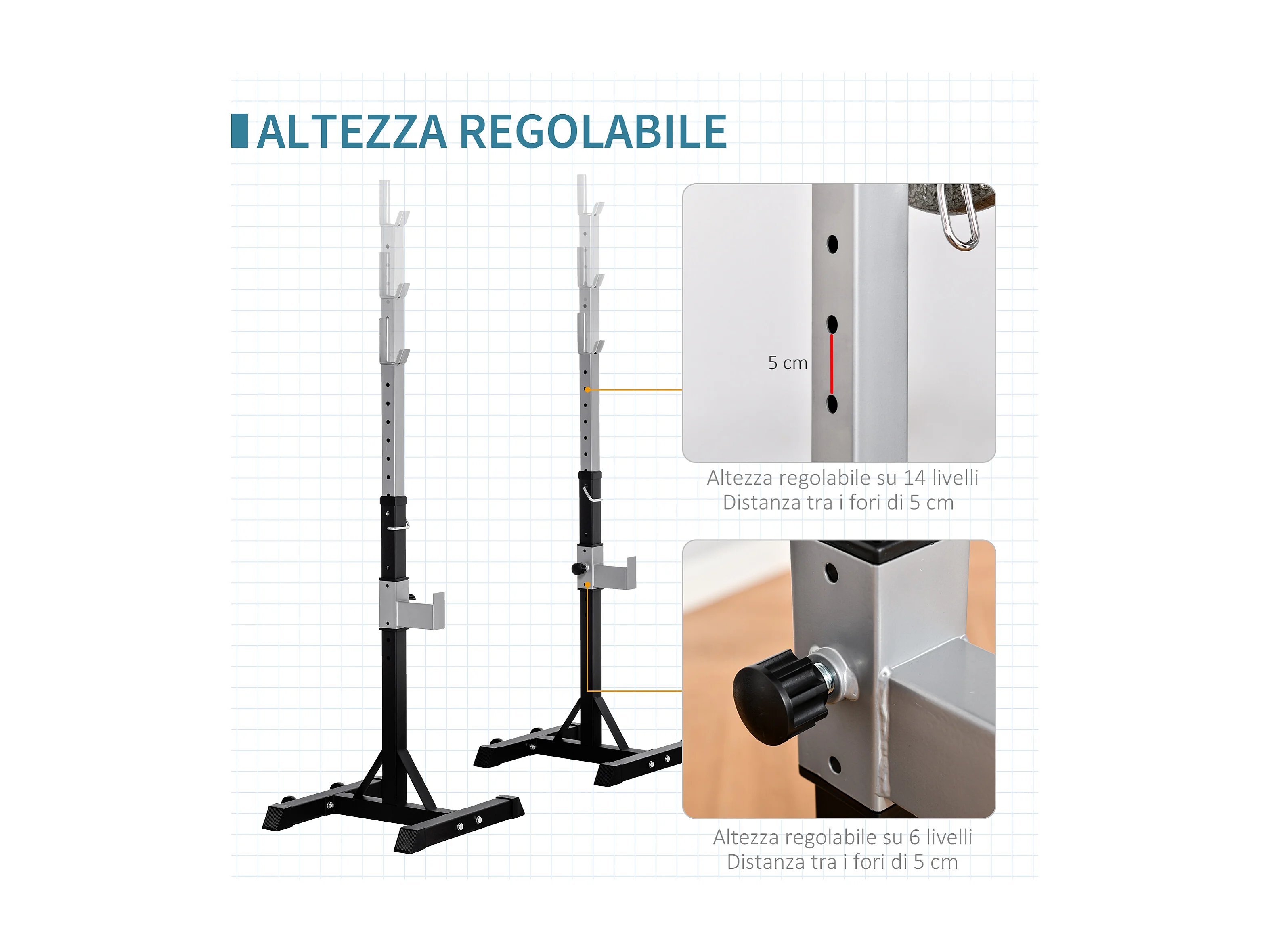 Set 2 rack porta bilanciere in acciaio altezza regolabile ganci