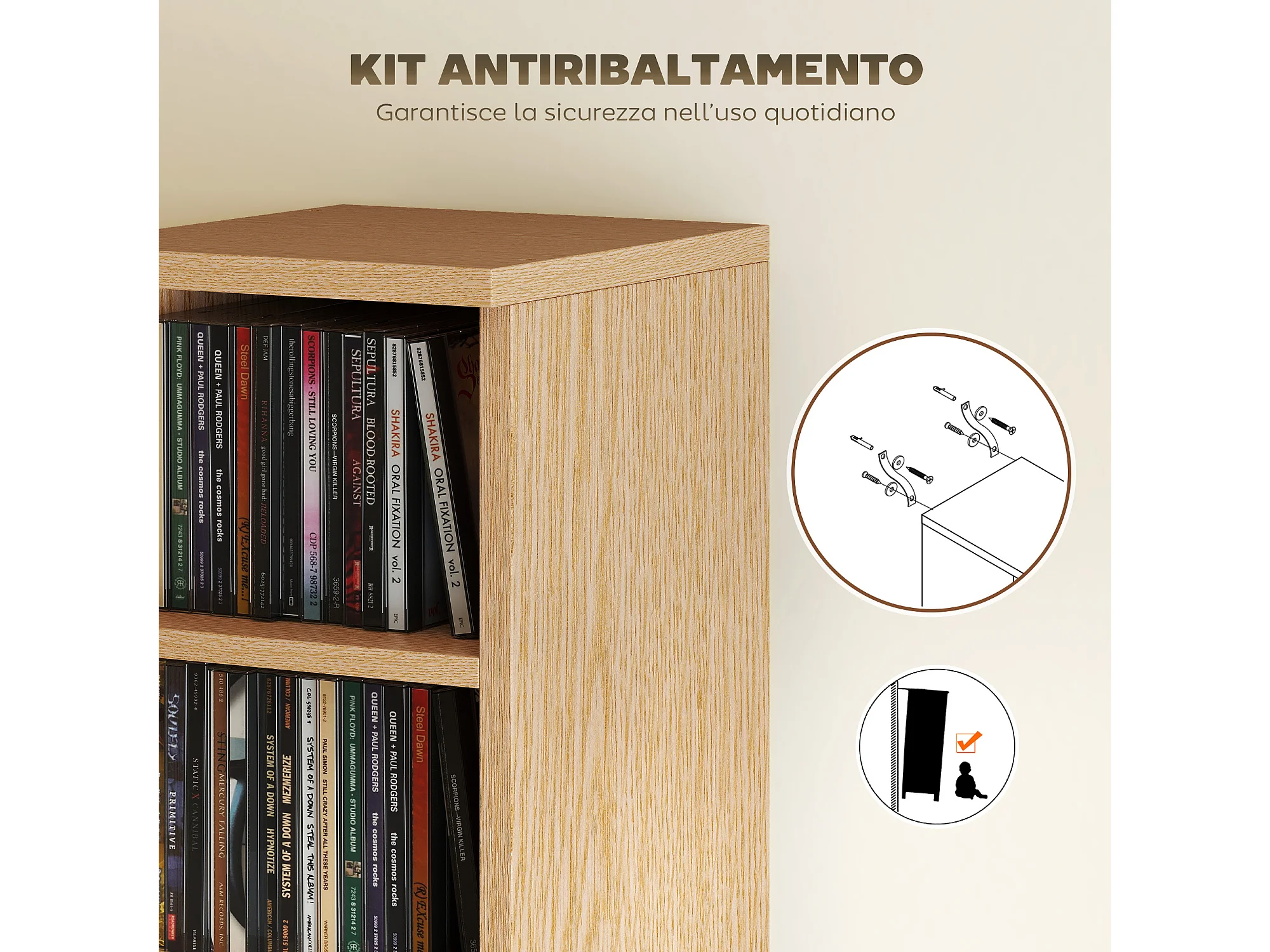 Set 2 scaffali porta cd a 6 ripiani regolabili per 204 cd color legno