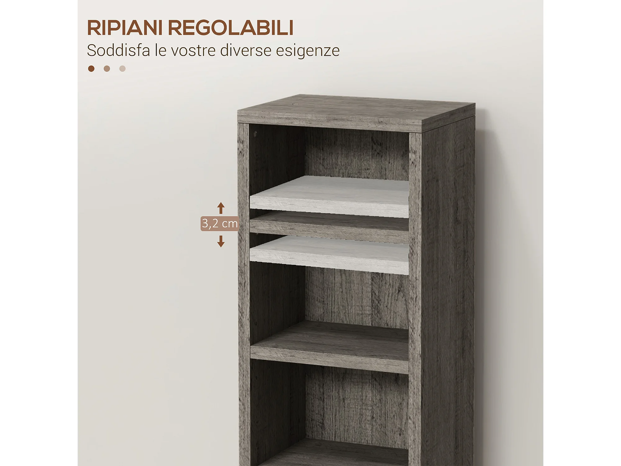 Set 2 scaffali porta cd con mensole regolabili grigio effetto legno