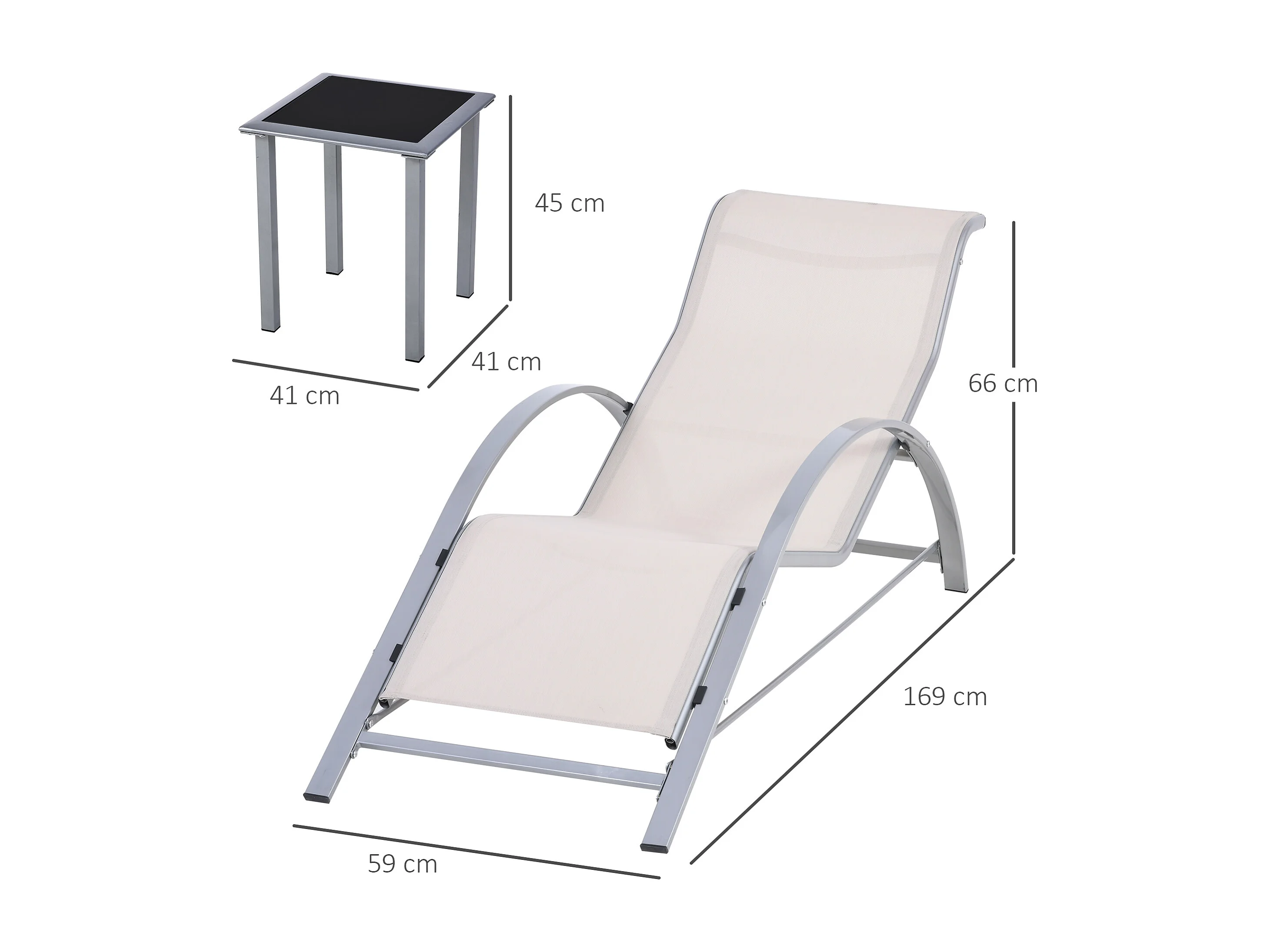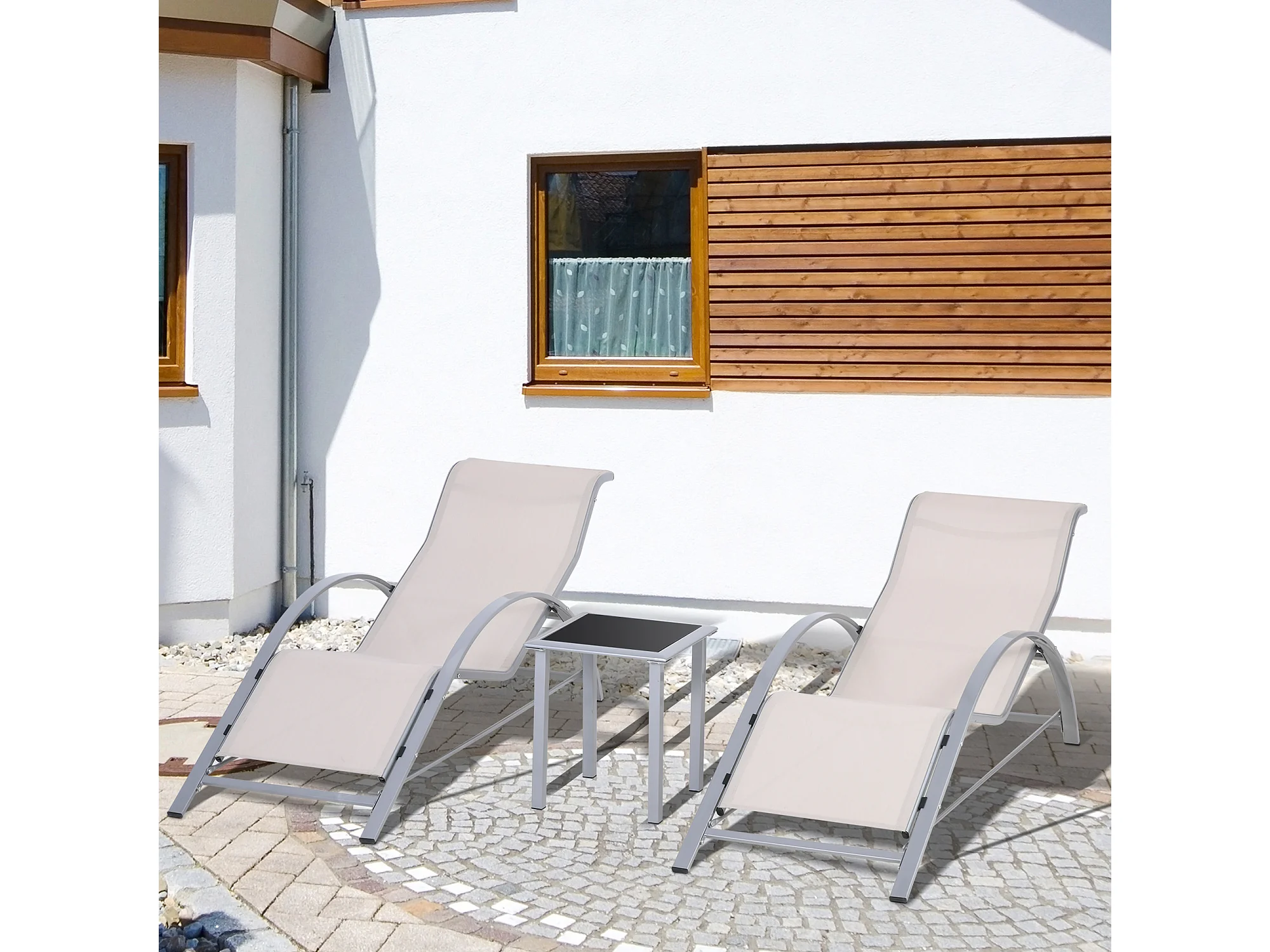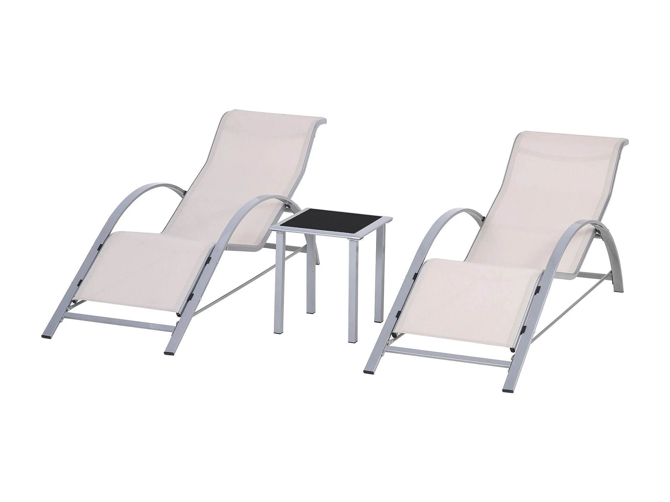 Set 2 sdraio da giardino e tavolino con piano in vetro crema