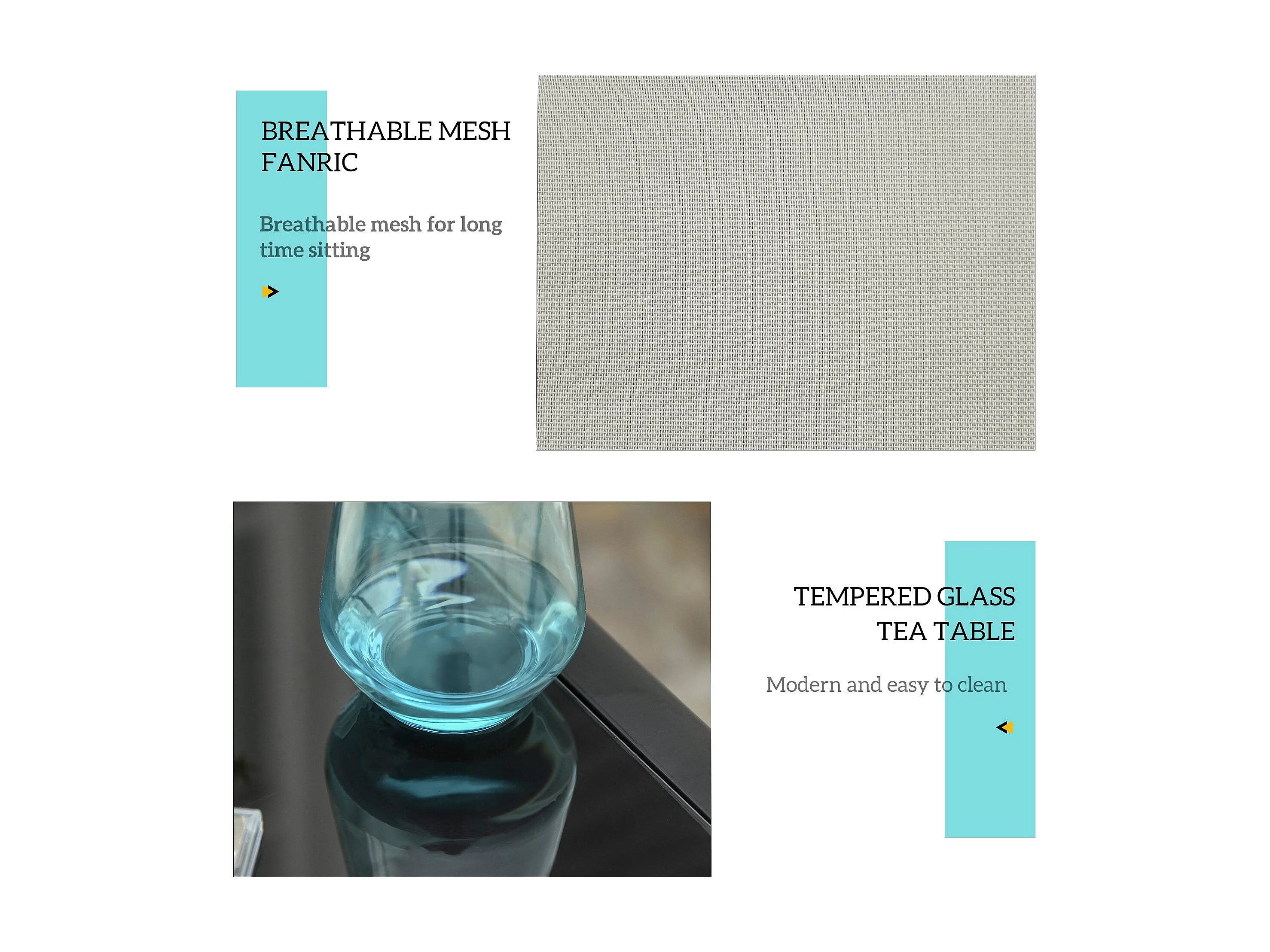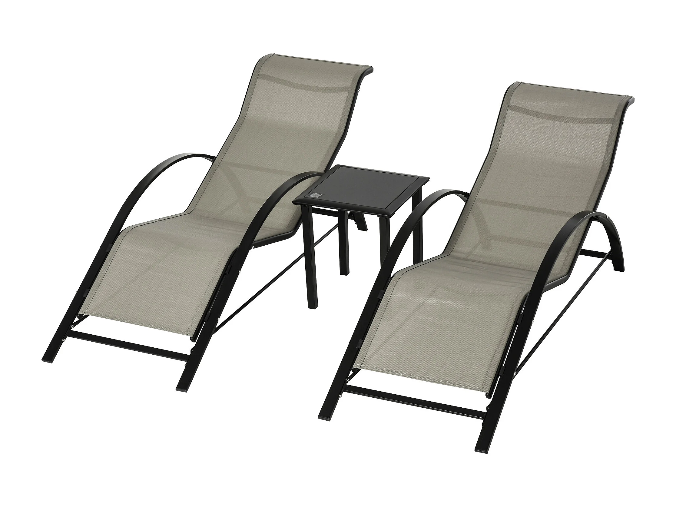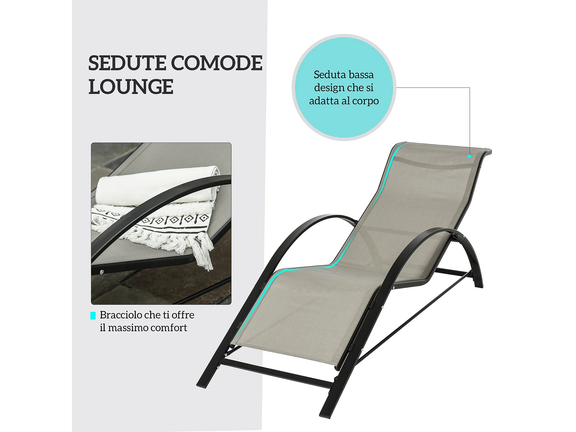 Set 2 sdraio da giardino e tavolino con piano in vetro grigio