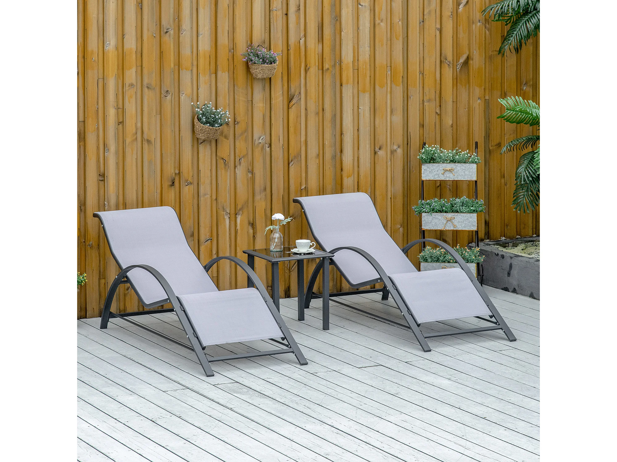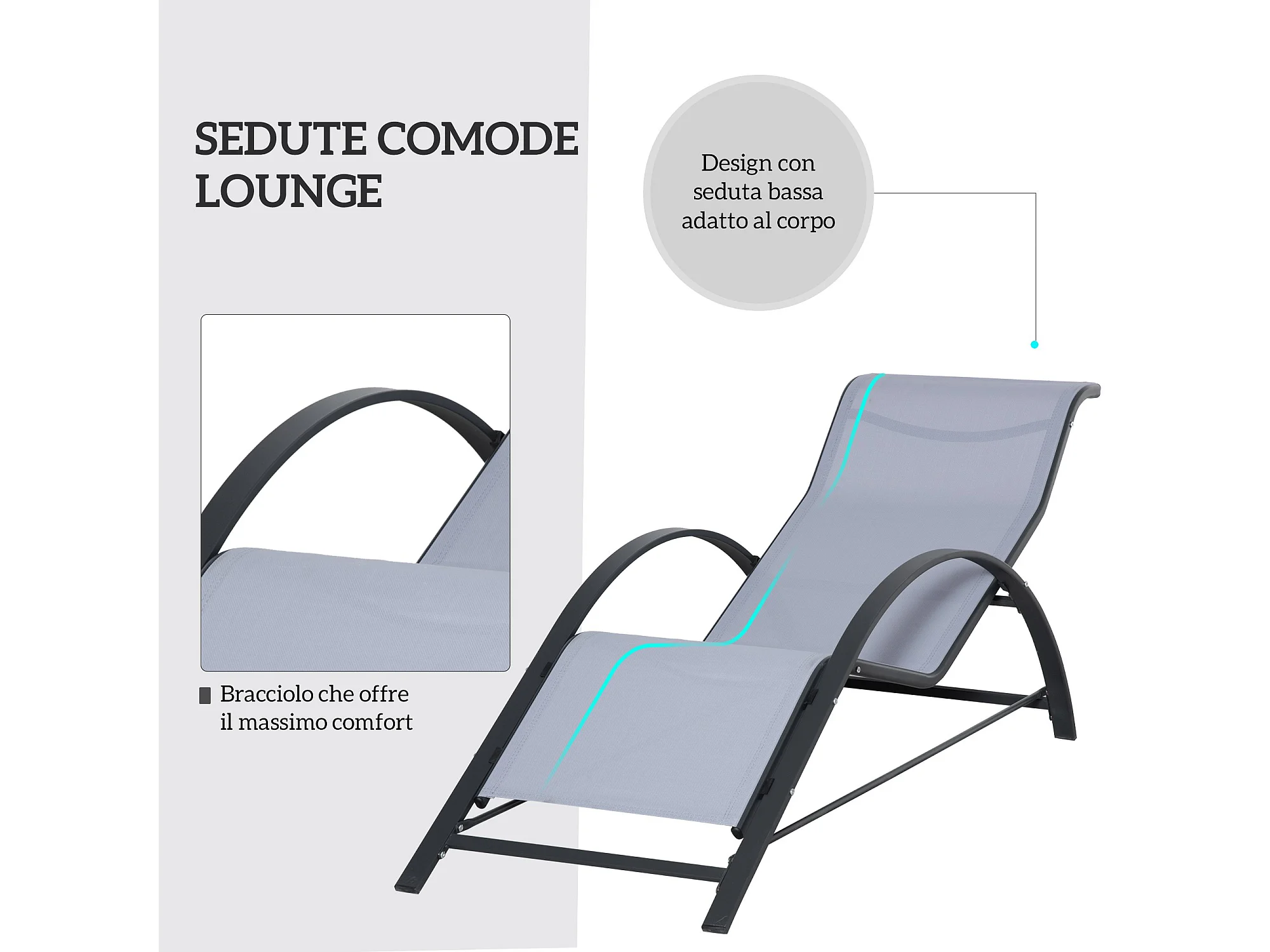 Set 2 sdraio da giardino e tavolino con piano in vetro grigio chiaro
