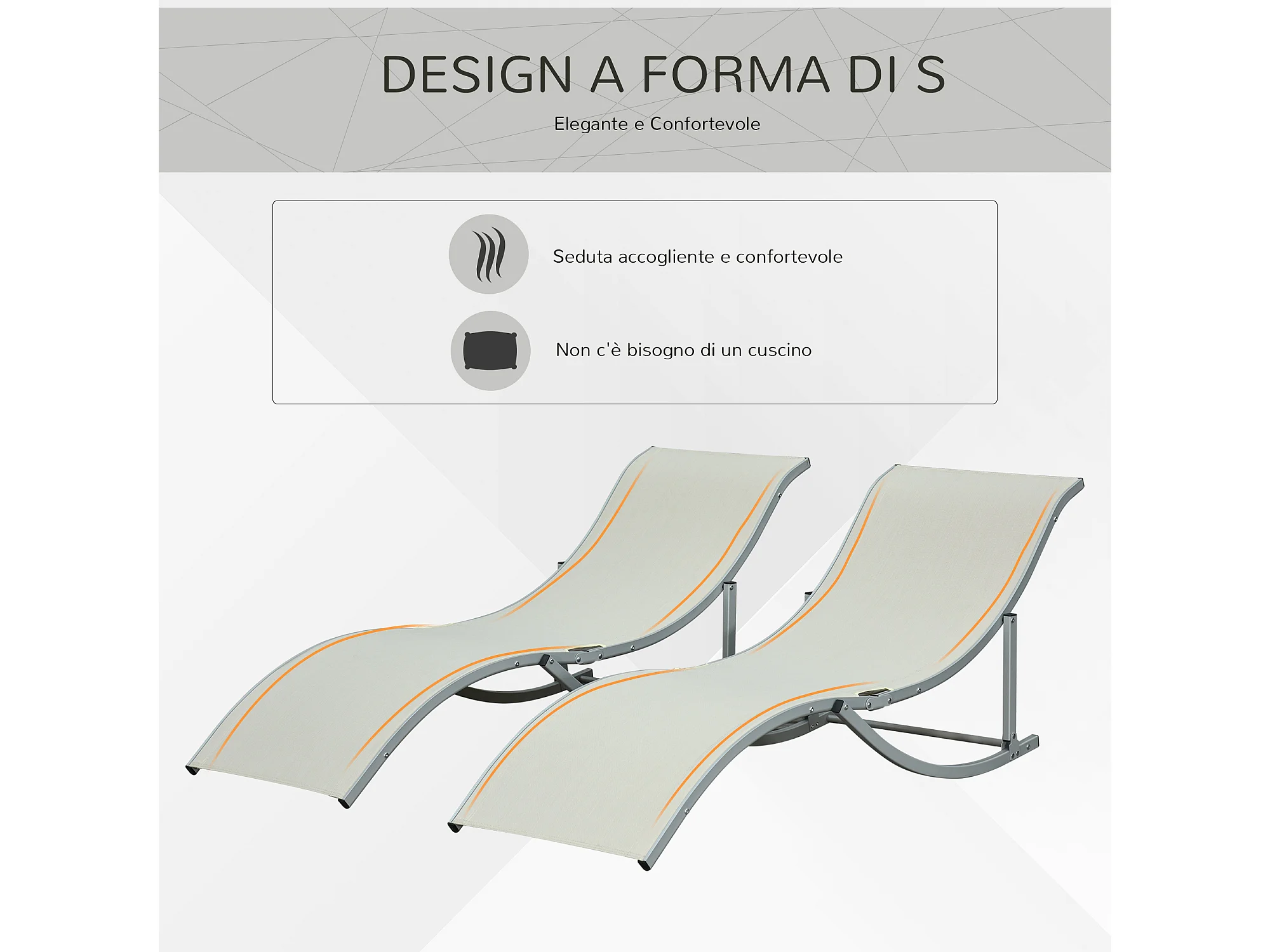 Set 2 sdraio da giardino pieghevoli in alluminio e textilene