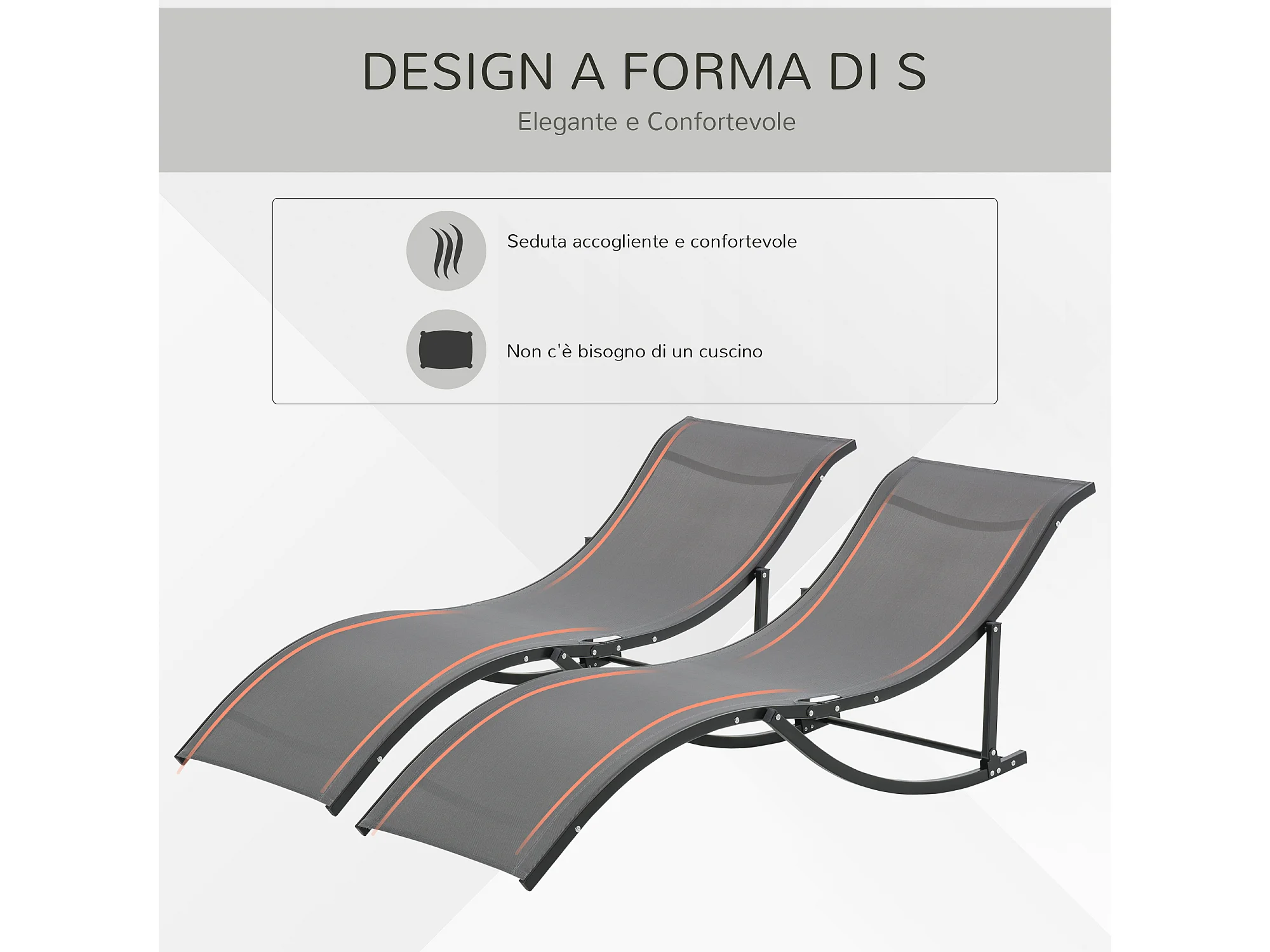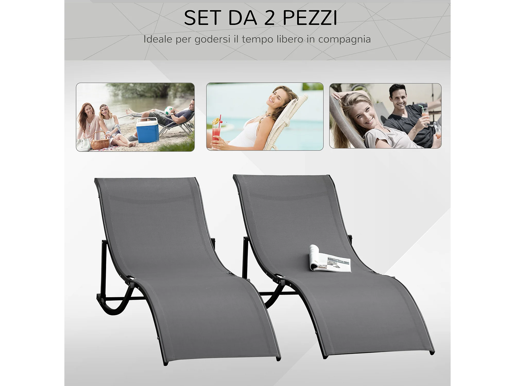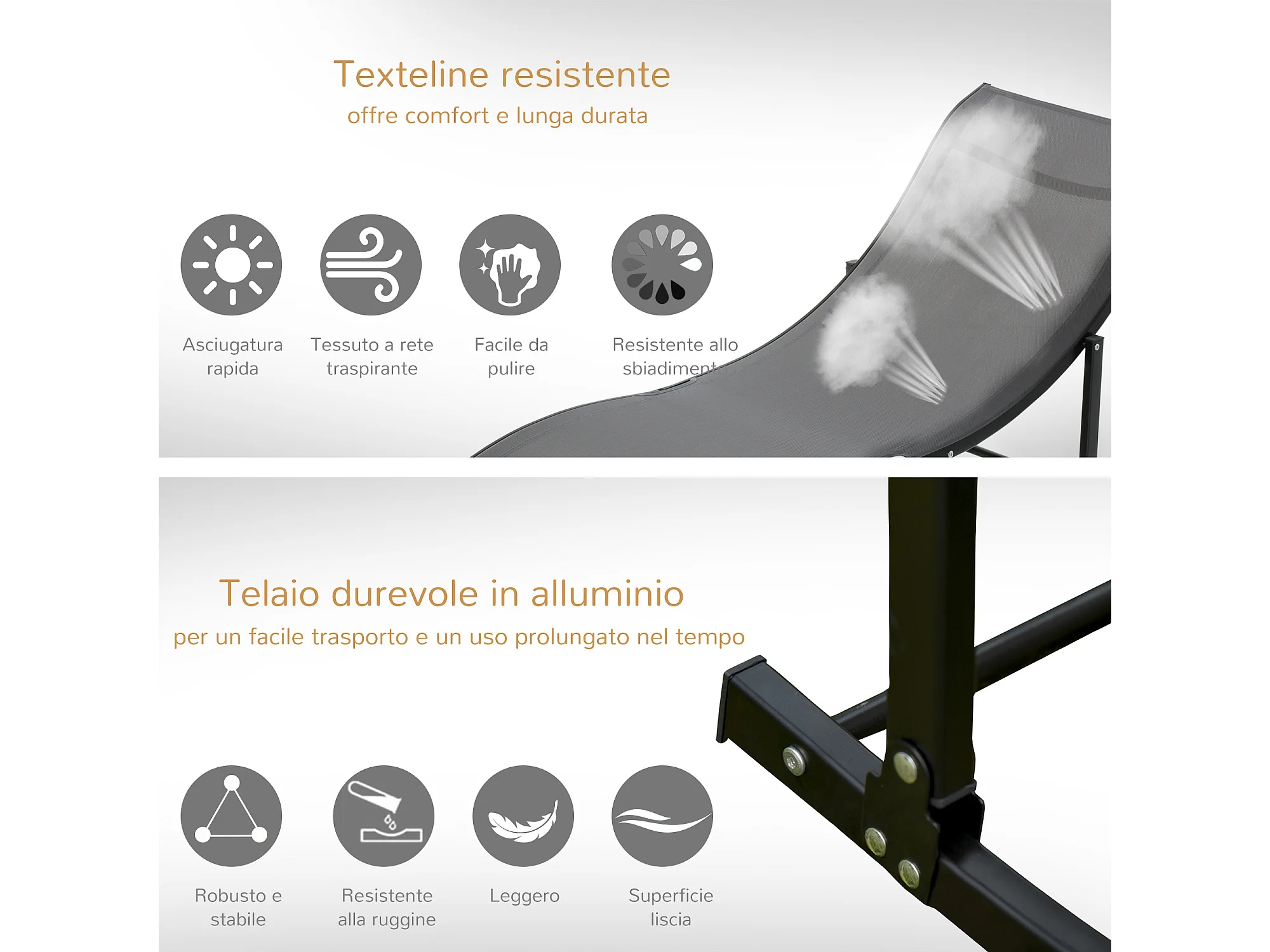 Set 2 sdraio da giardino pieghevoli in alluminio e textilene