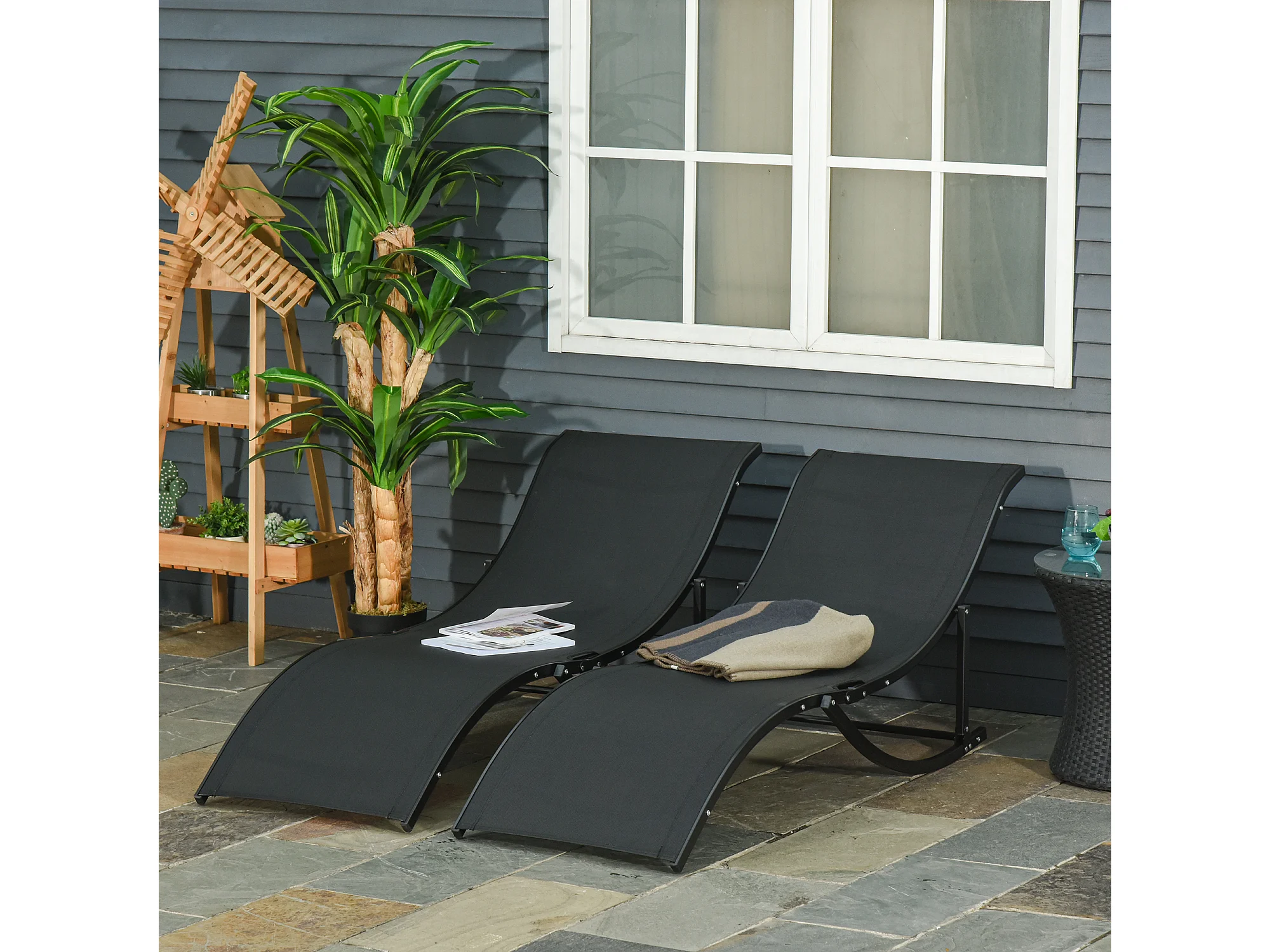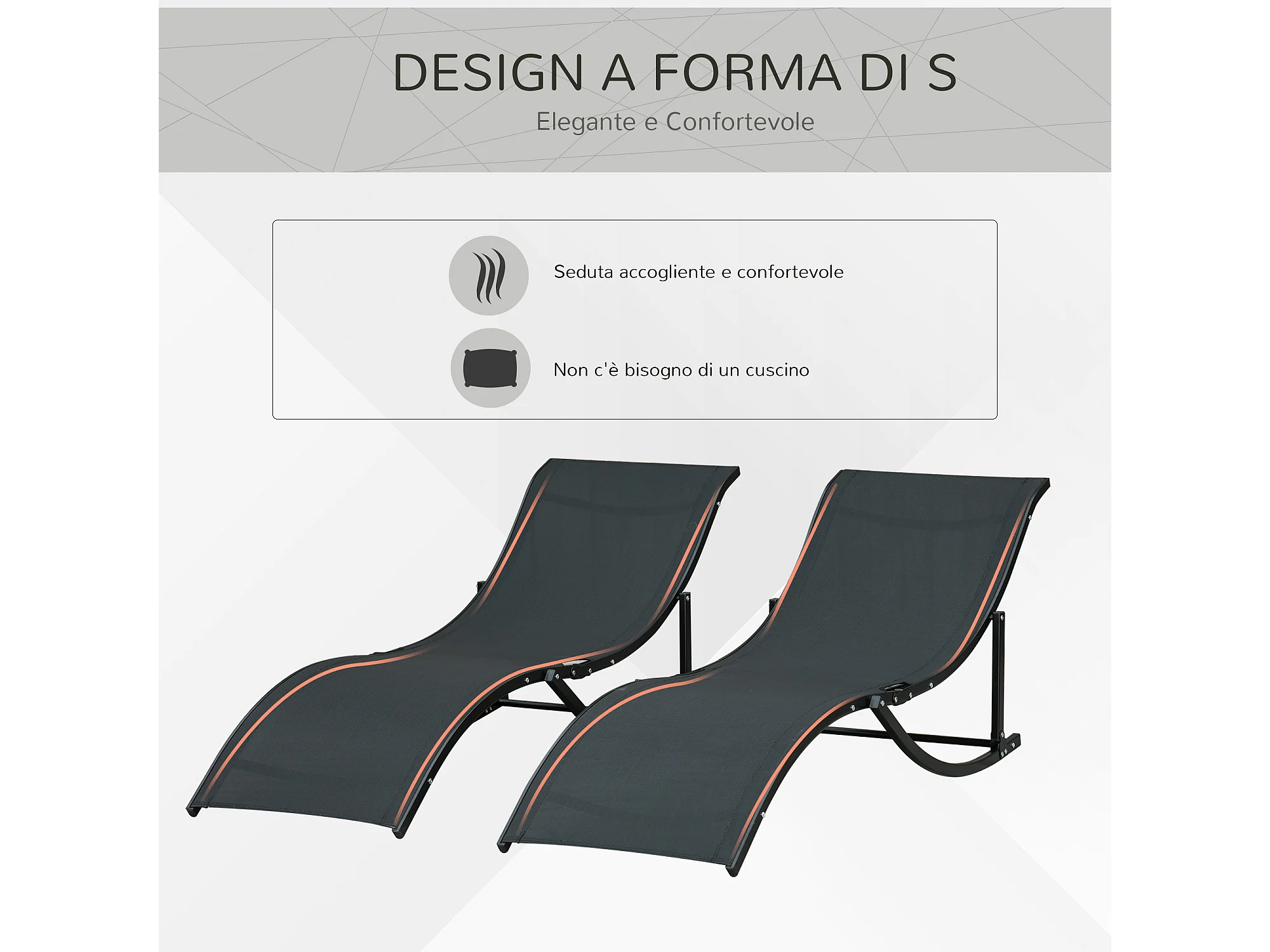 Set 2 sdraio da giardino pieghevoli in alluminio e textilene