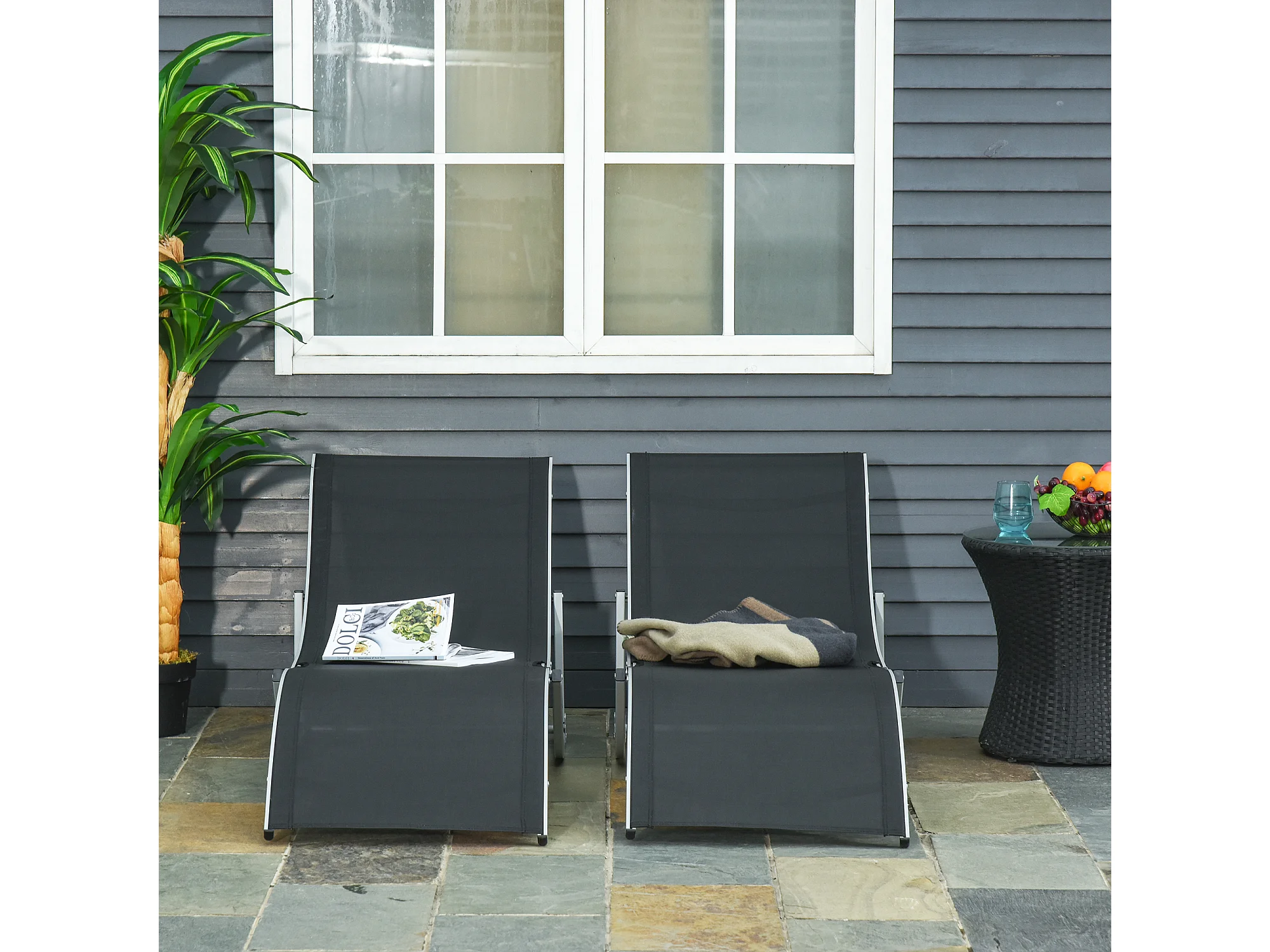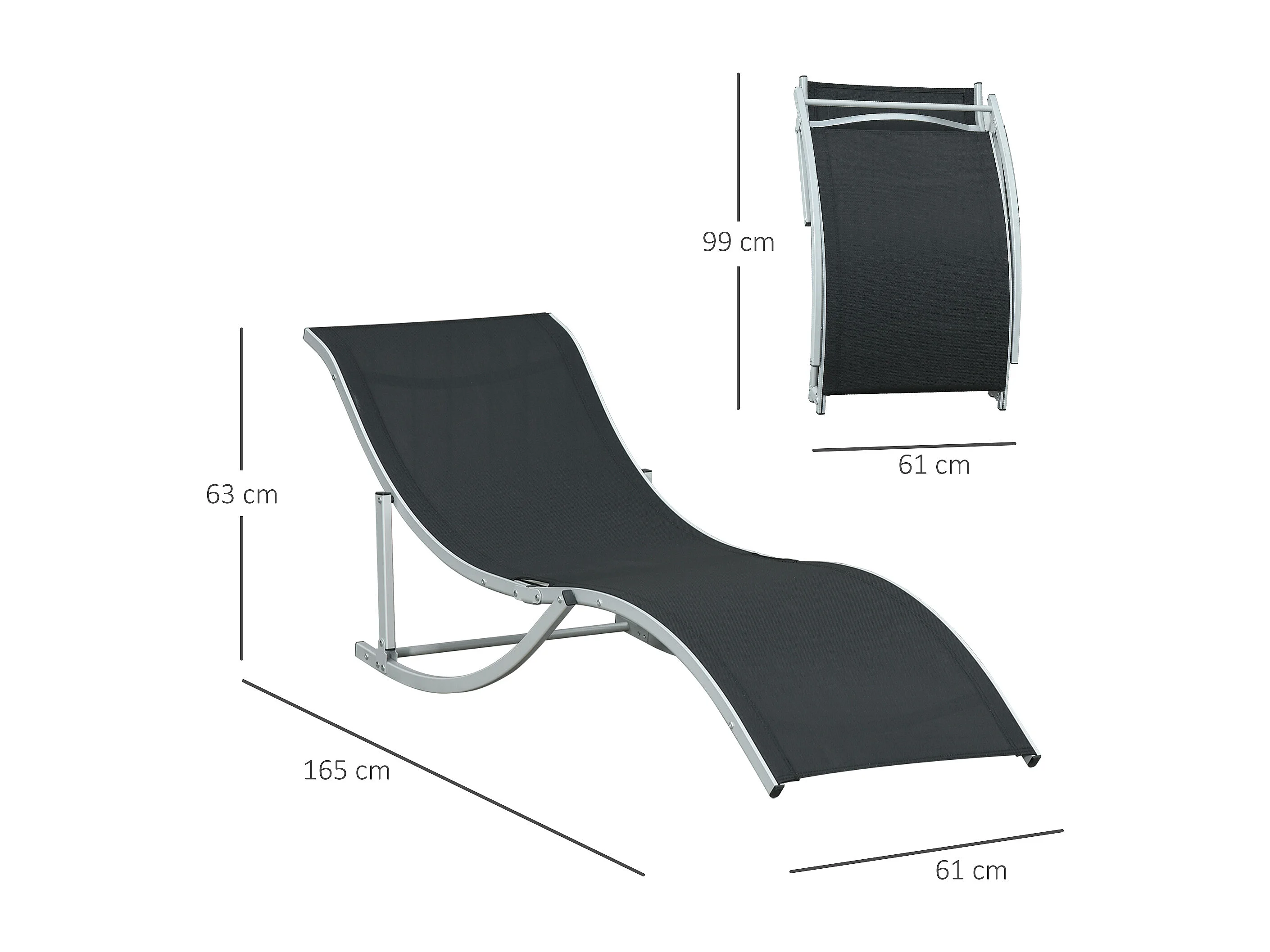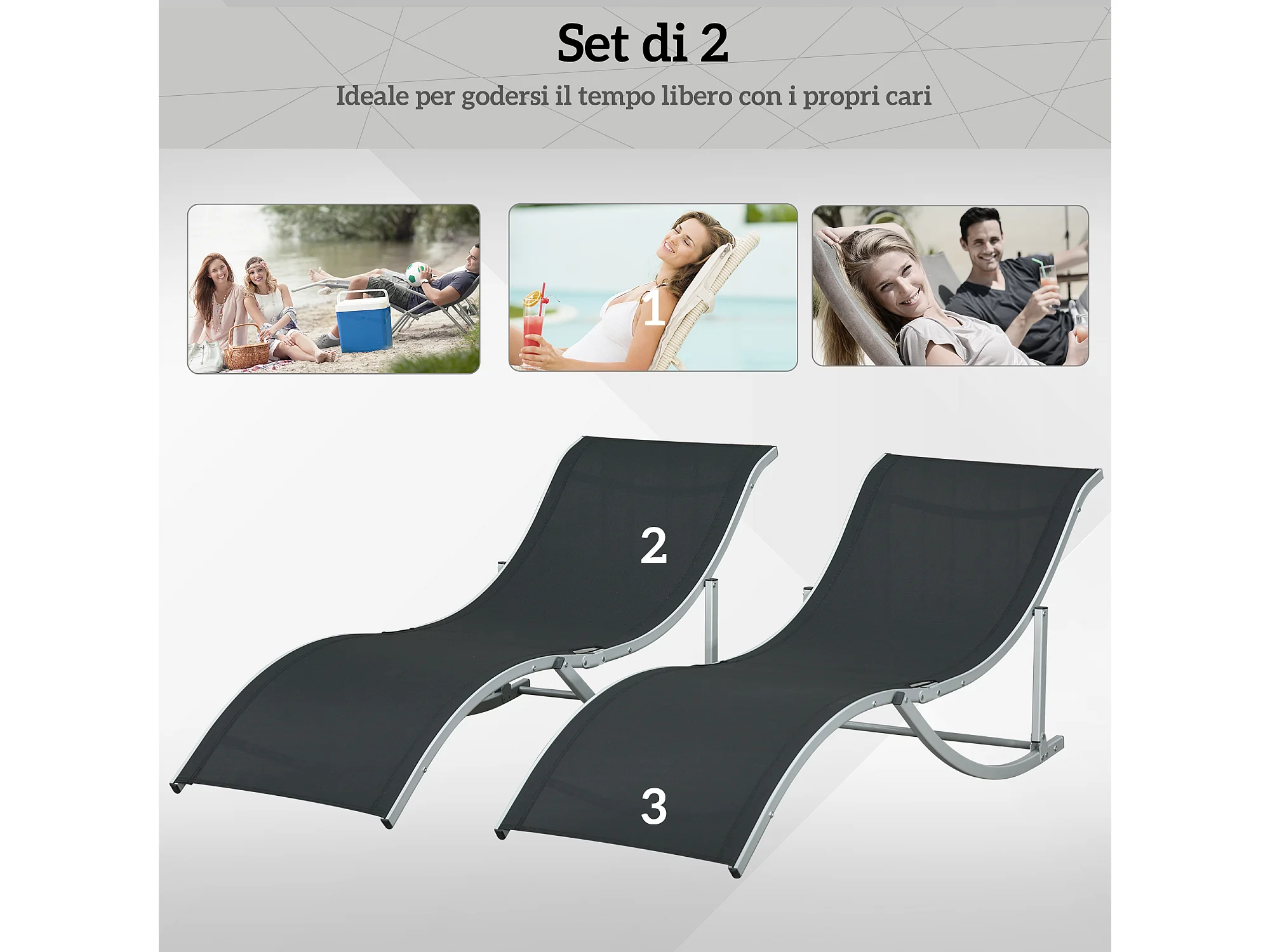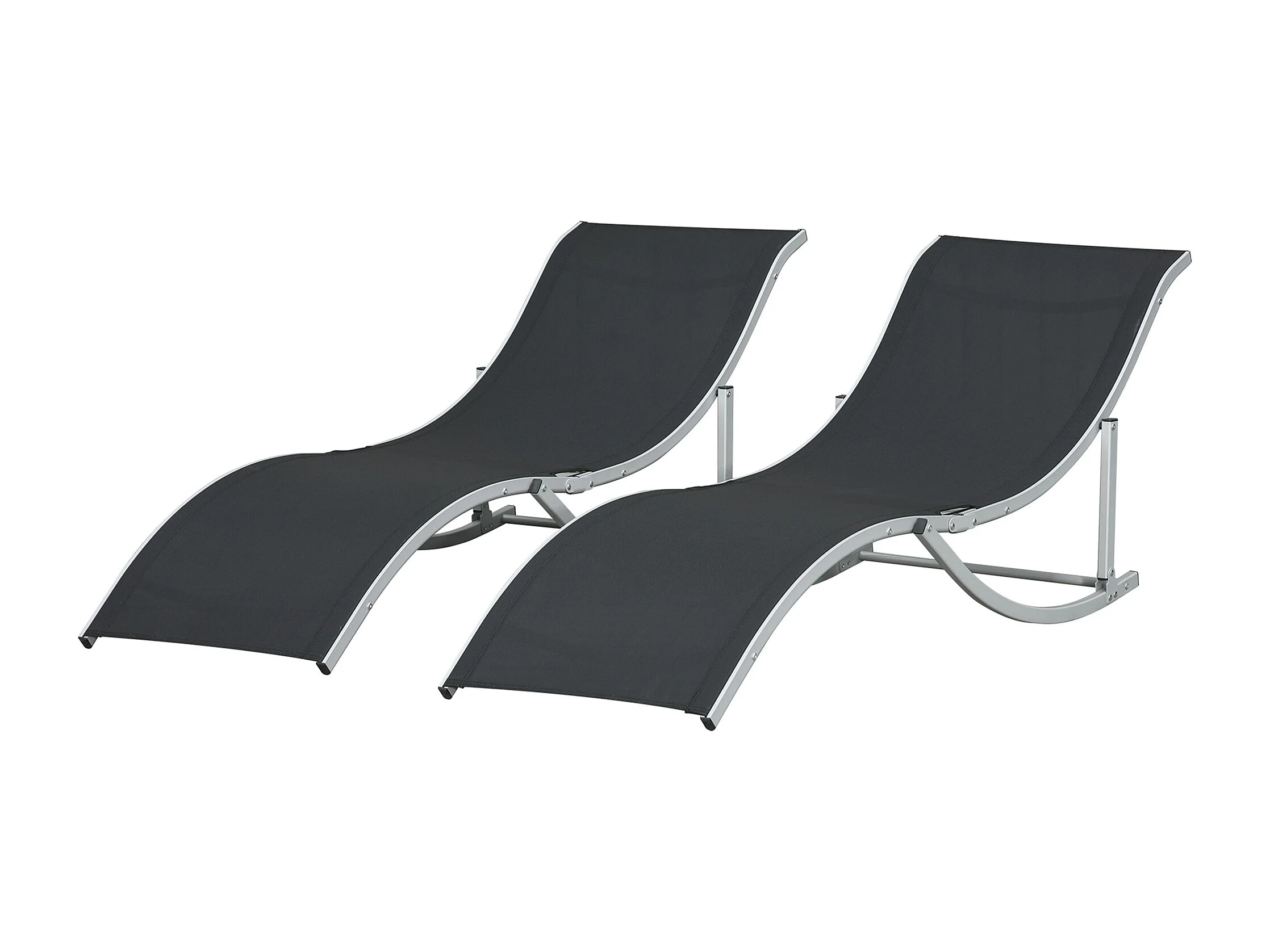 Set 2 sdraio da giardino pieghevoli in alluminio e textilene nero