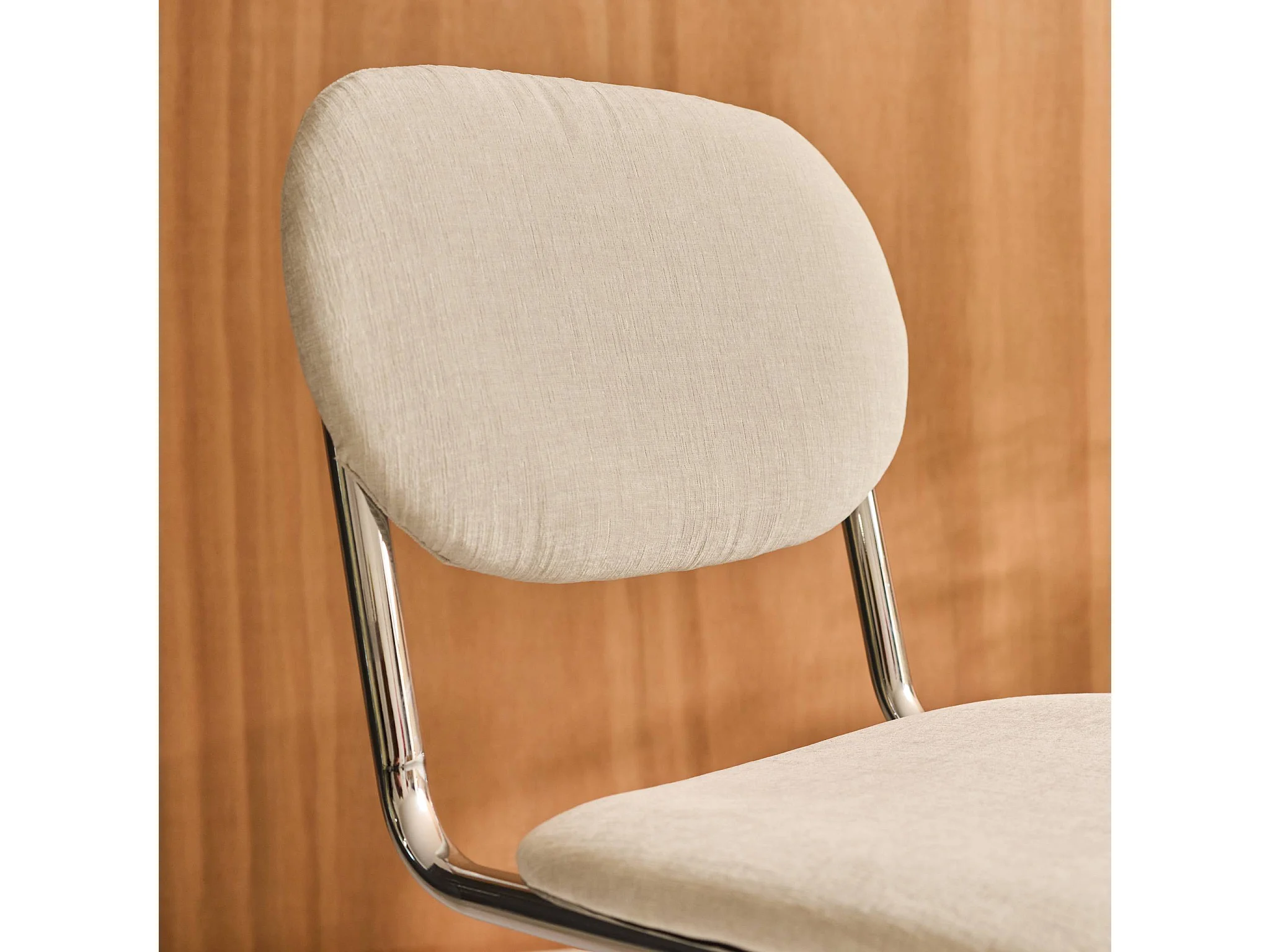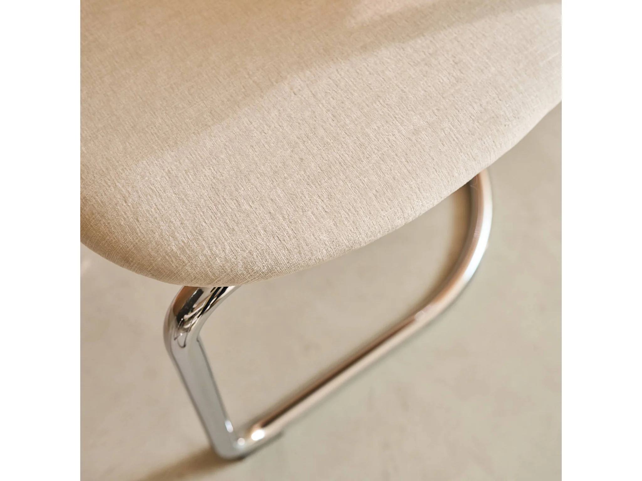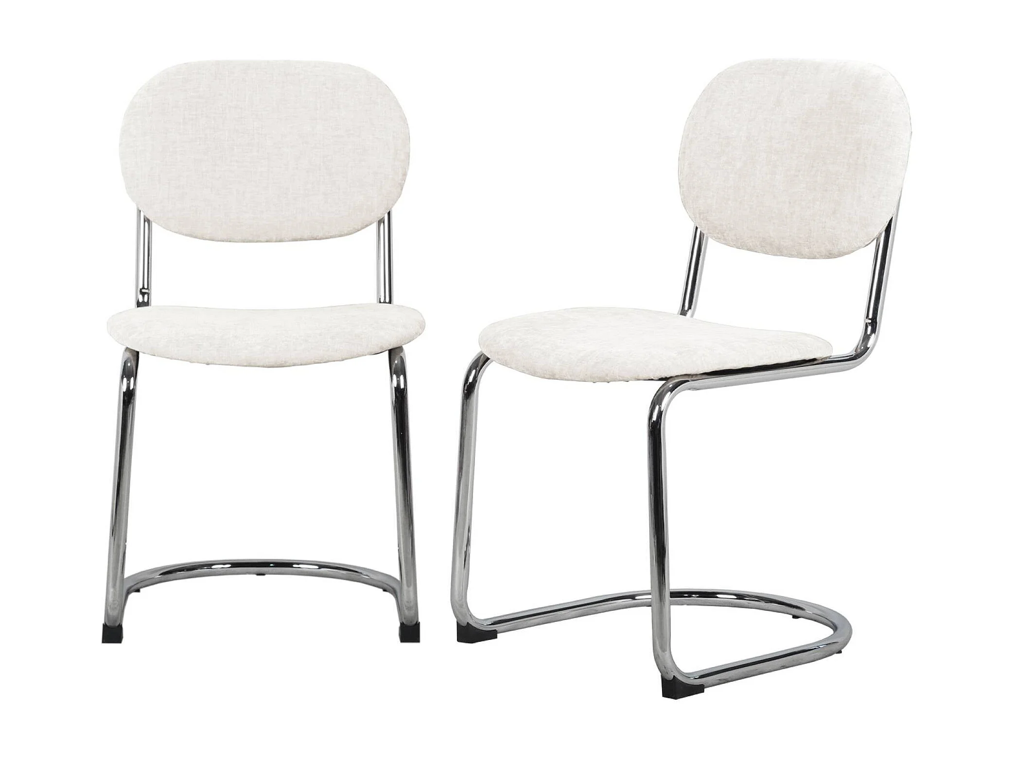 Set 2 sedie arrotondate metallo, tessuto ciniglia e gambe cromate,