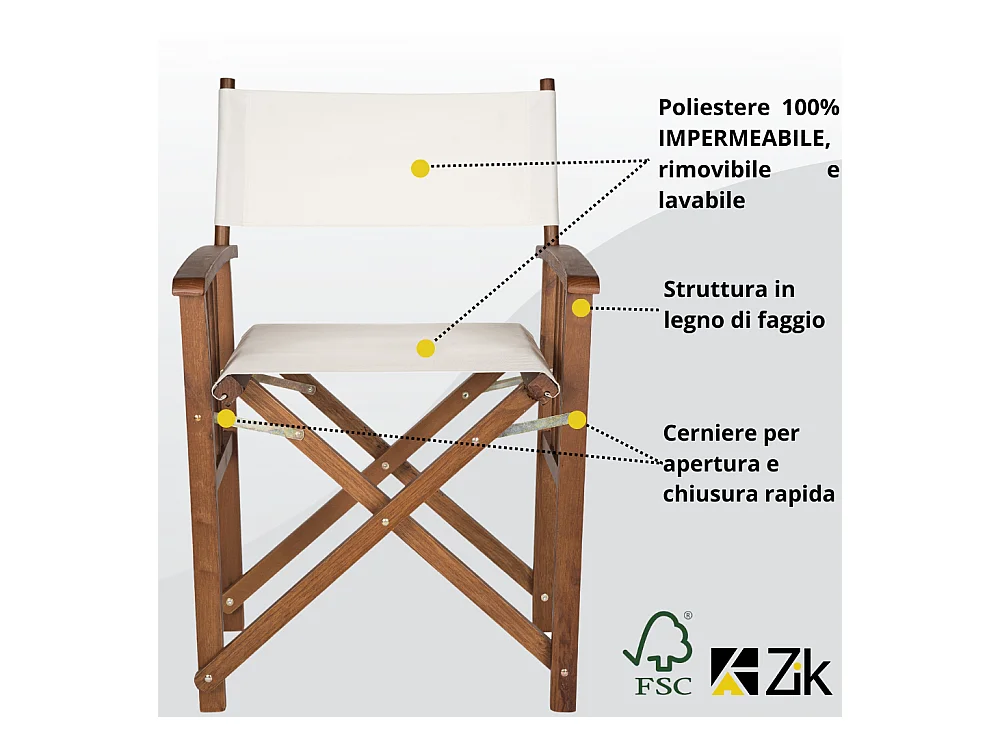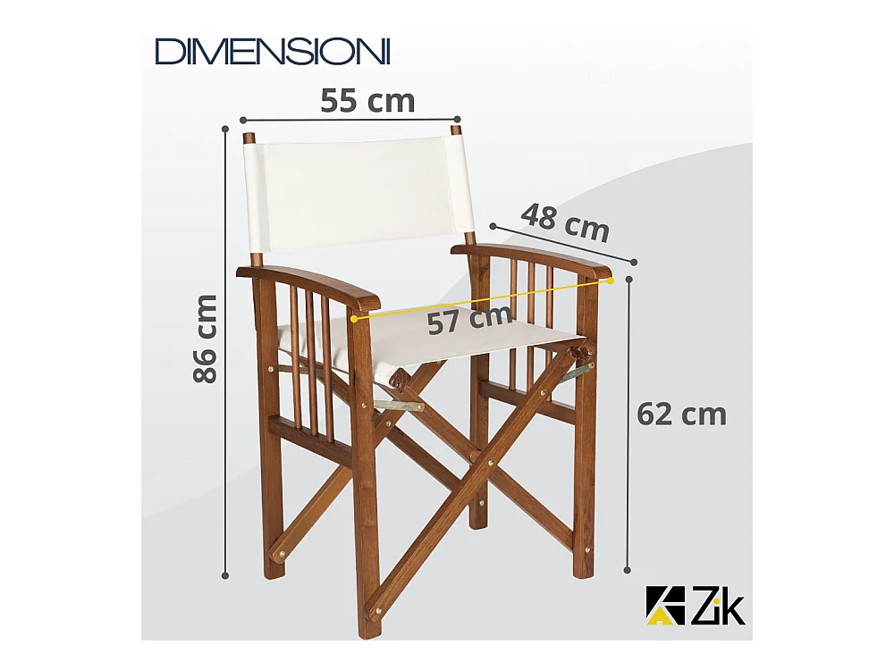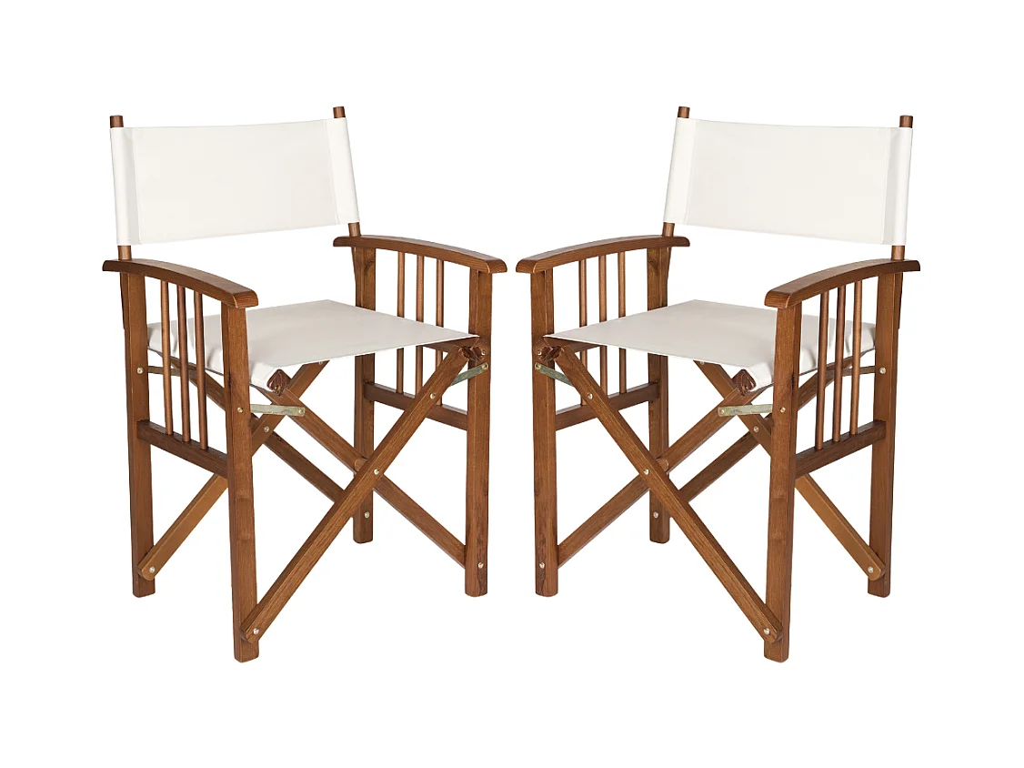 Set 2 Sedie da Giardino Esterno, Poltrone Regista Pieghevoli con Braccioli, in Legno e Poliestere, Design Moderno Outdoor 55x48x86