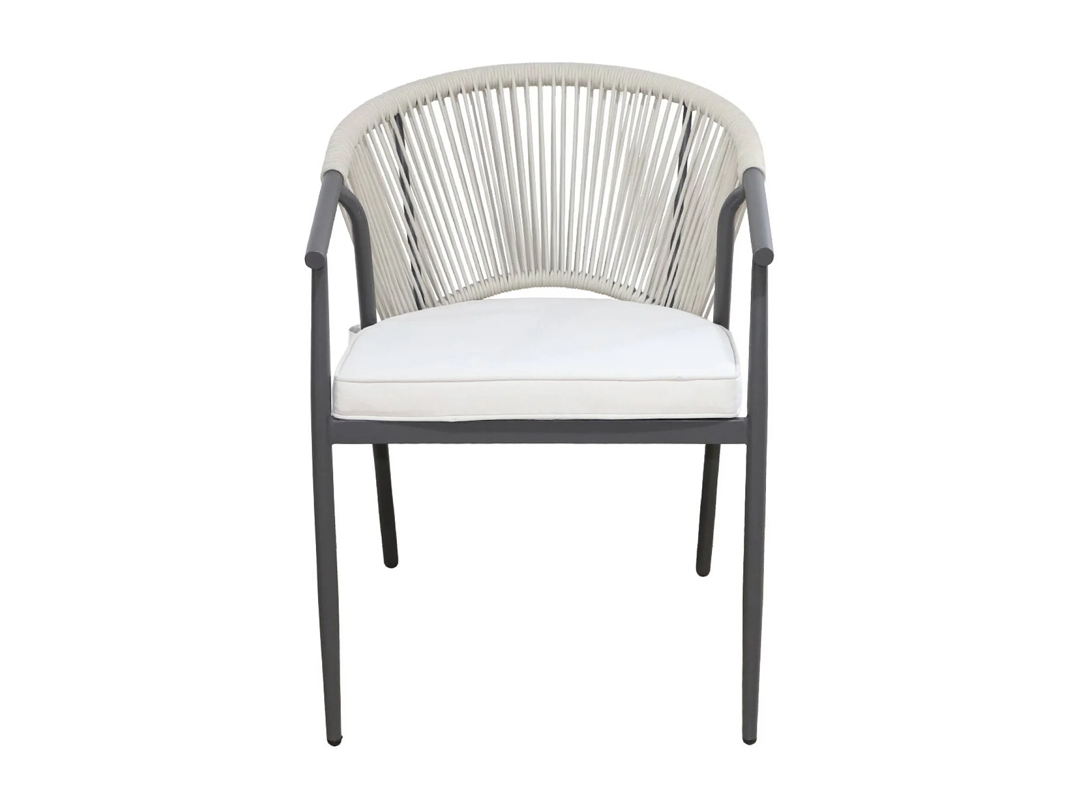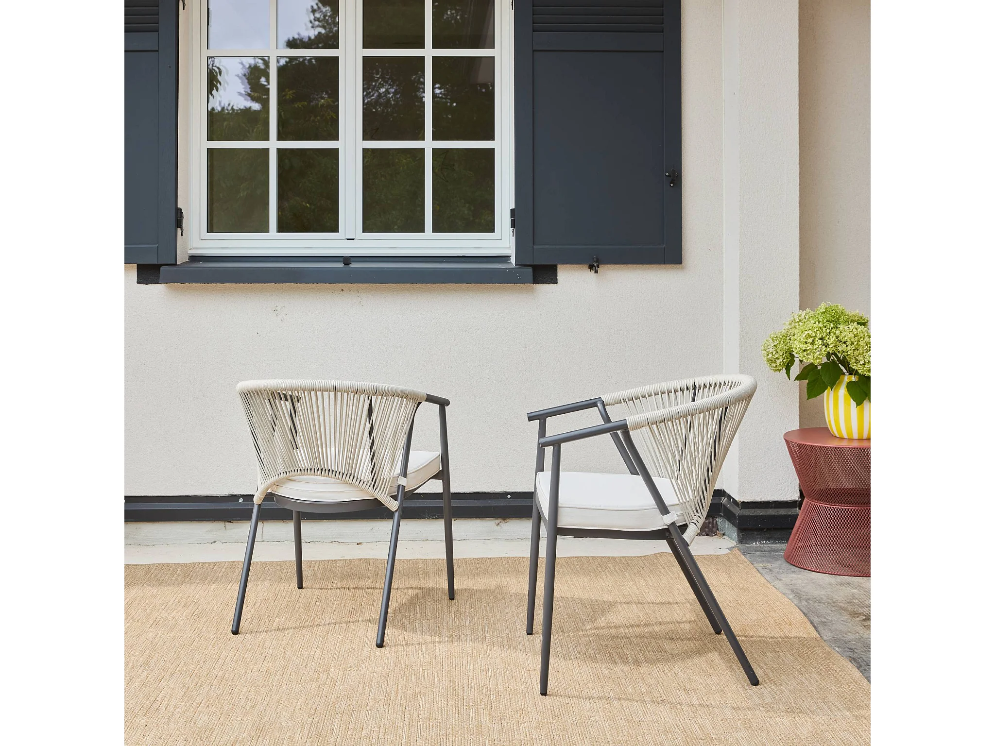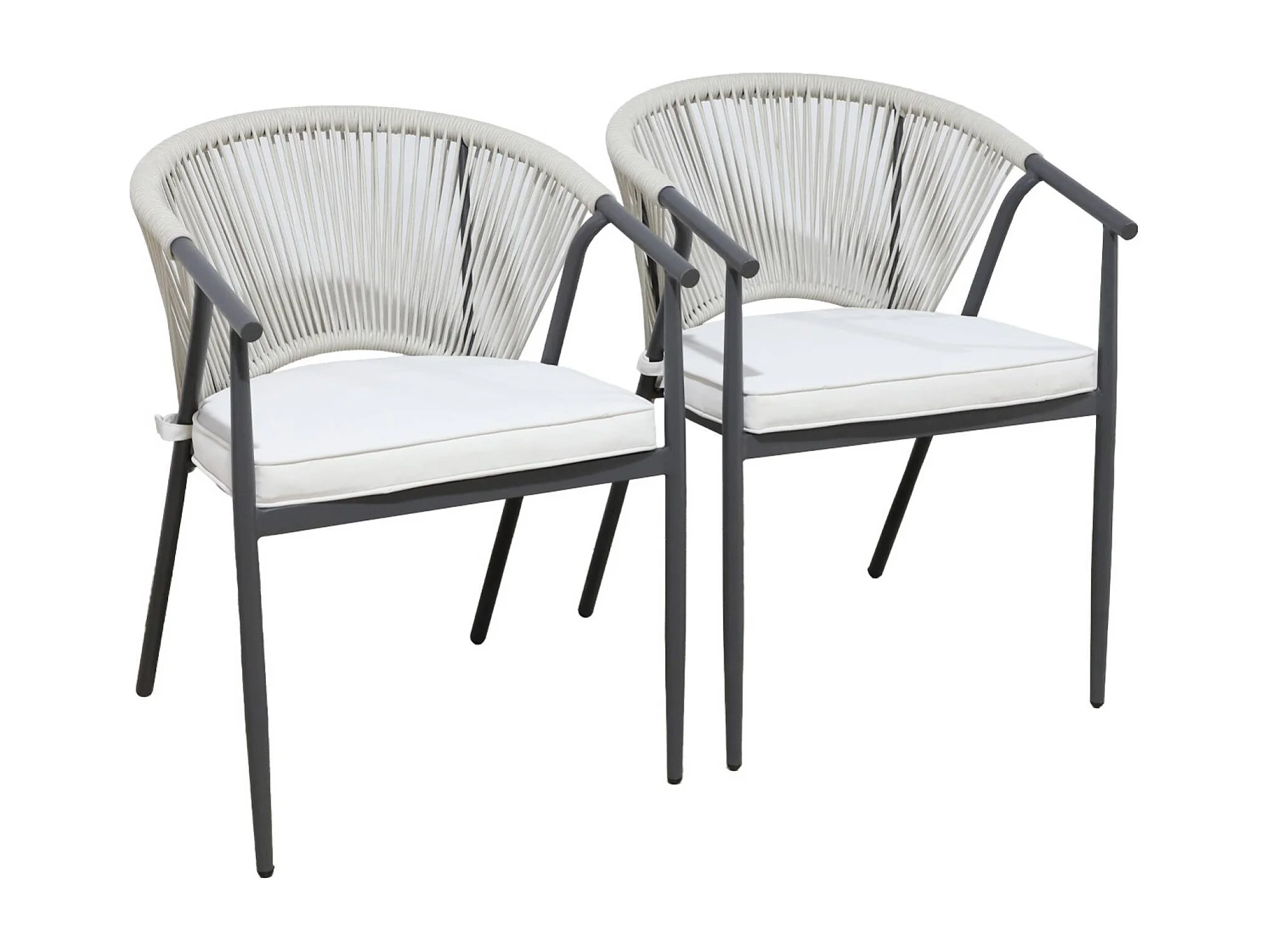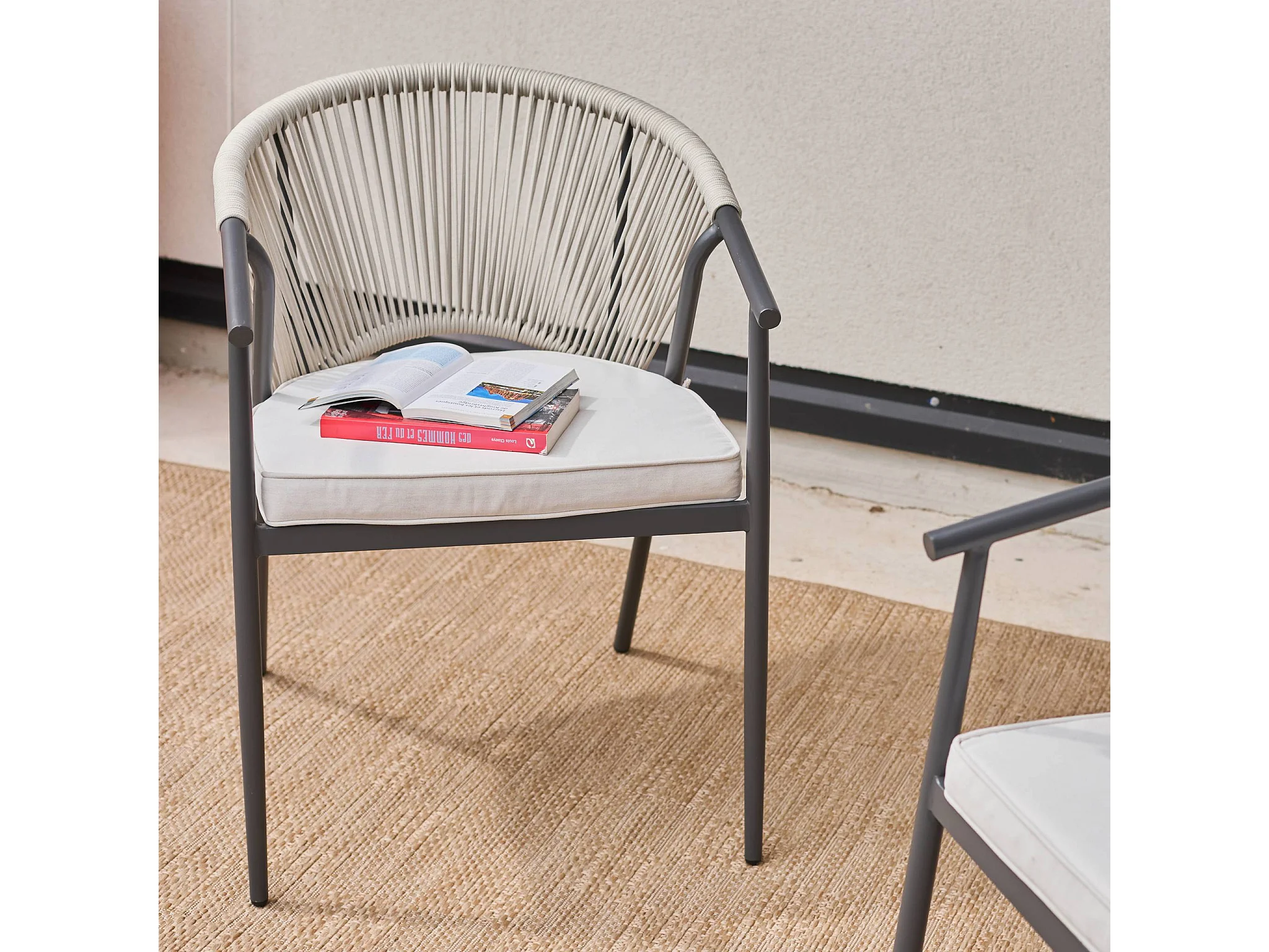 Set 2 sedie da giardino impilabili in acciaio e corde, beige