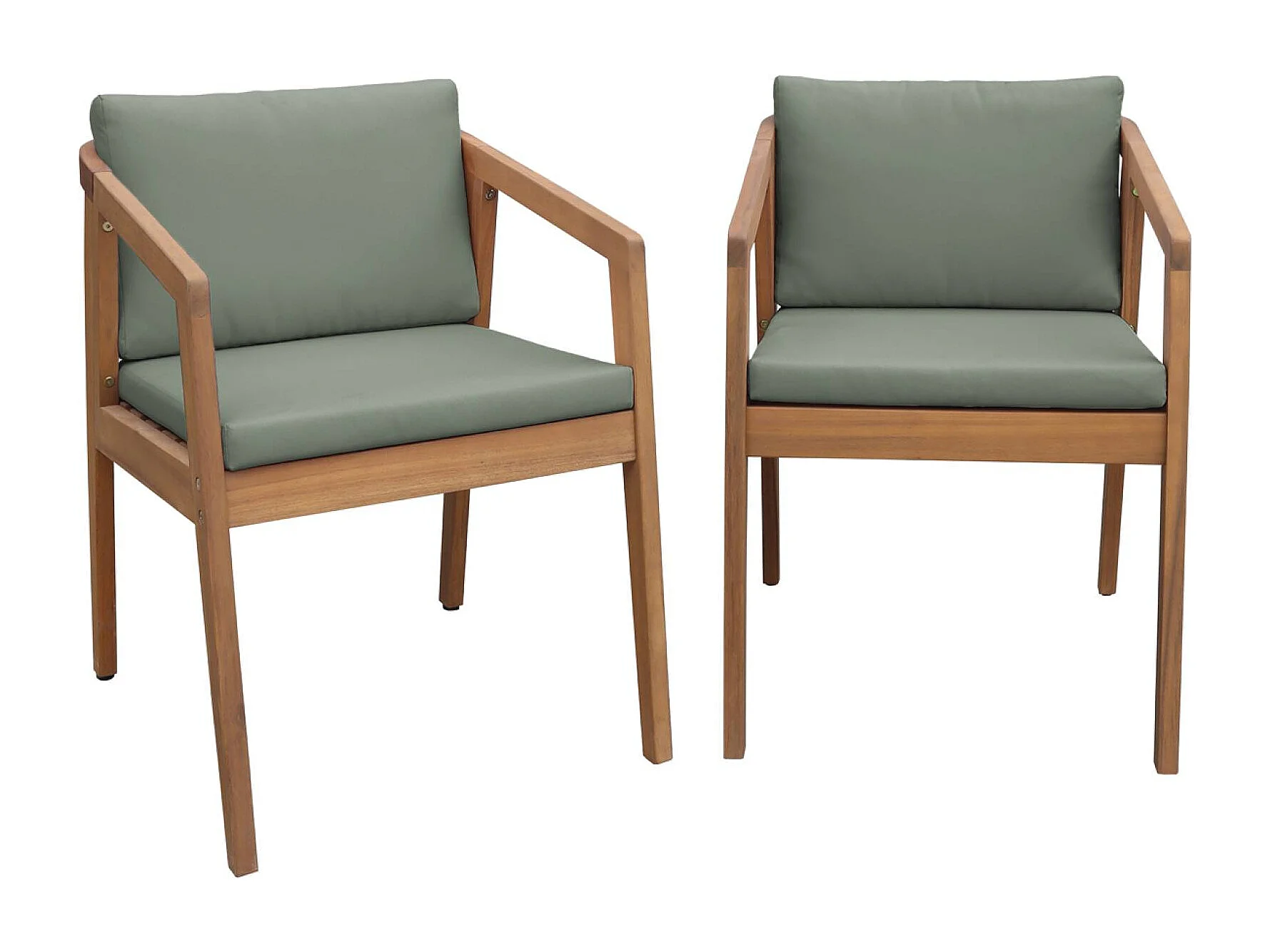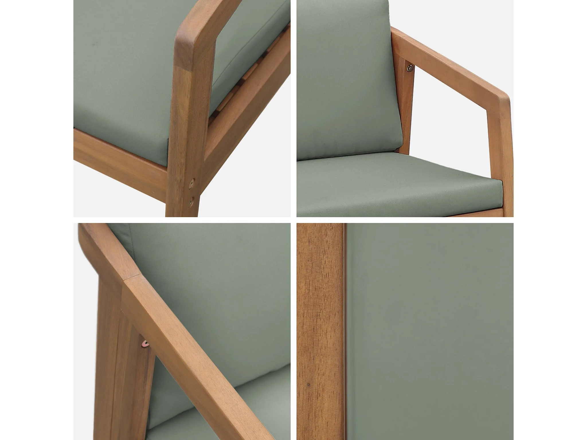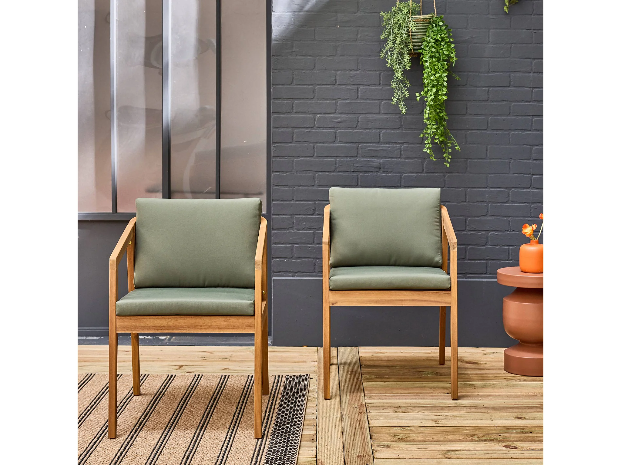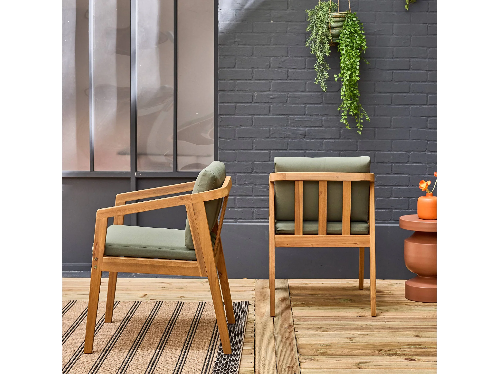 Set 2 sedie da giardino in legno di acacia, verde kaki