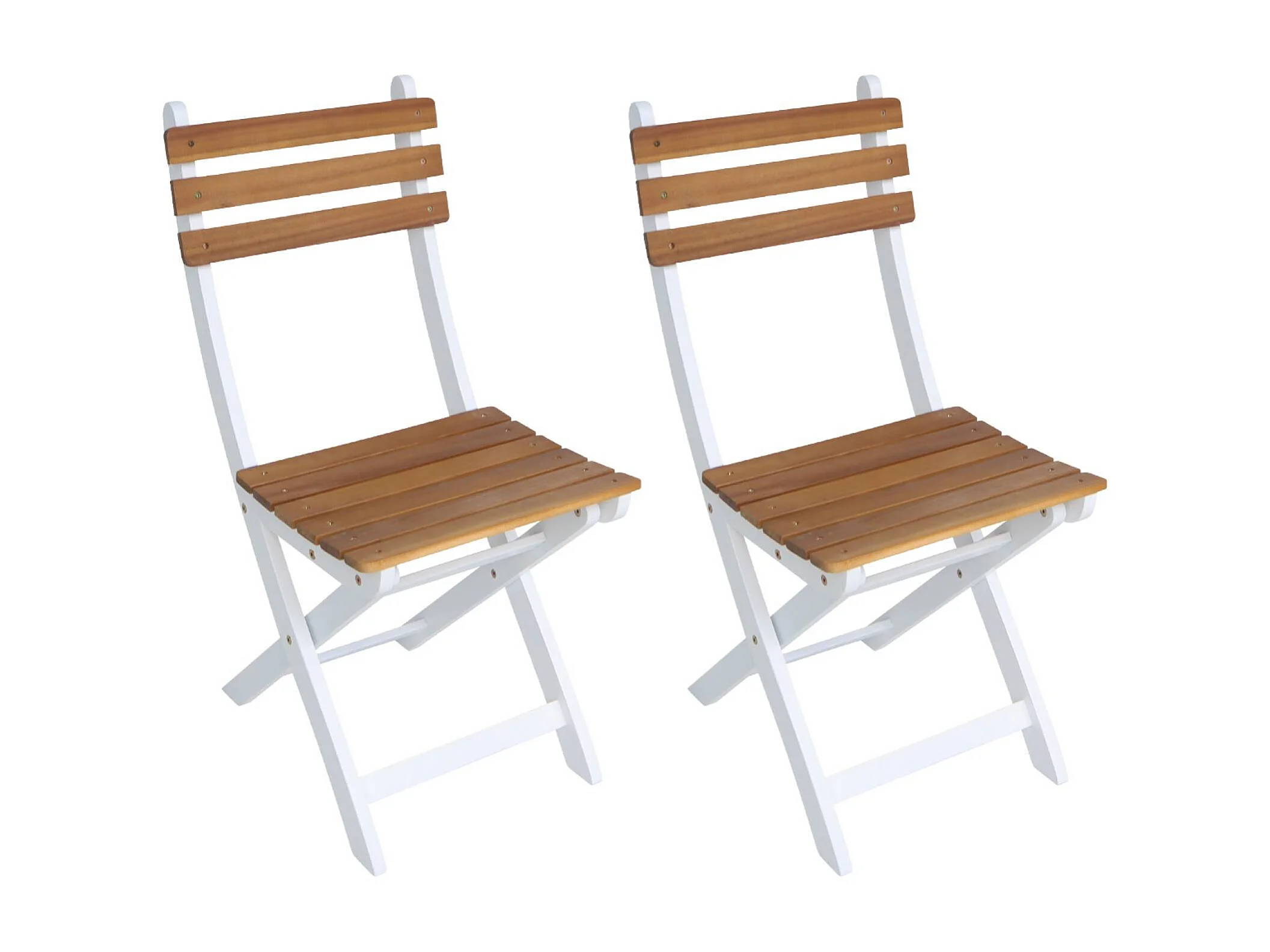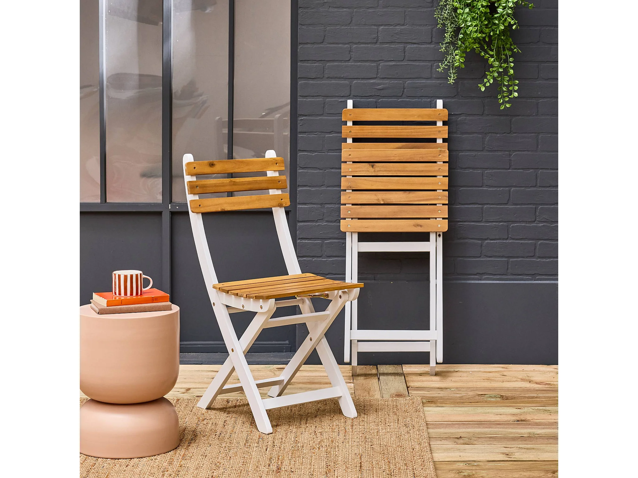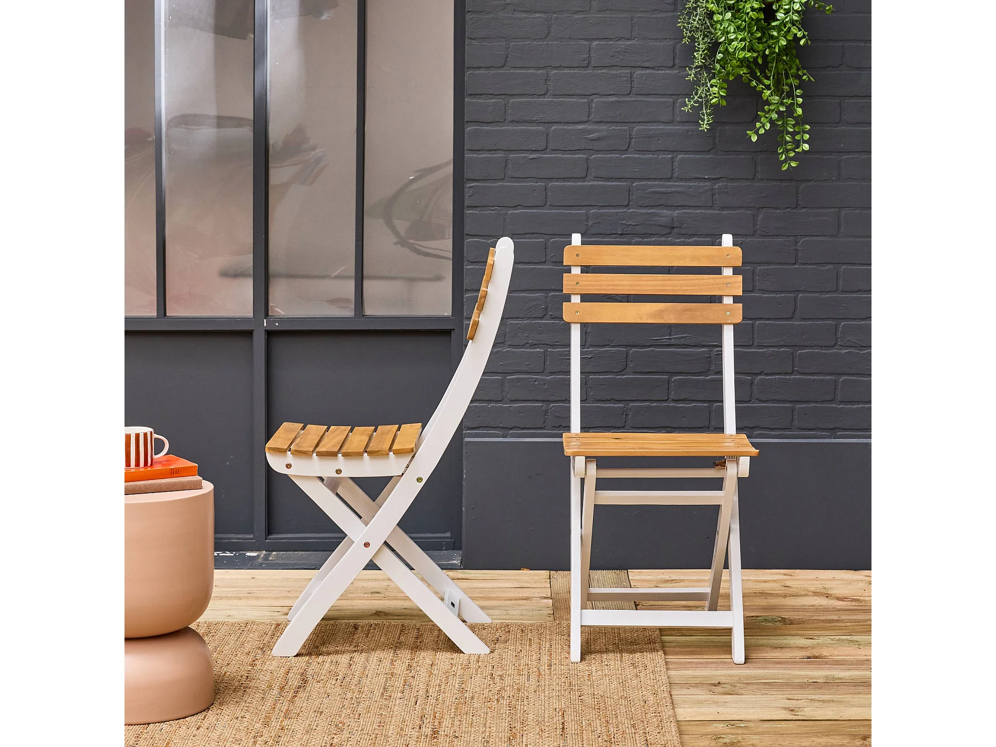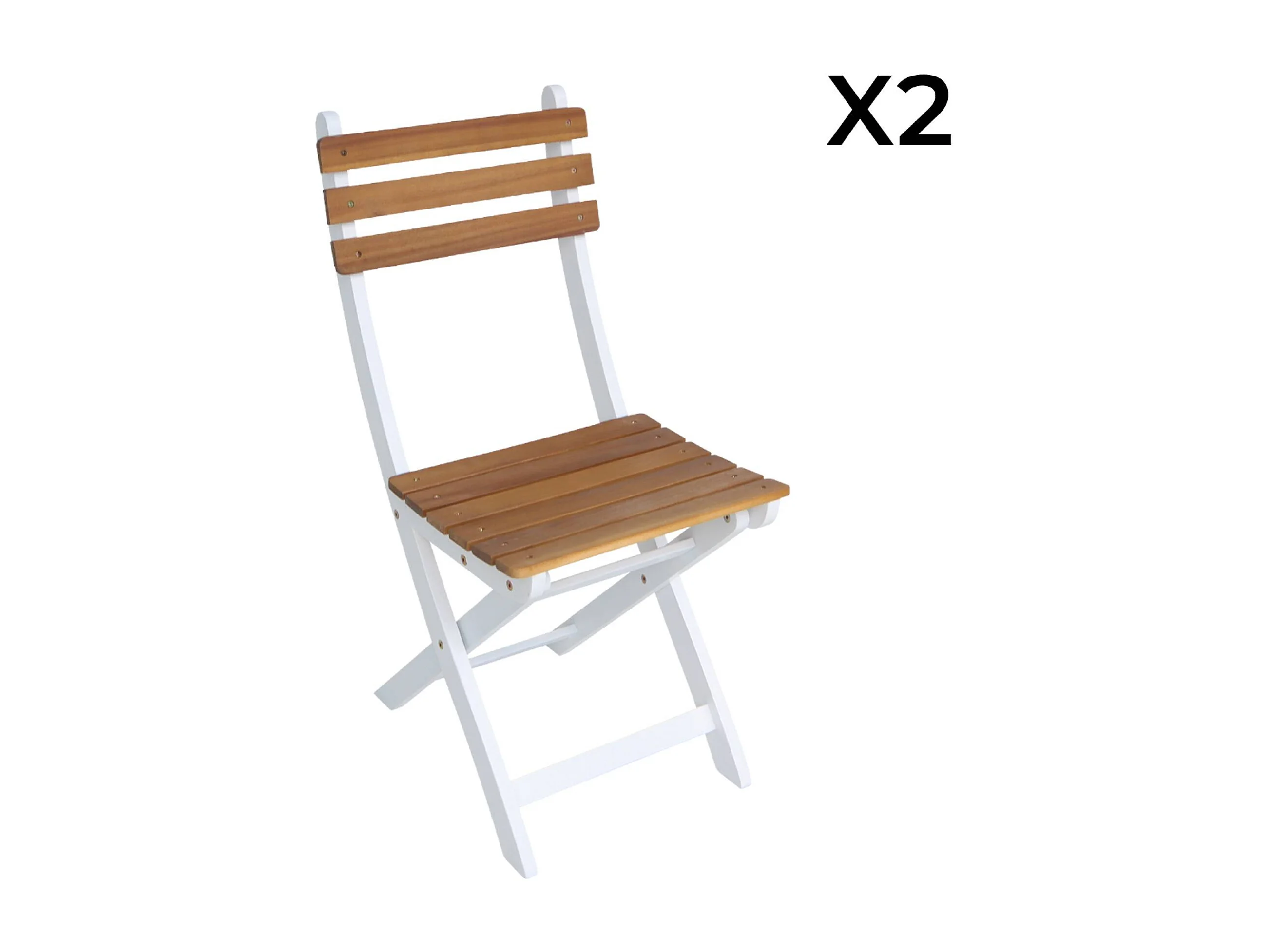 Set 2 sedie da giardino pieghevole in acacia, bianco