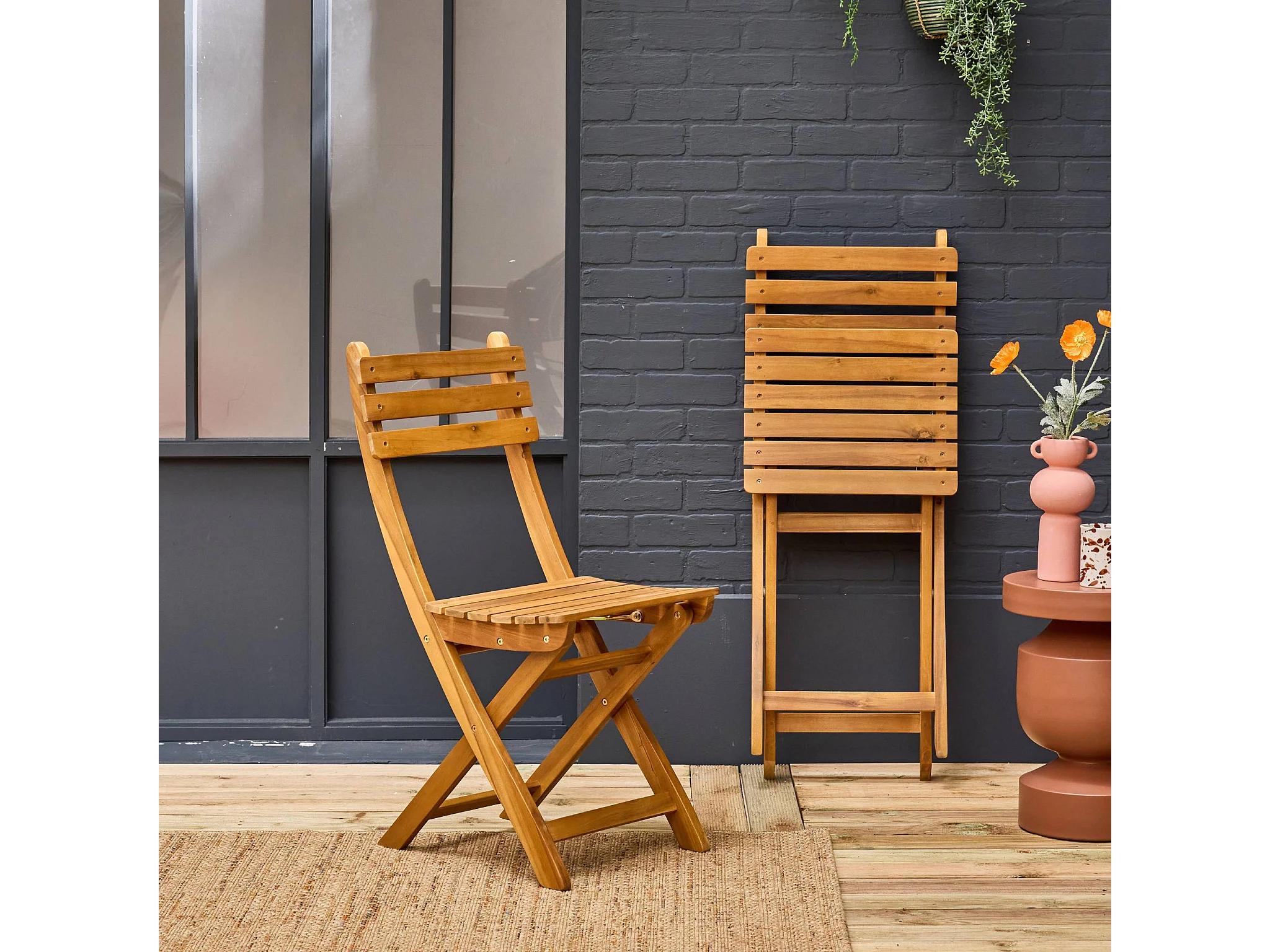 Set 2 sedie da giardino pieghevole in acacia, marrone naturale