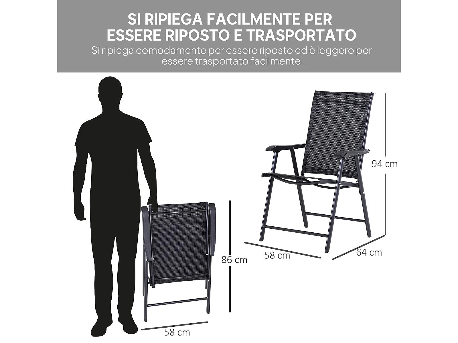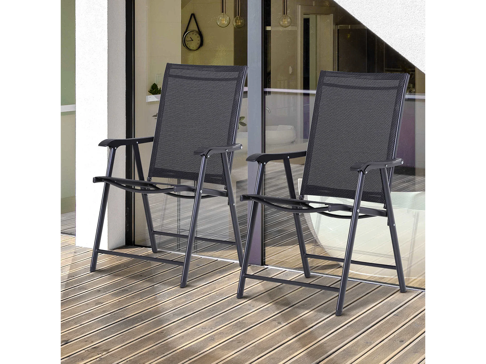 Set 2 sedie da giardino pieghevoli con braccioli nero