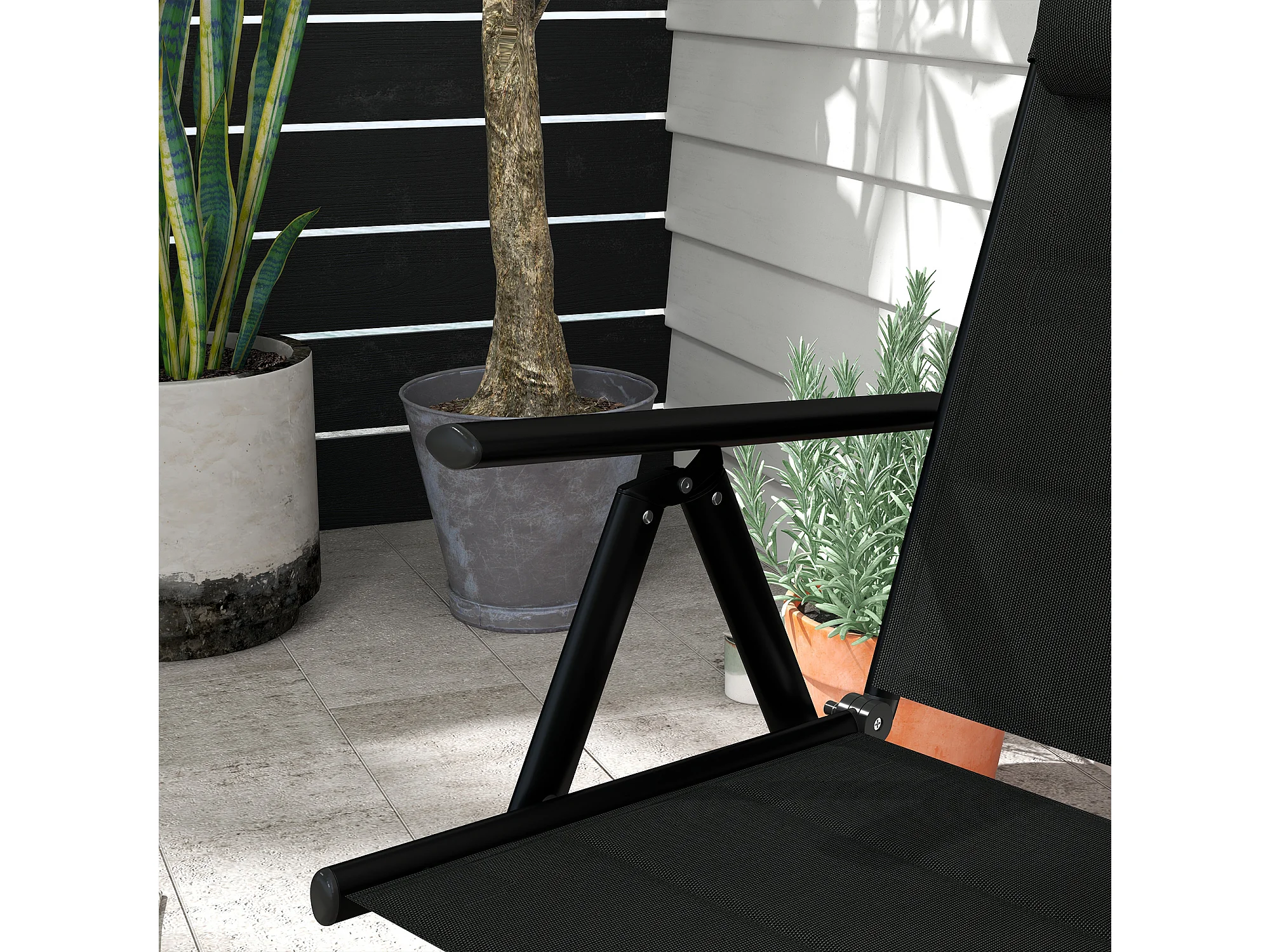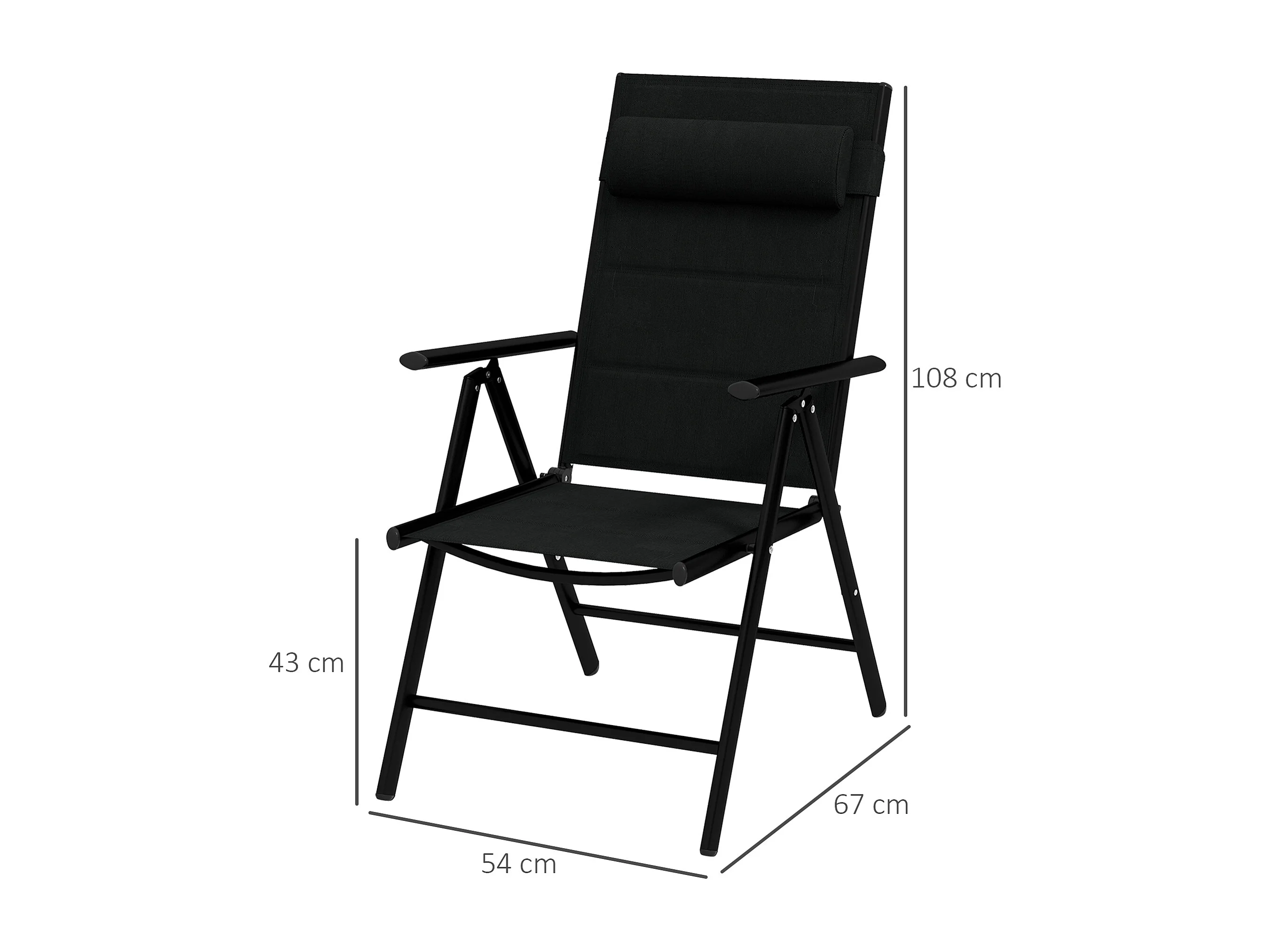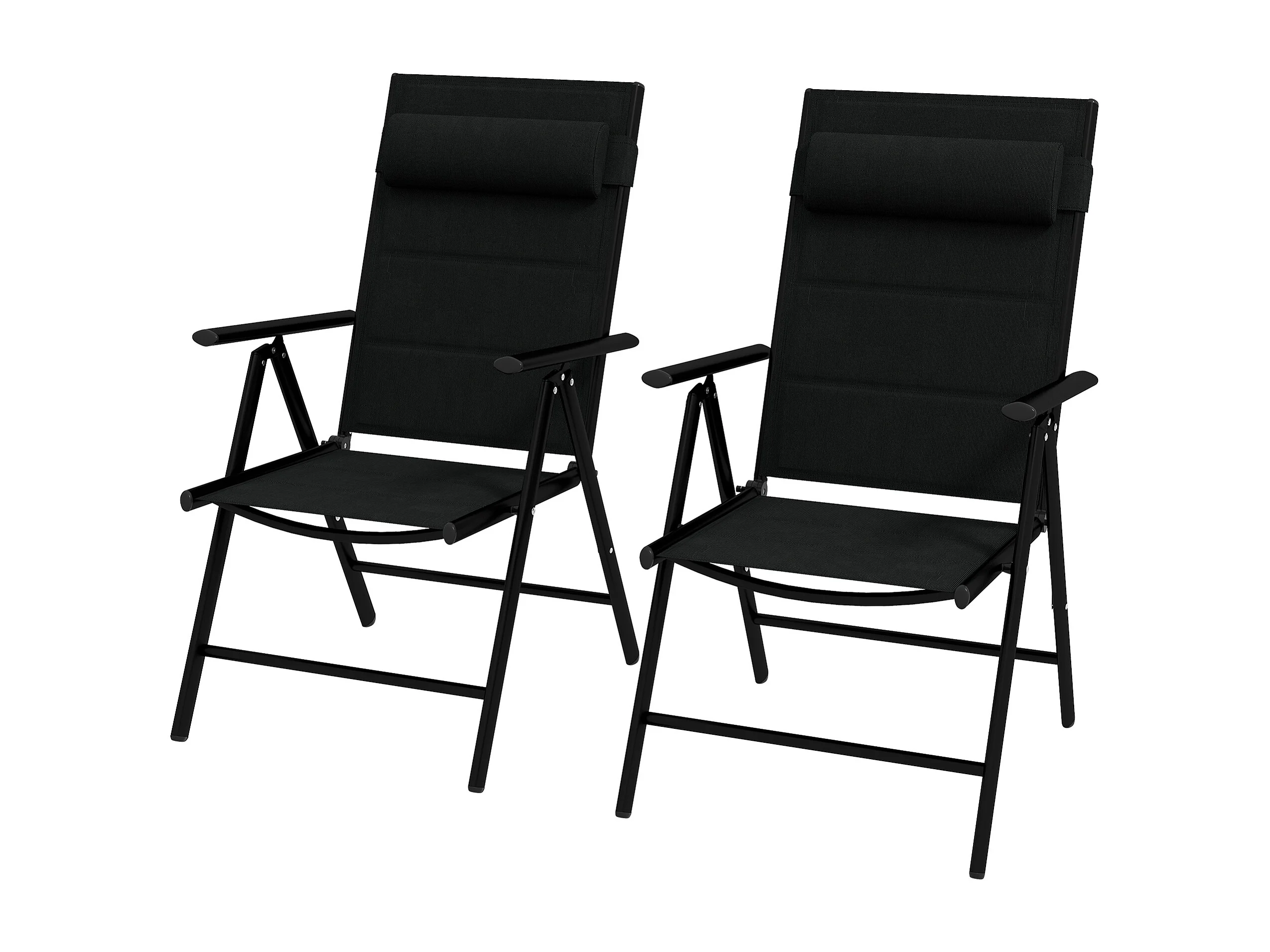 Set 2 sedie da giardino pieghevoli con poggiatesta imbottito nero