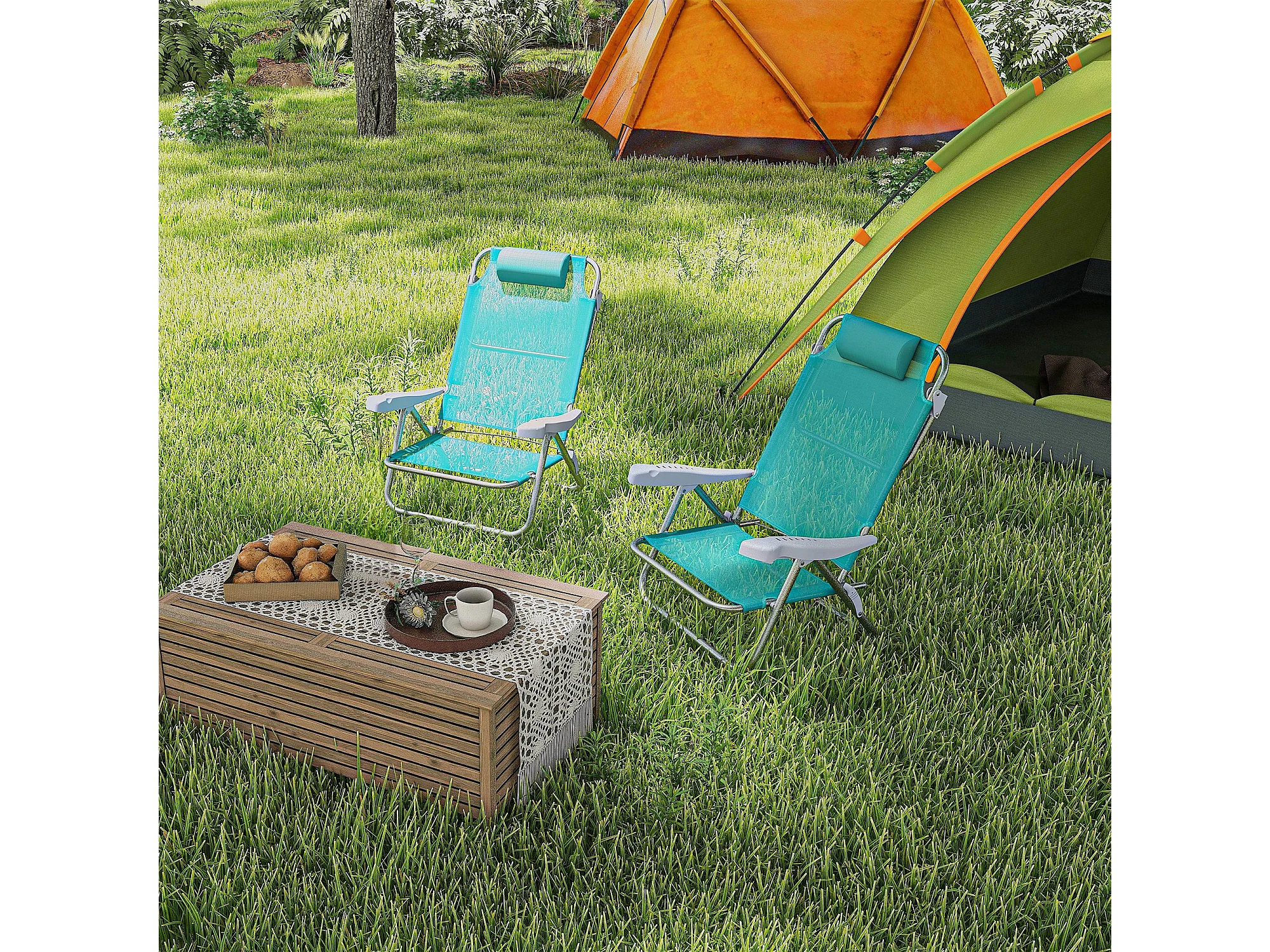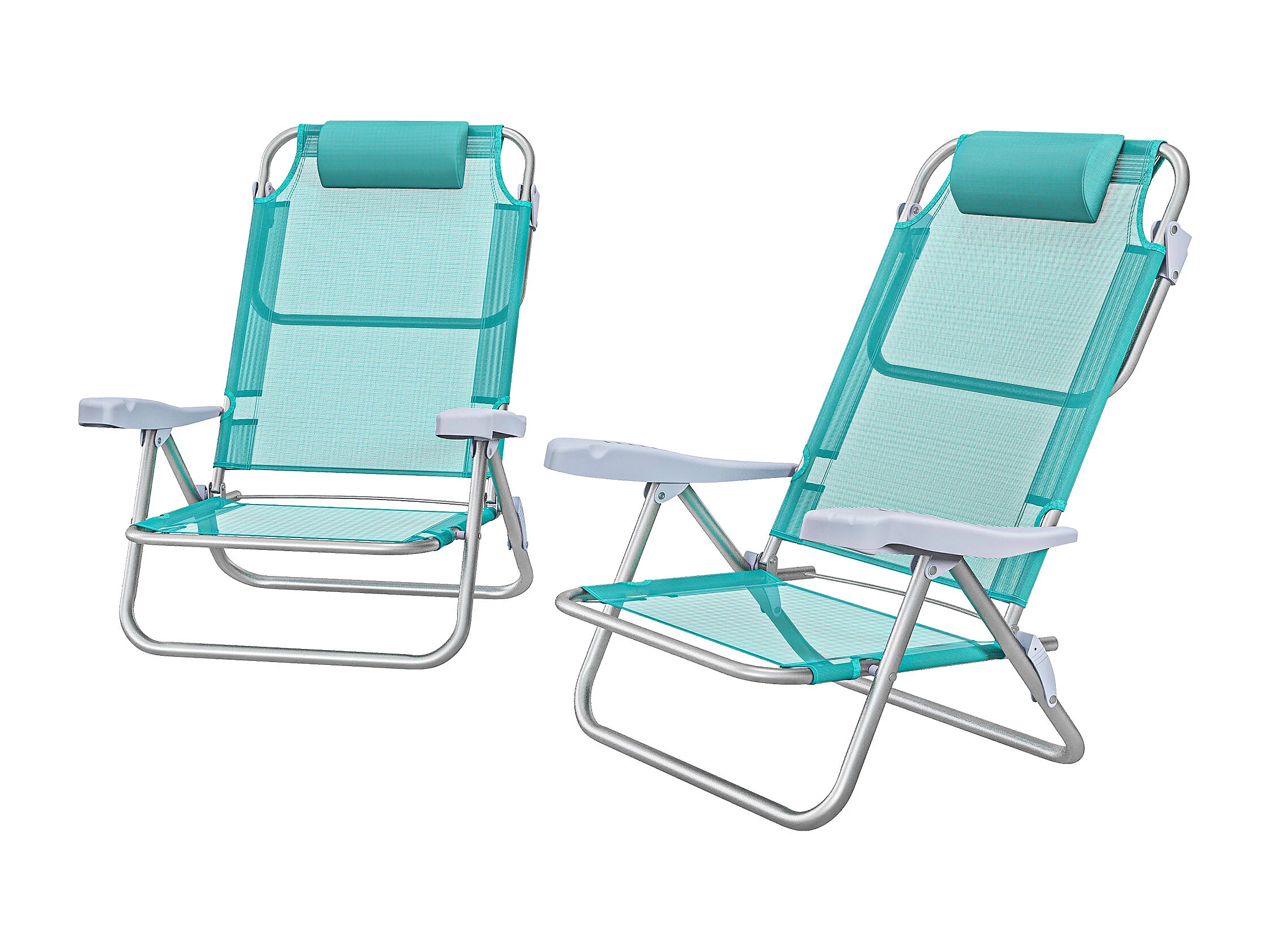 Set 2 sedie da pesca pieghevoli e reclinabili grigio e azzurro
