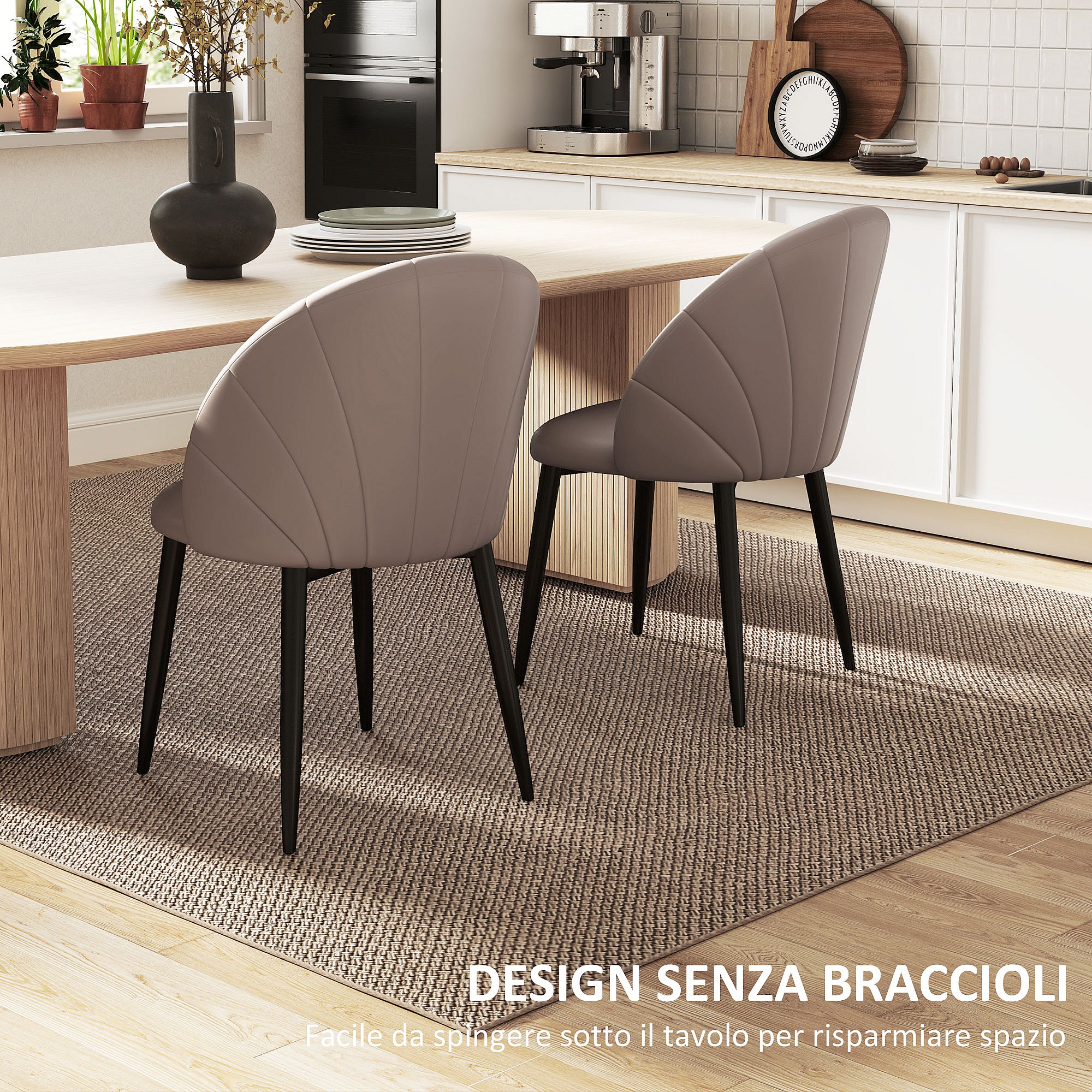 Set 2 sedie da pranzo con schienale a conchiglia in pelle pu marrone