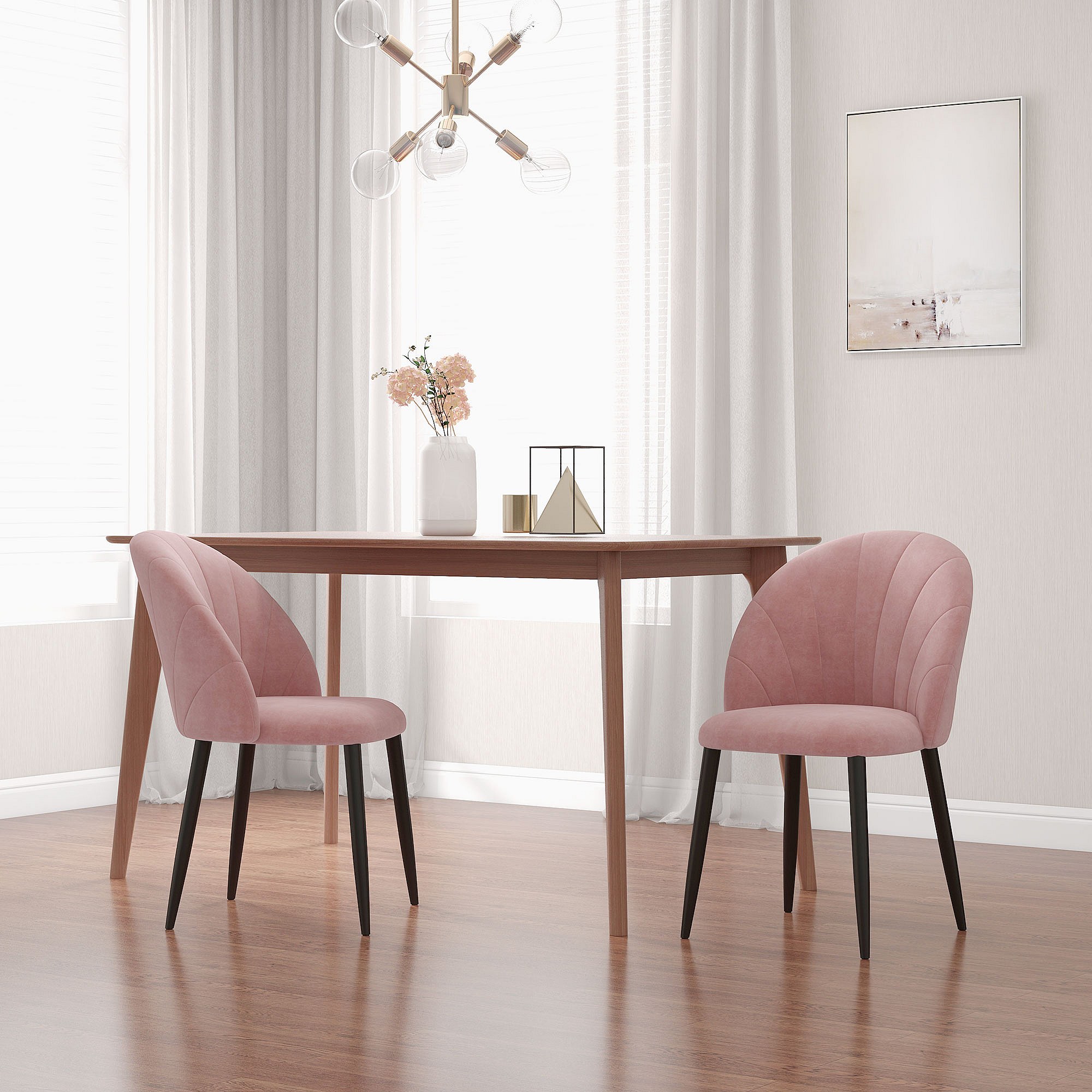 Set 2 sedie da pranzo imbottite stile nordico in velluto rosa