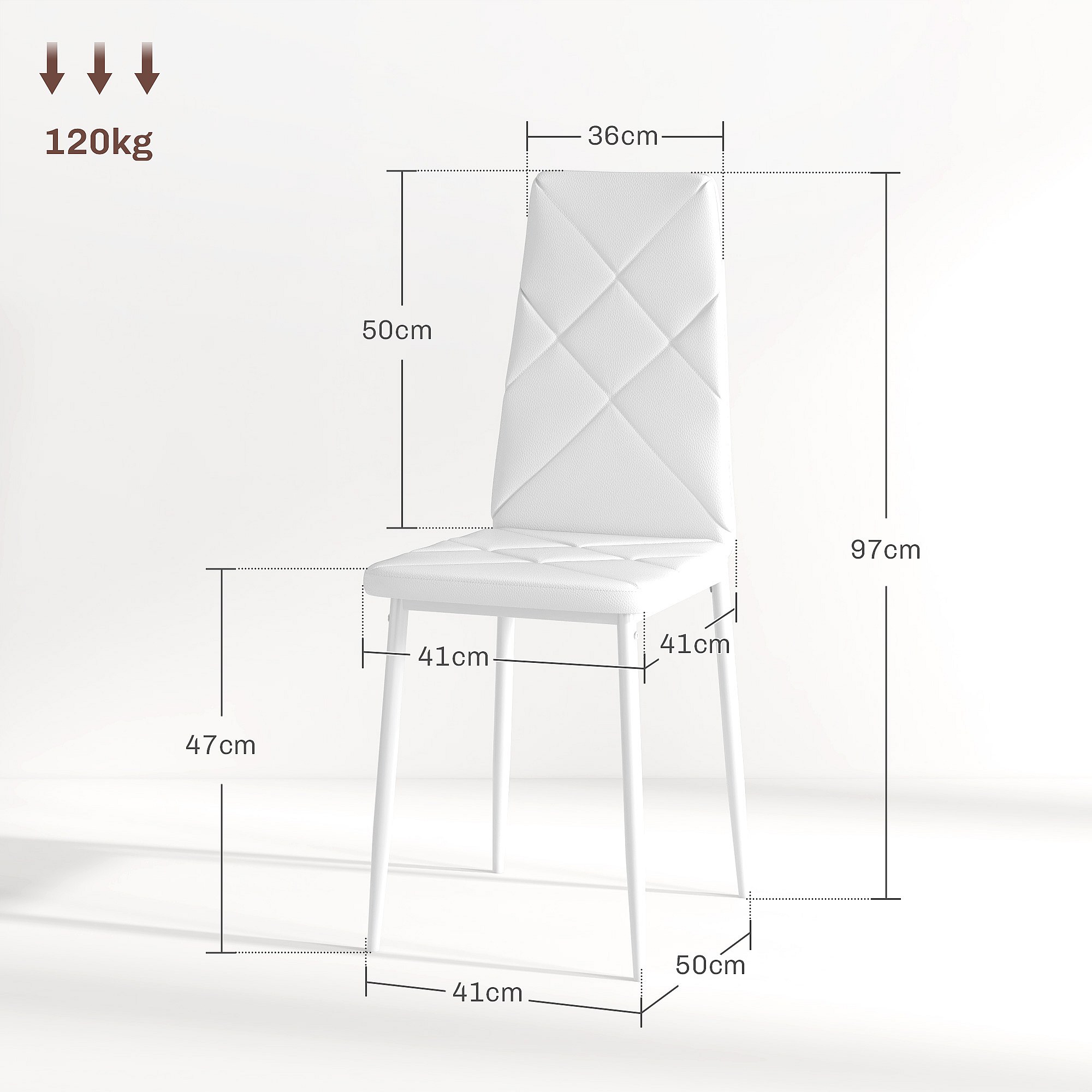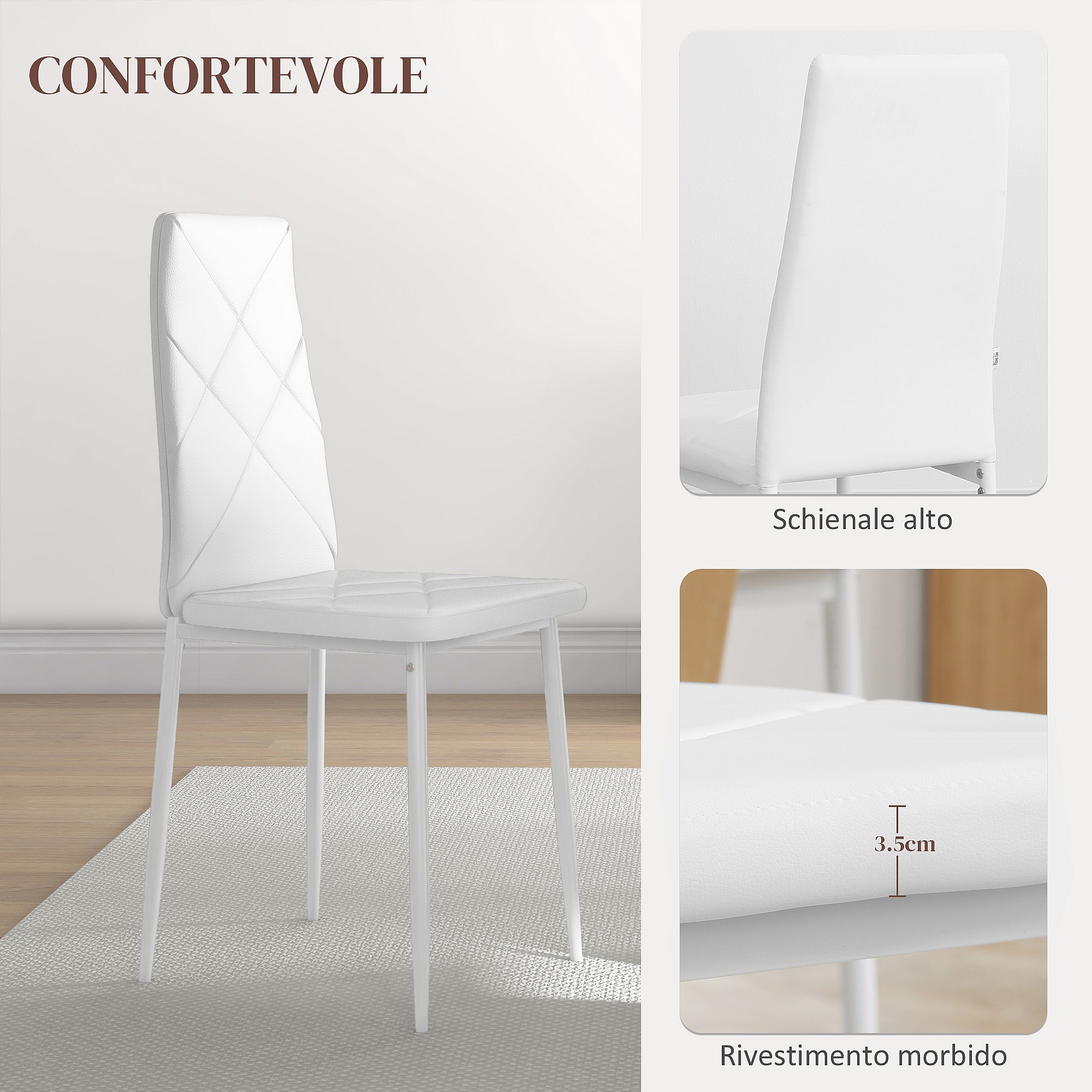 Set 2 sedie da pranzo in finta pelle acciaio con schienale alto bianco
