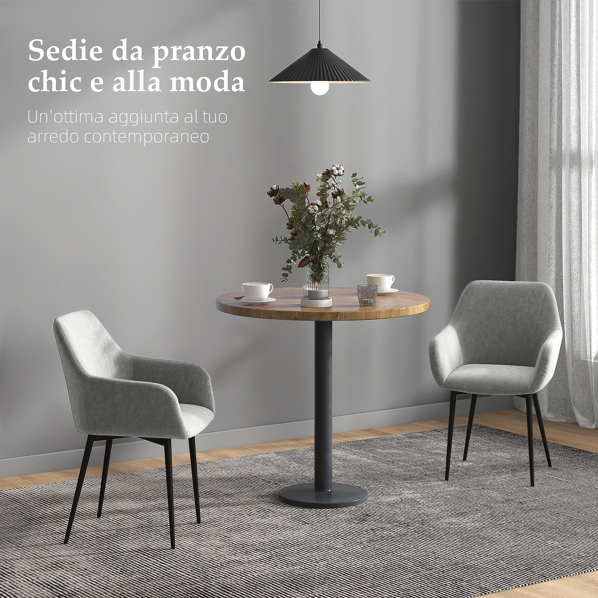 Set 2 sedie da pranzo nordico vellutato con braccioli grigio scuro