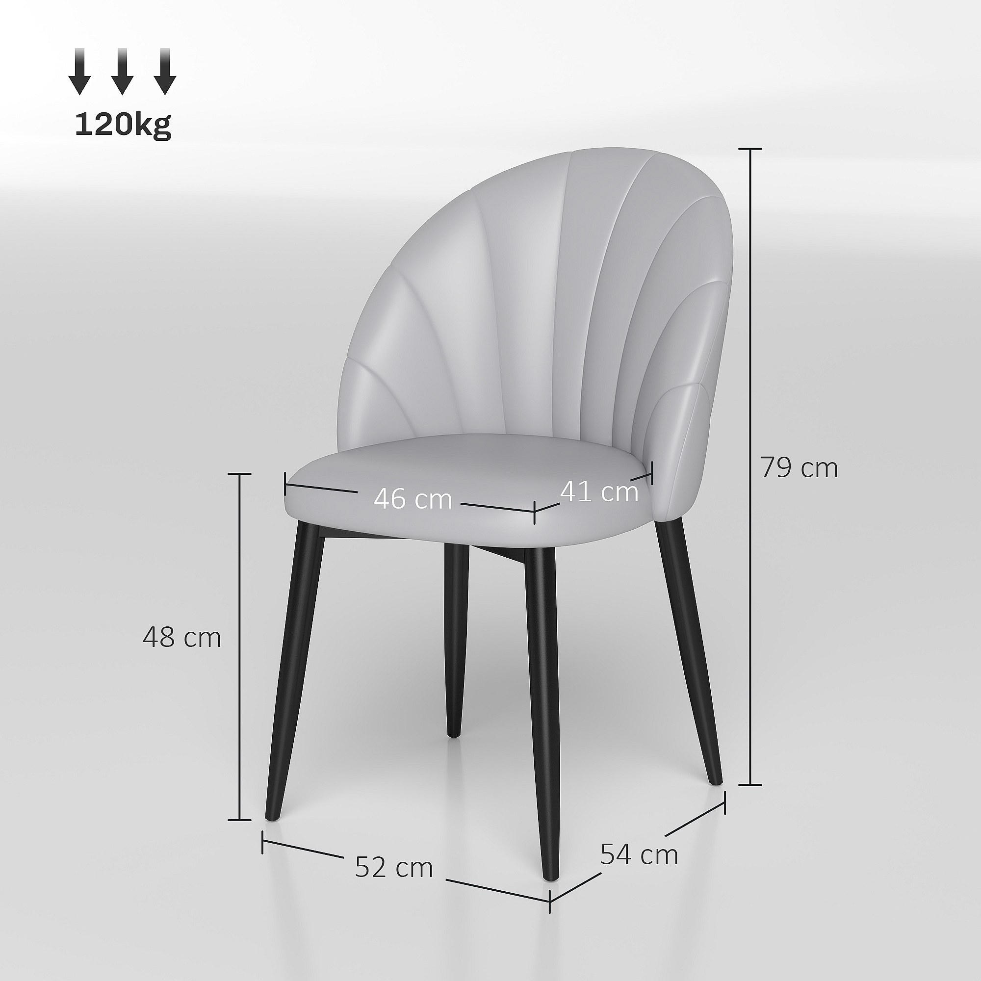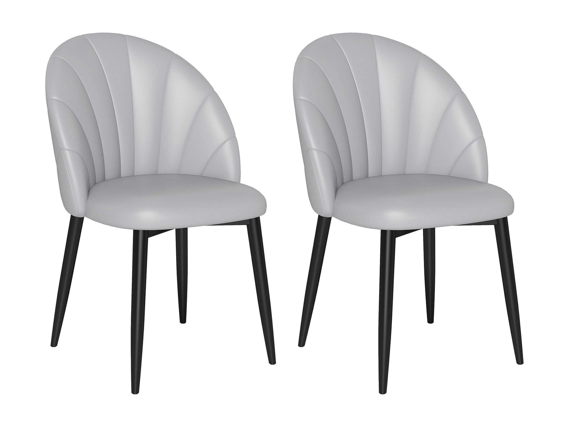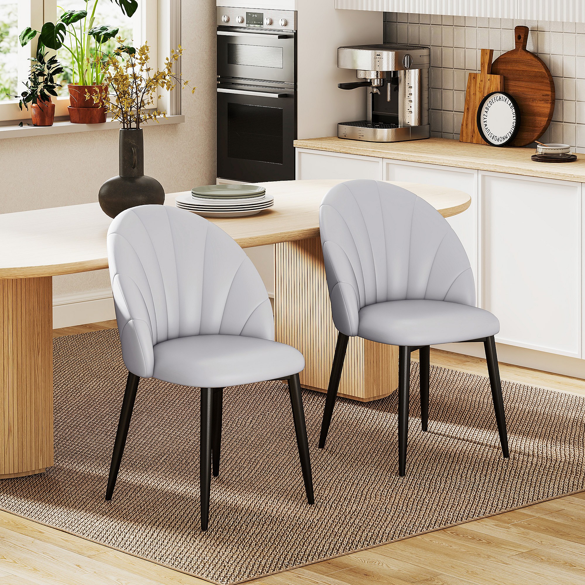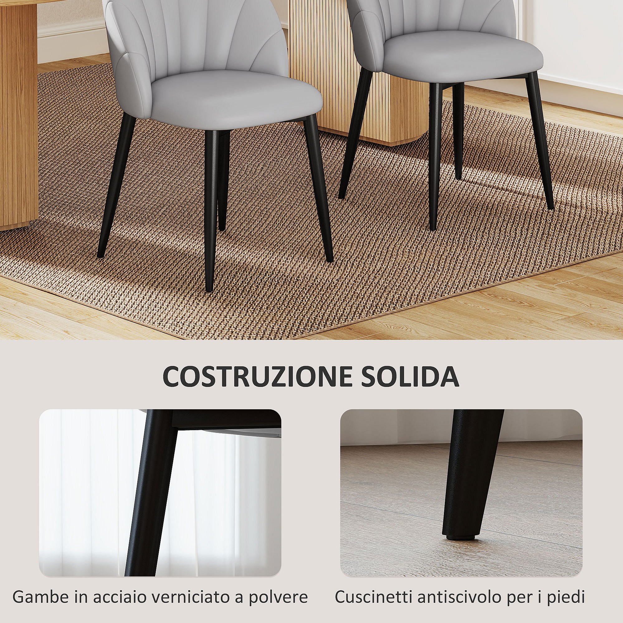 Set 2 sedie da pranzo schienale a conchiglia in pelle pu grigio chiaro