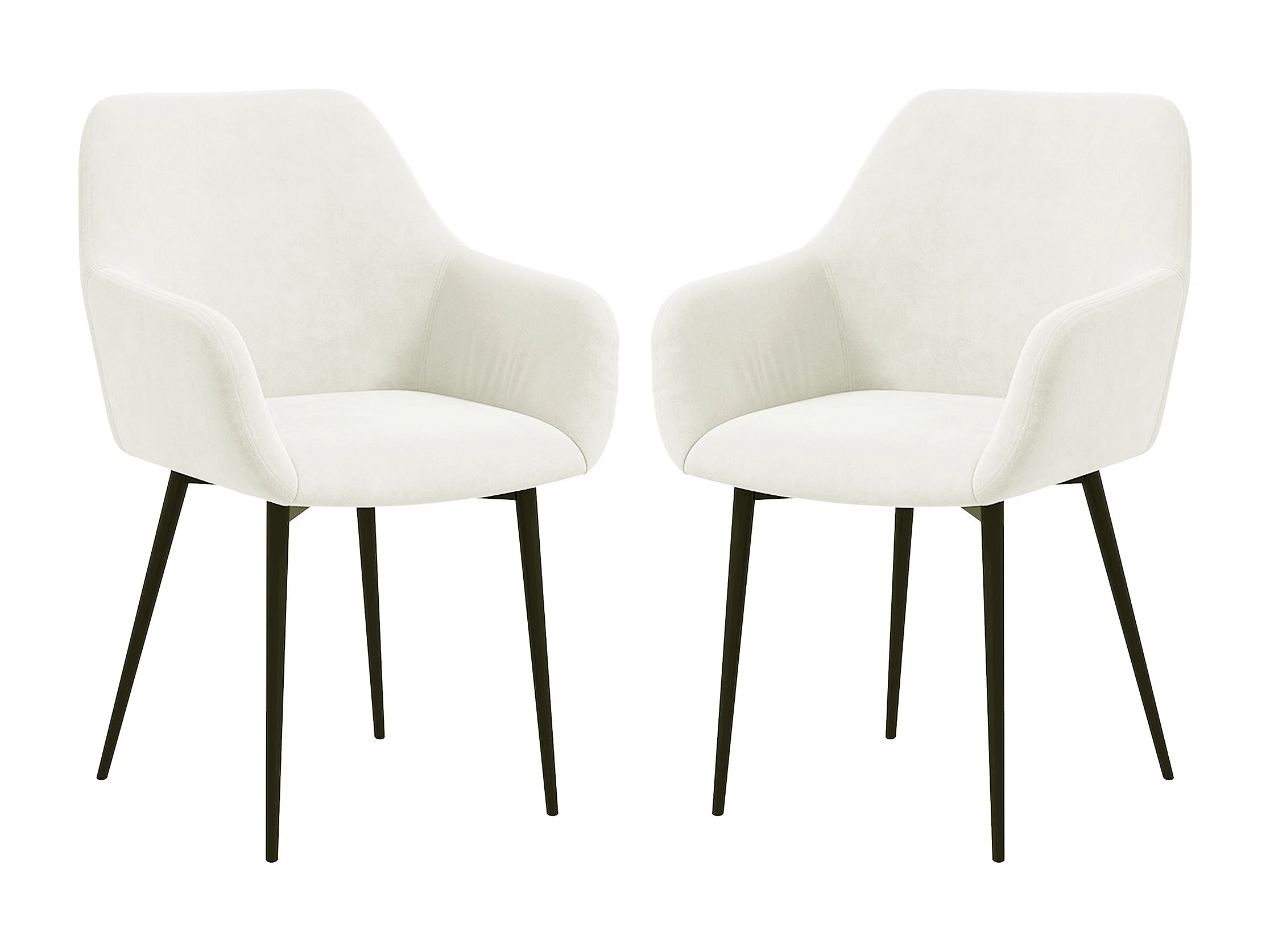 Set 2 sedie da pranzo stile nordico vellutato con braccioli crema