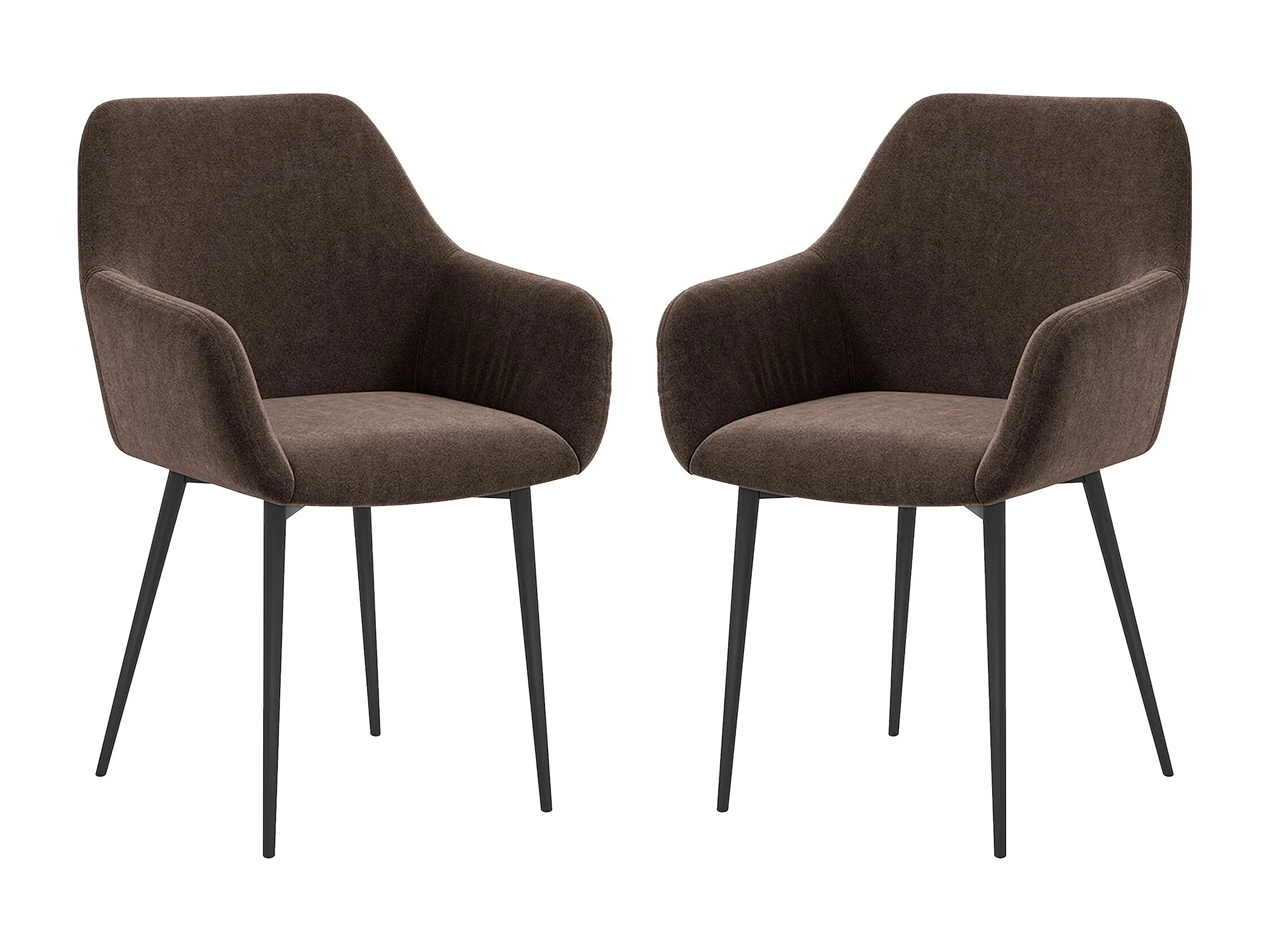 Set 2 sedie da pranzo stile nordico vellutato con braccioli marrone