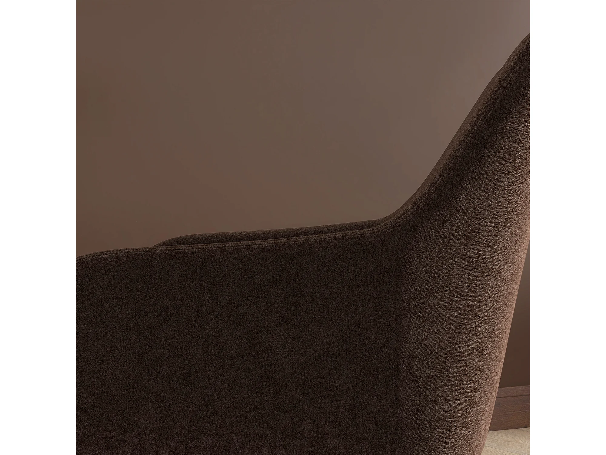 Sedia da pranzo Darlene con braccioli in ciniglia marrone.