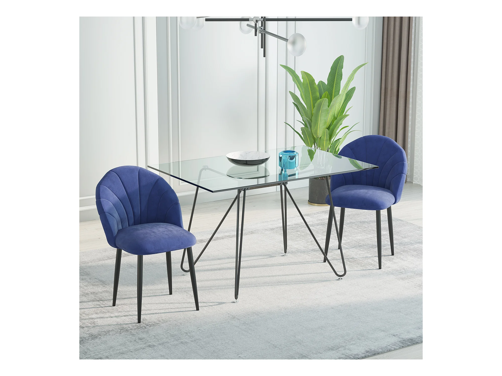 Sedia BRUCE in Velluto Blu, dimensioni: H86 x L45 x P55 cm, ideale per una sala da pranzo dal design moderno e contemporaneo.