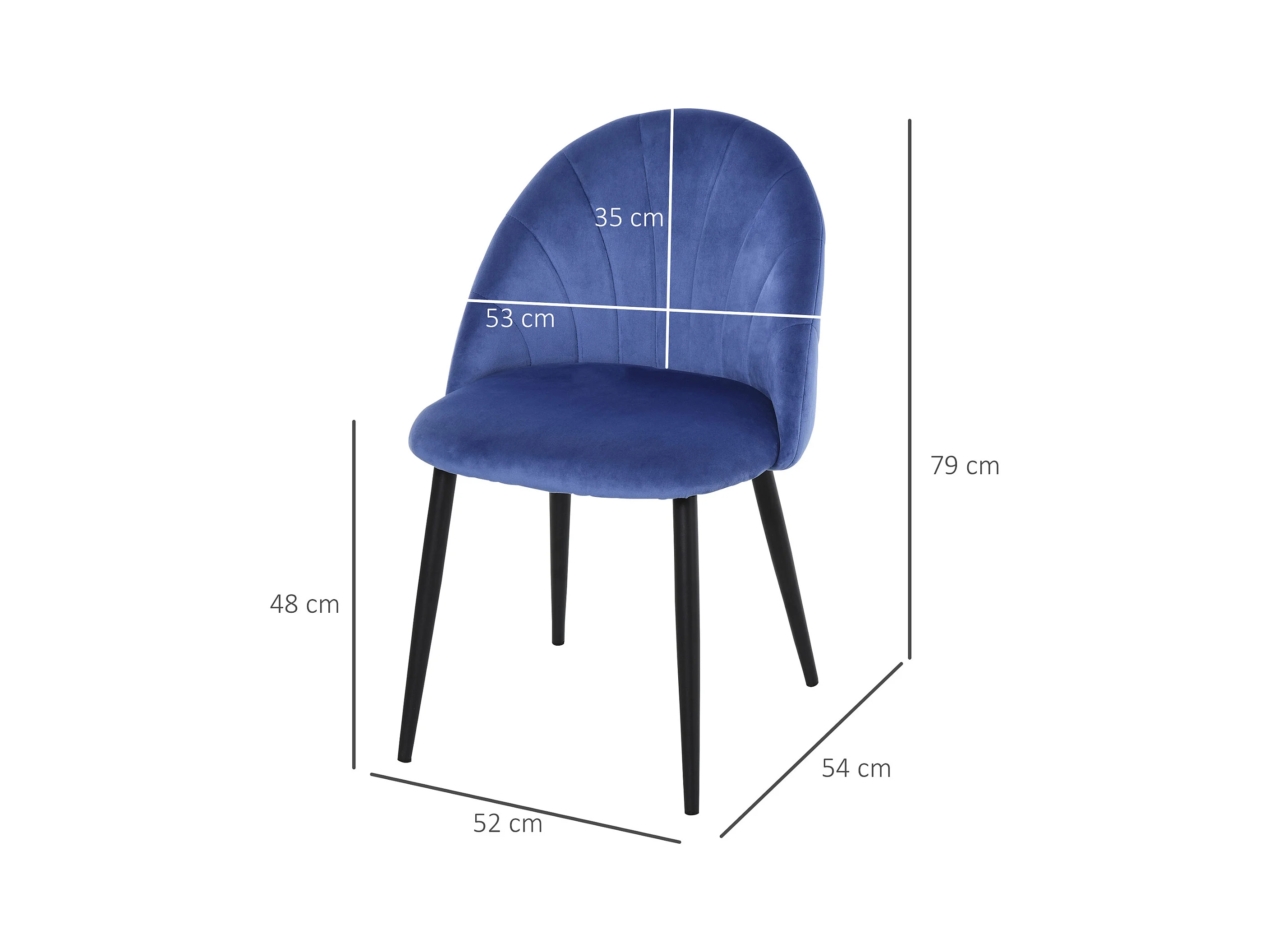 Set 2 sedie da pranzo vellutate in stile nordico 52x54x79 cm blu