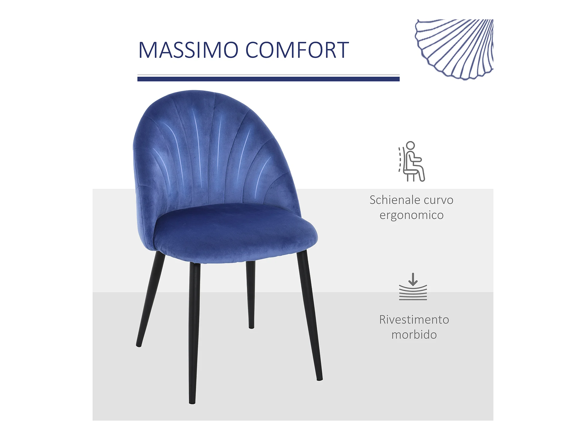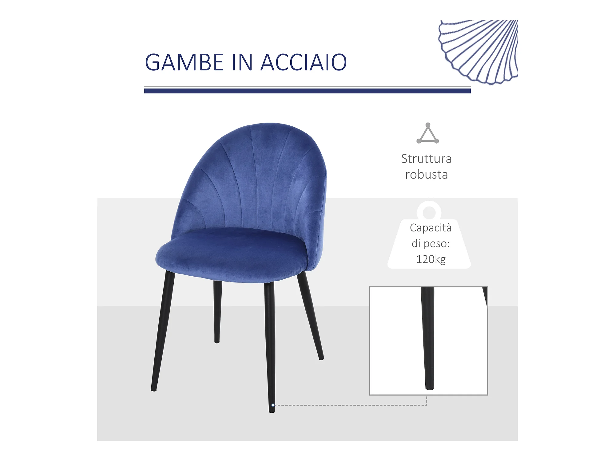 Sedia poltroncina sala da pranzo sedile e schienale imbottito in velluto blu