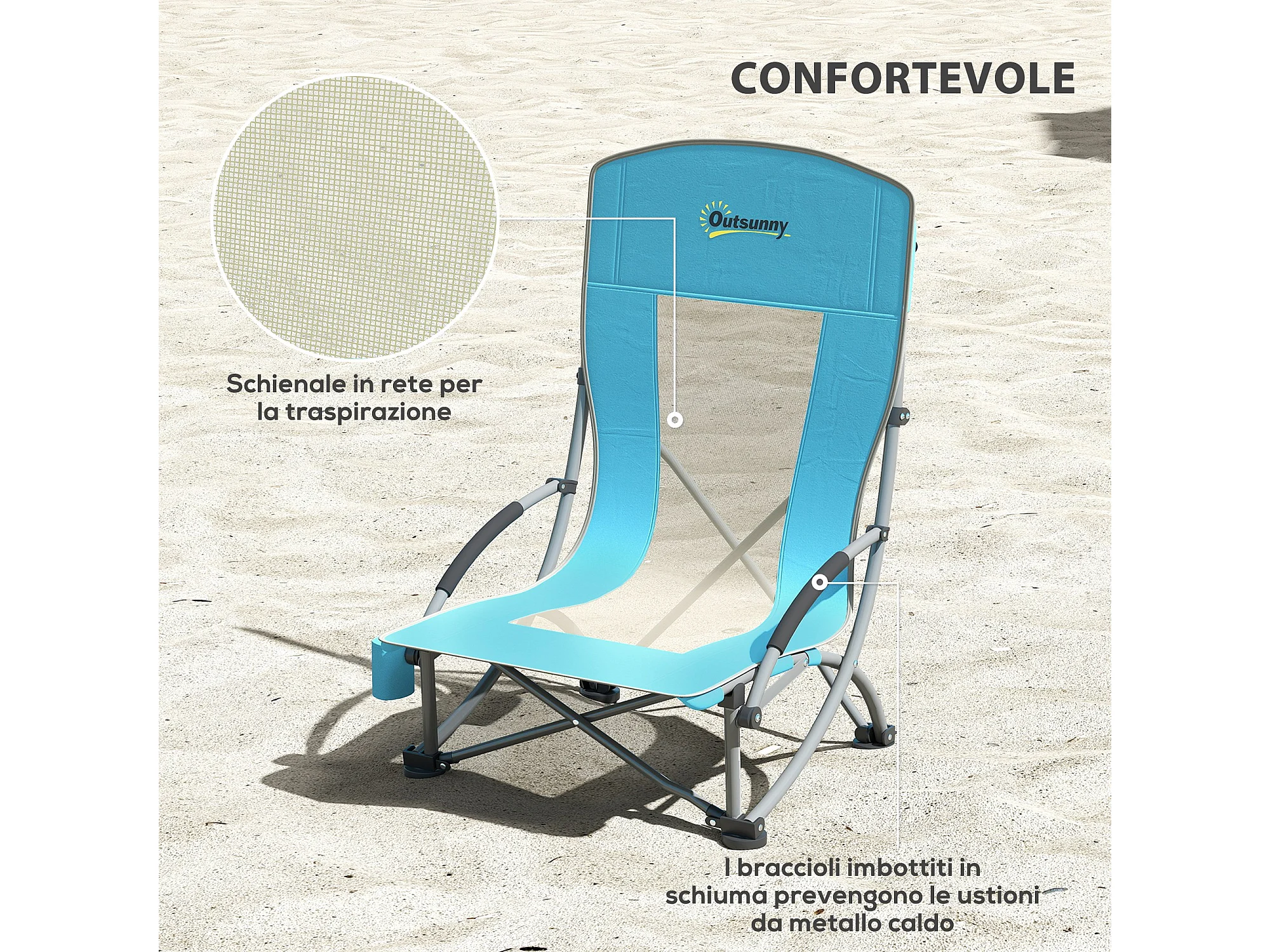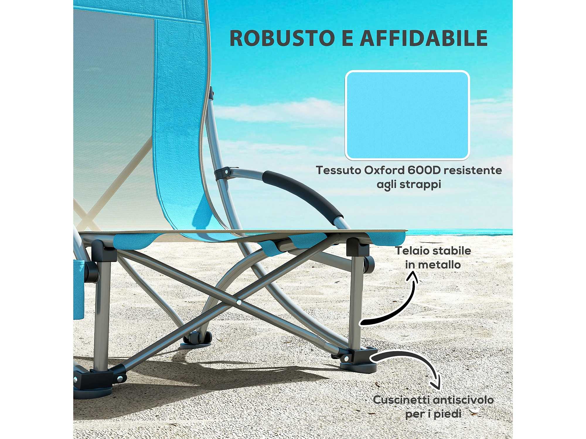 Set 2 sedie da spiaggia pieghevoli con borsa di trasporto blu