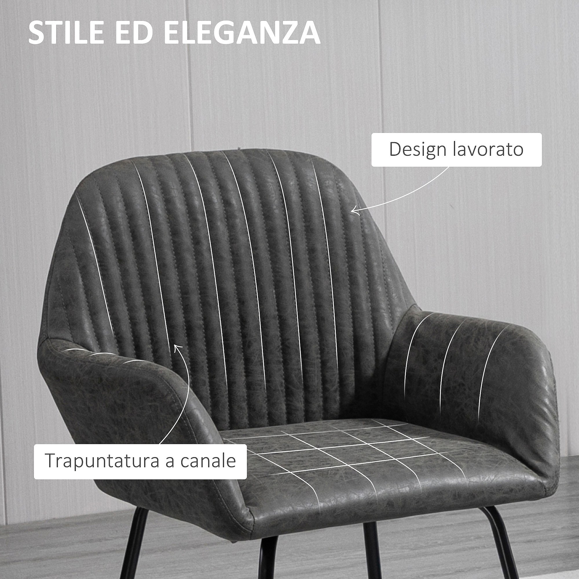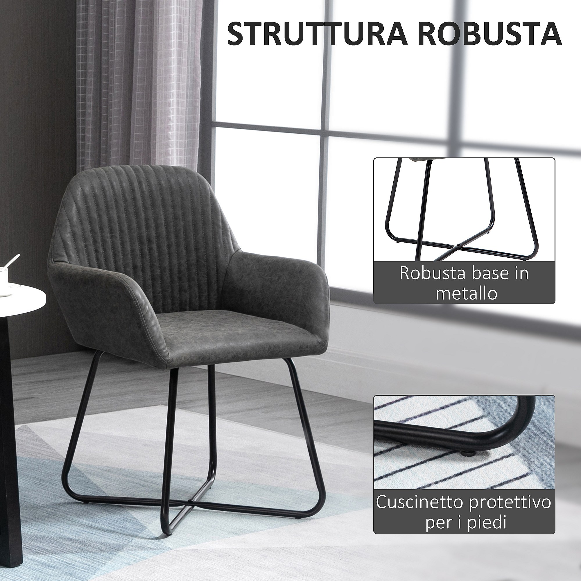 Set 2 sedie moderne sala da pranzo similpelle 60x56.5x85cm