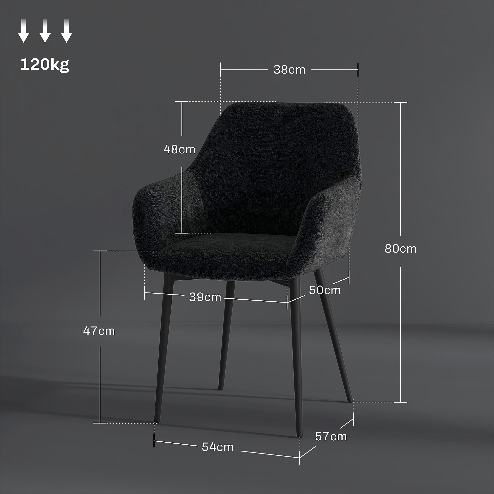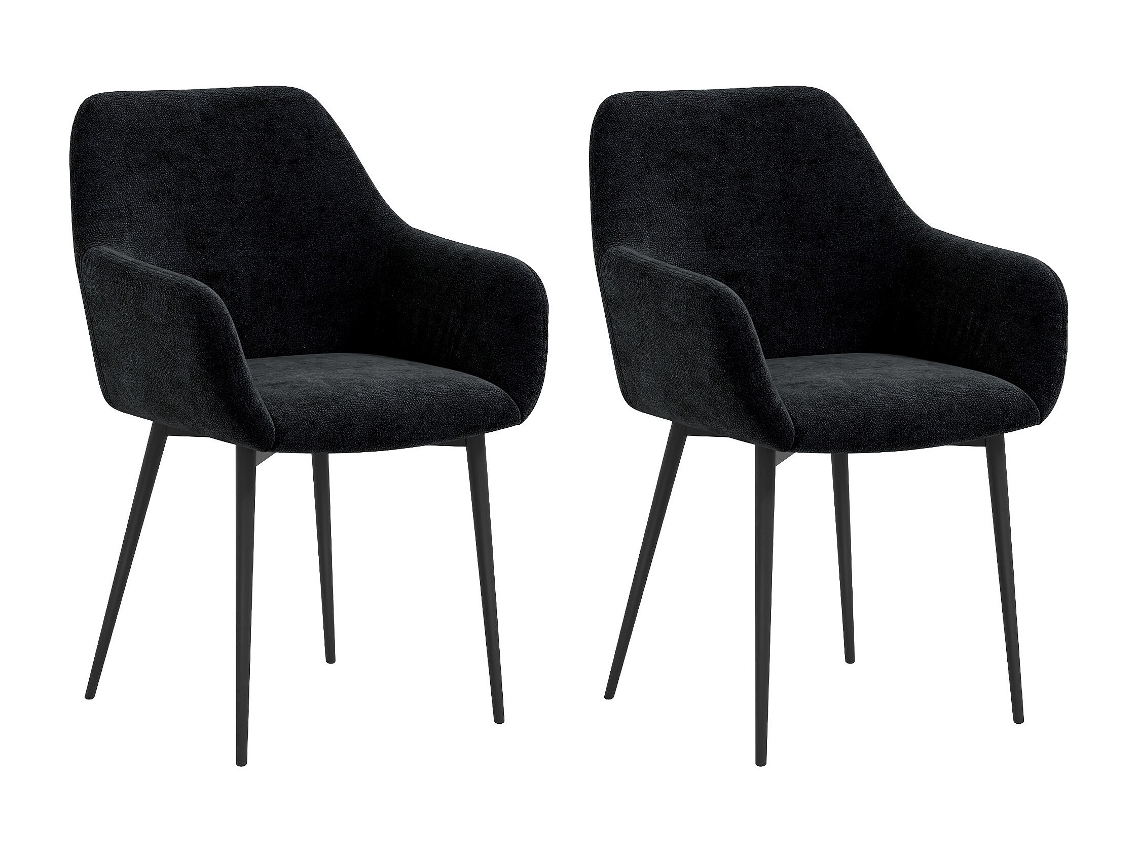 Set 2 sedie per sala da pranzo con braccioli in velluto nero